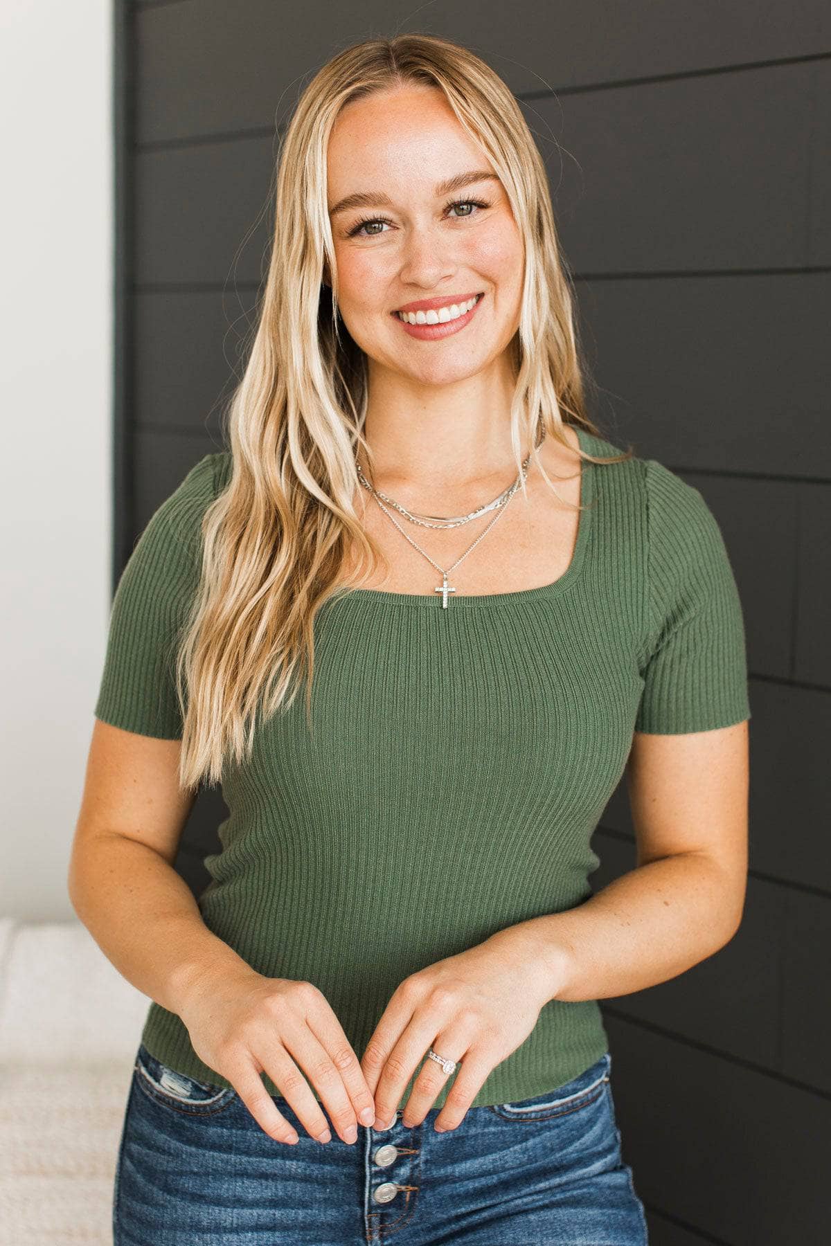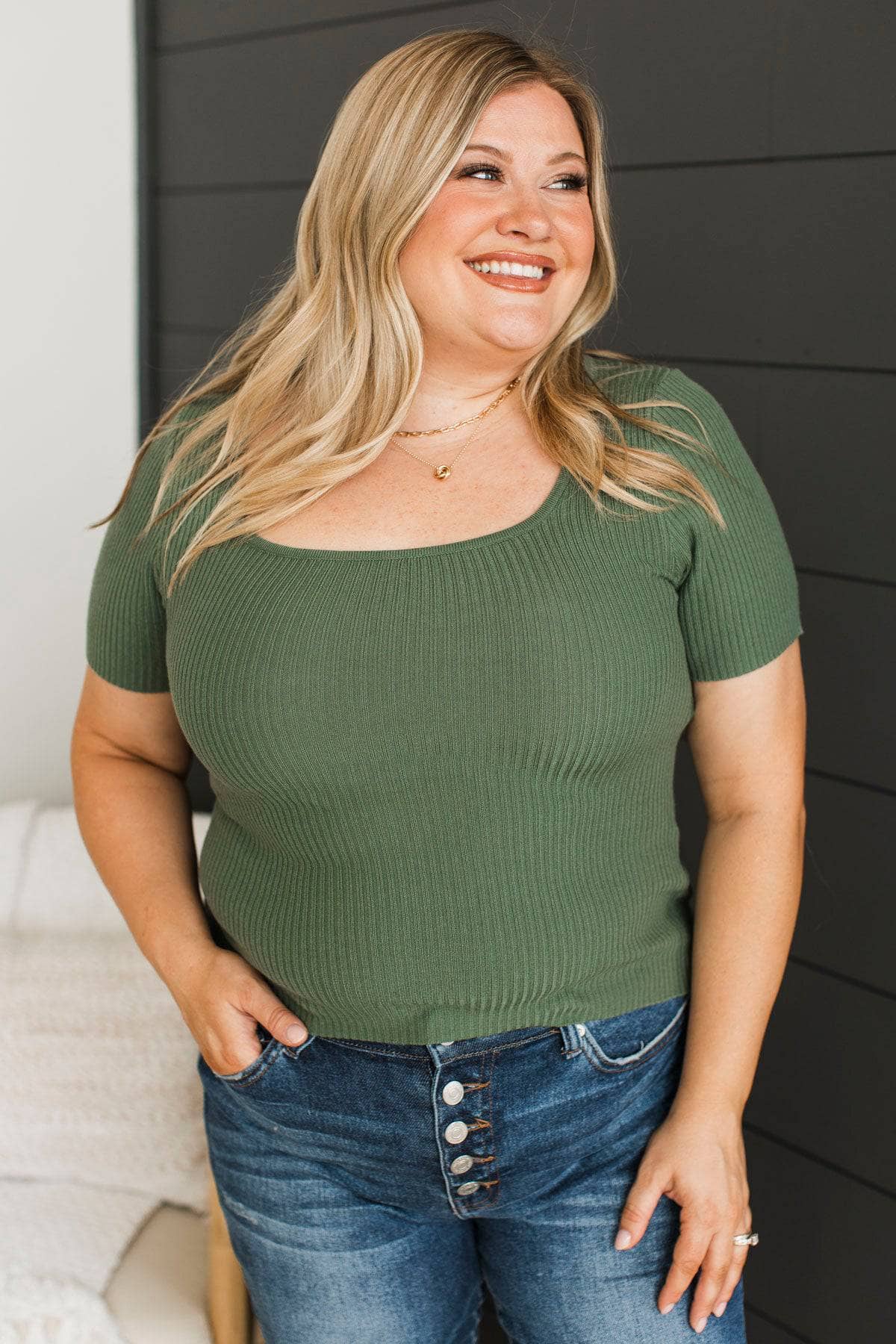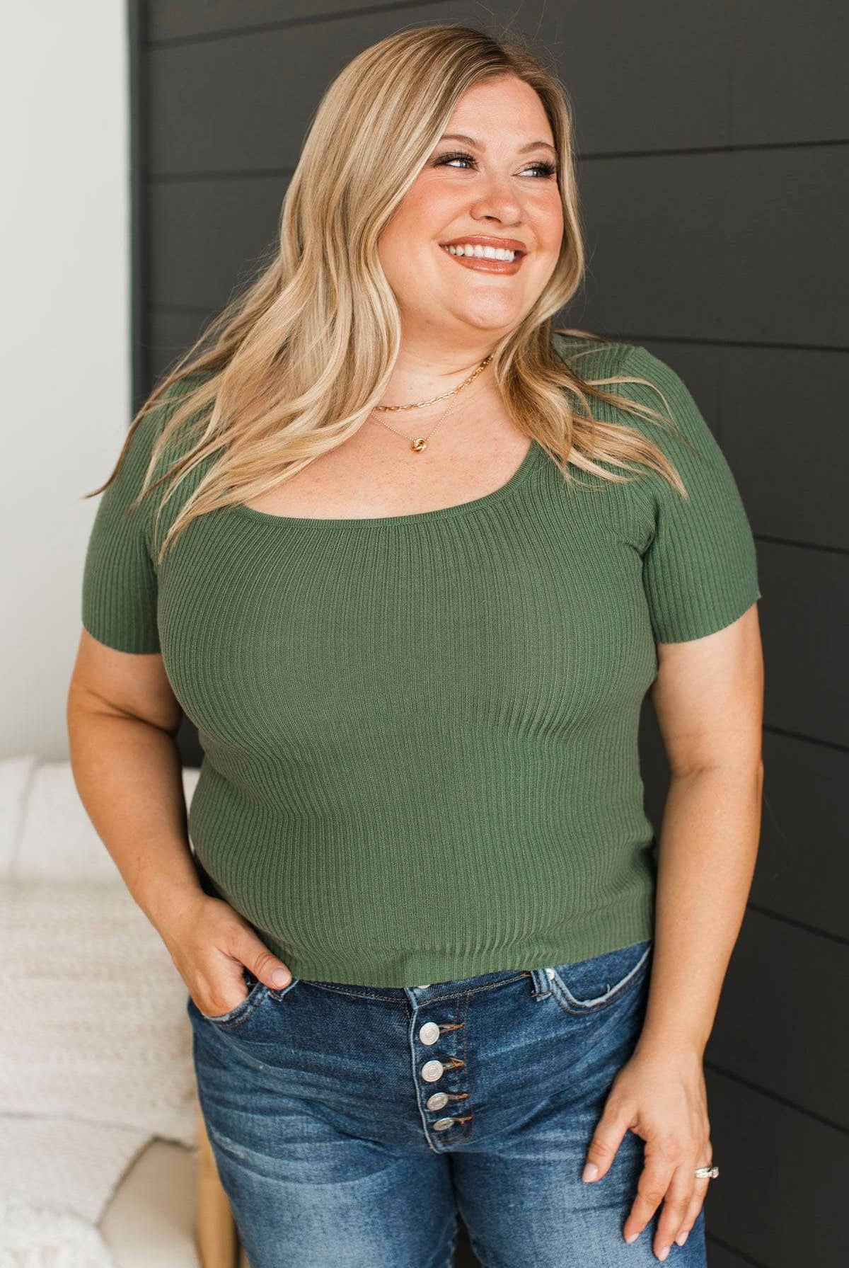 Take It In Square Neck Top- Ivy Green