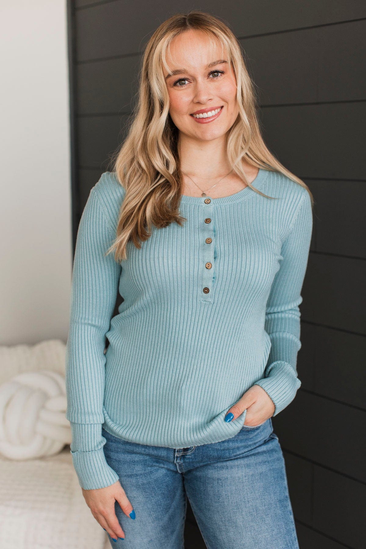 Endlessly Impressive Ribbed Knit Top- Pale Blue