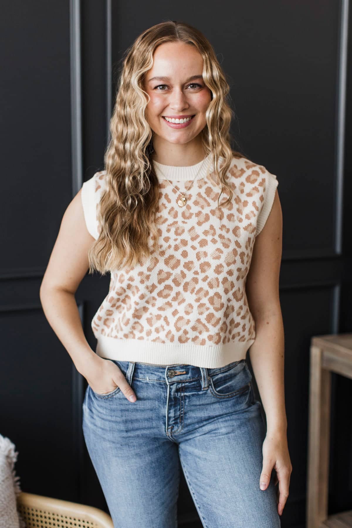 My Favorite Adventure Animal Print Sweater Vest- Ivory