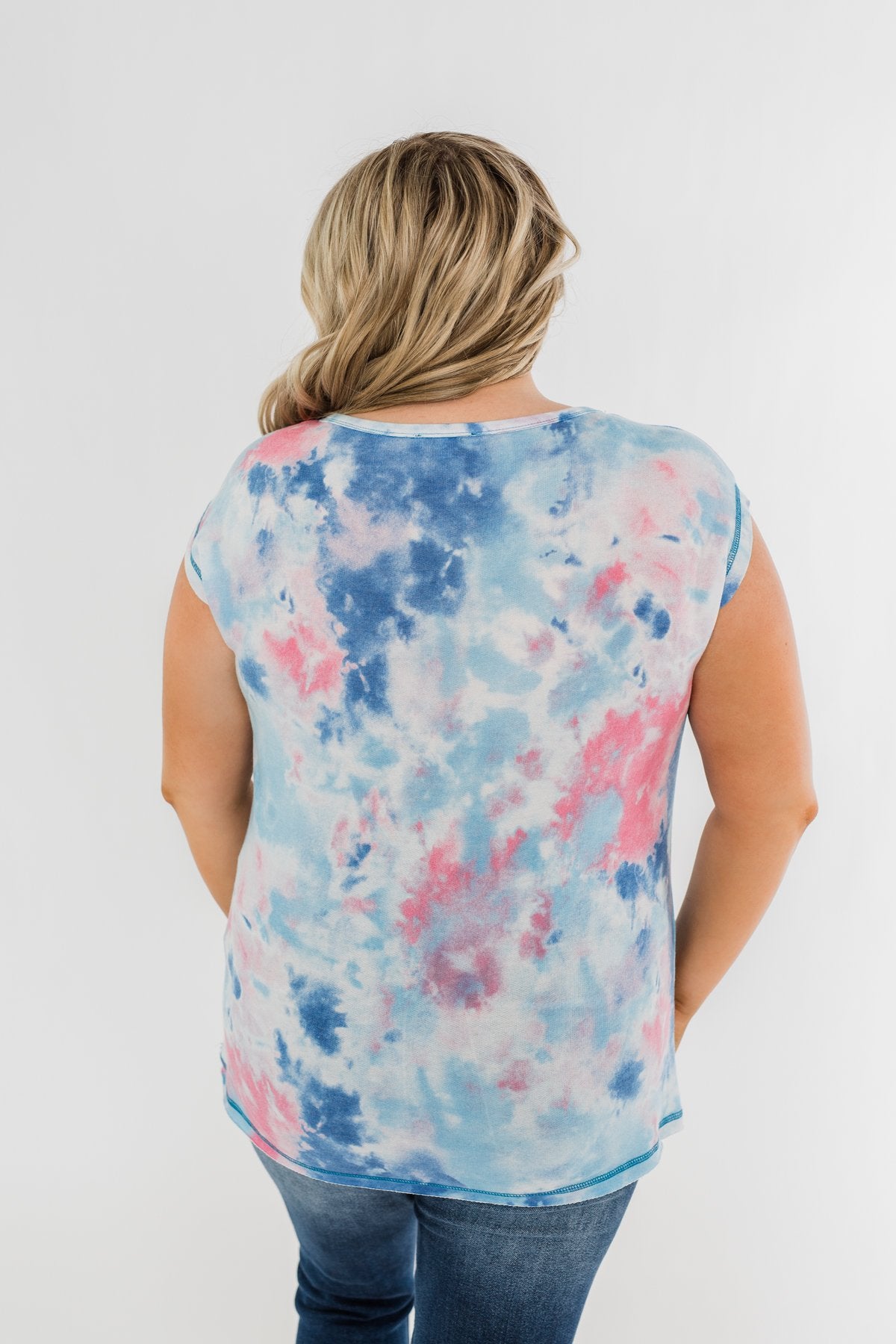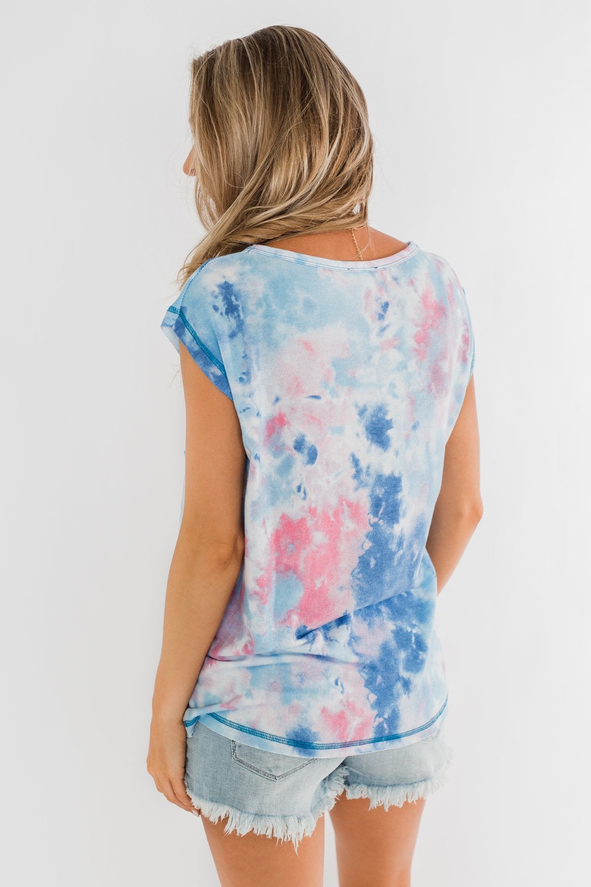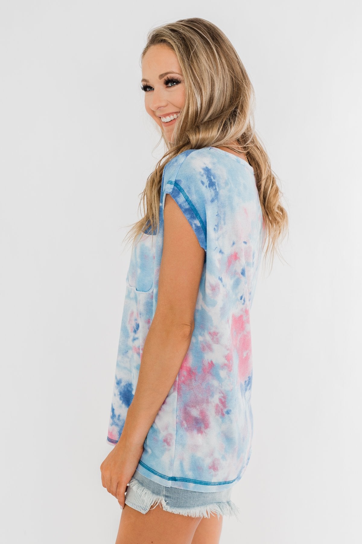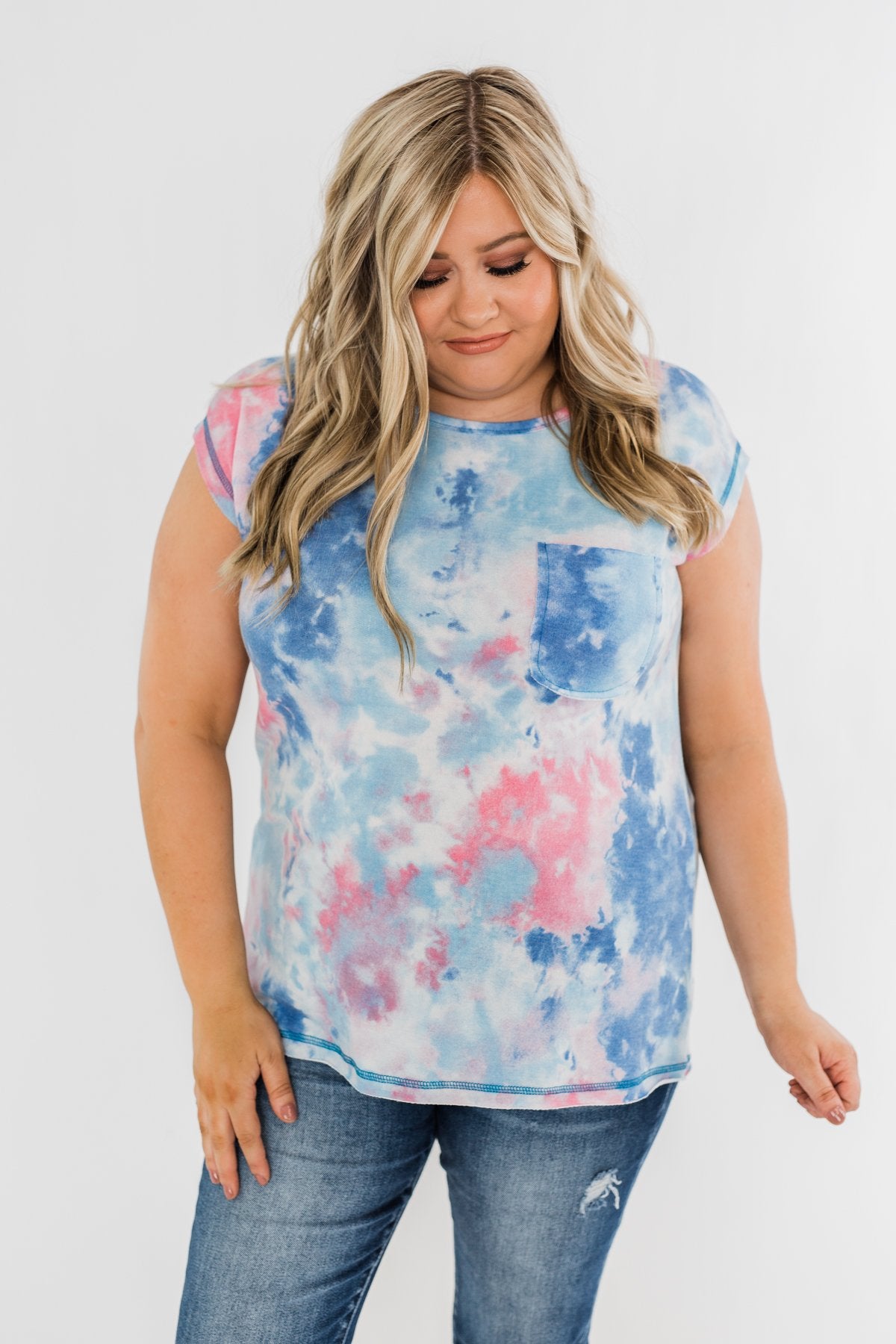 All Is Well Tie Dye Pocket Top- Blue & Pink