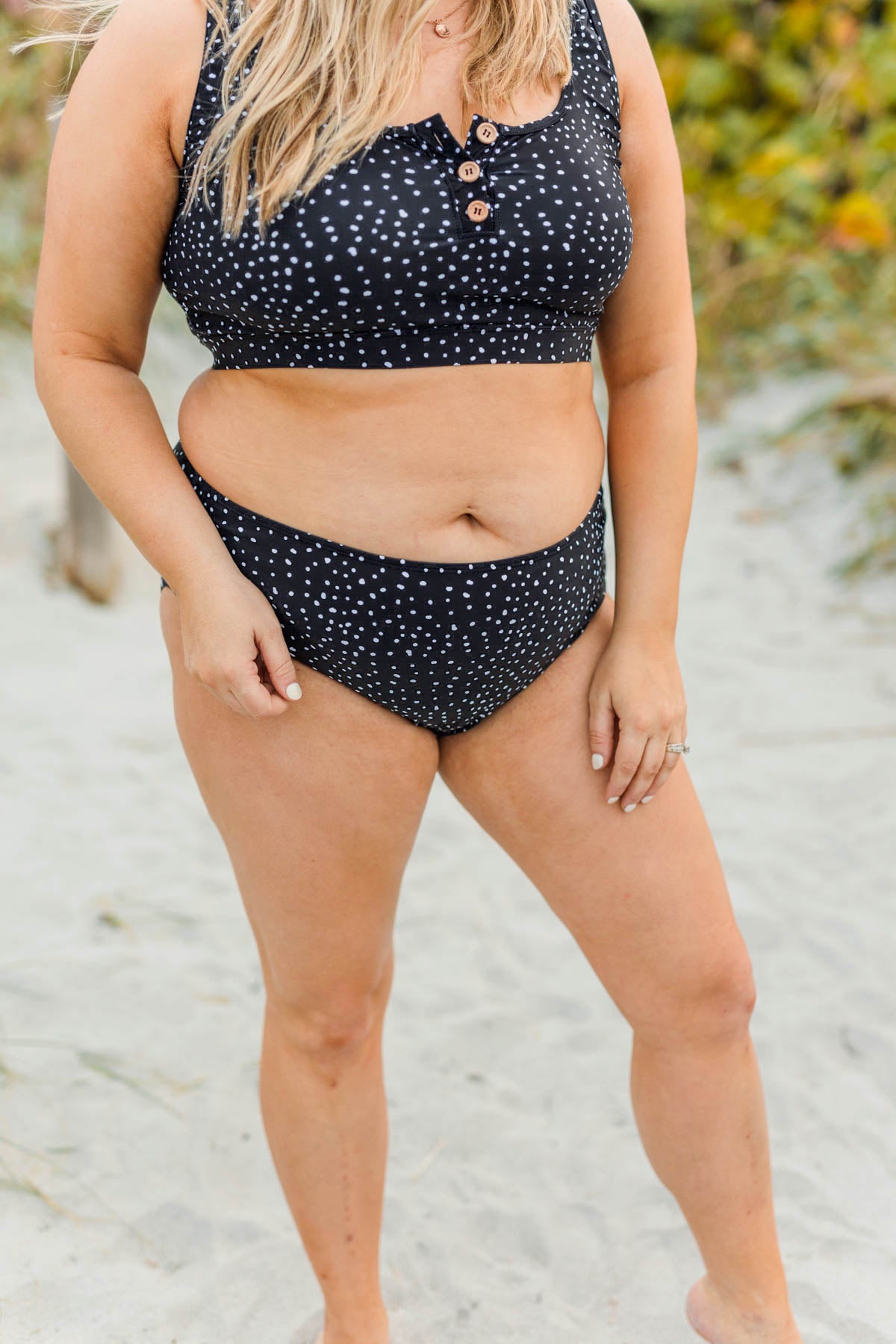 Be ready to bask in the sun this Summer with these adorable mid-rise swim bottoms! These classic bikini bottoms feature a cute spotted print that you're sure to love! The possibilities are endless when it comes to mix and matching different swim pieces!
