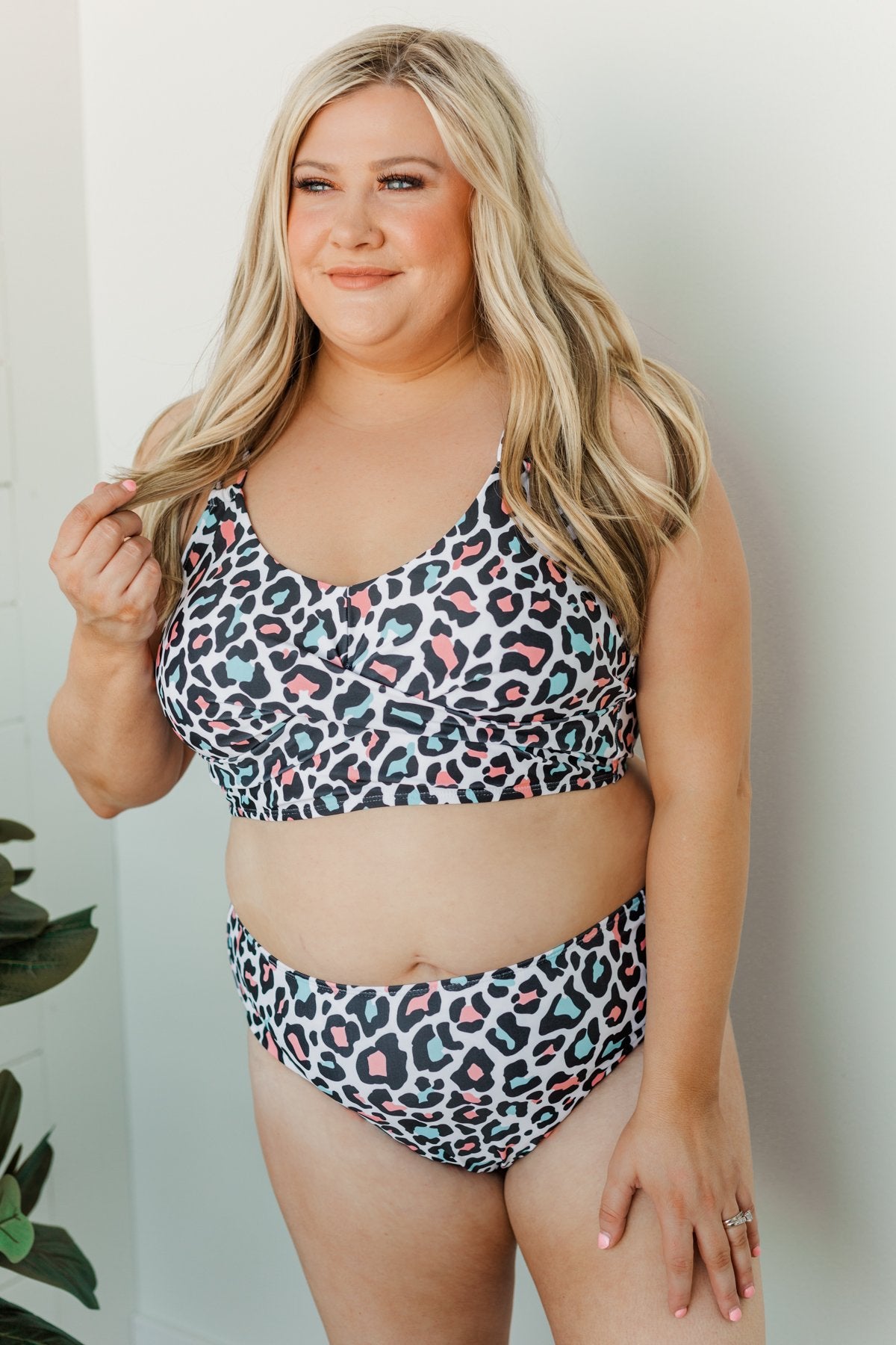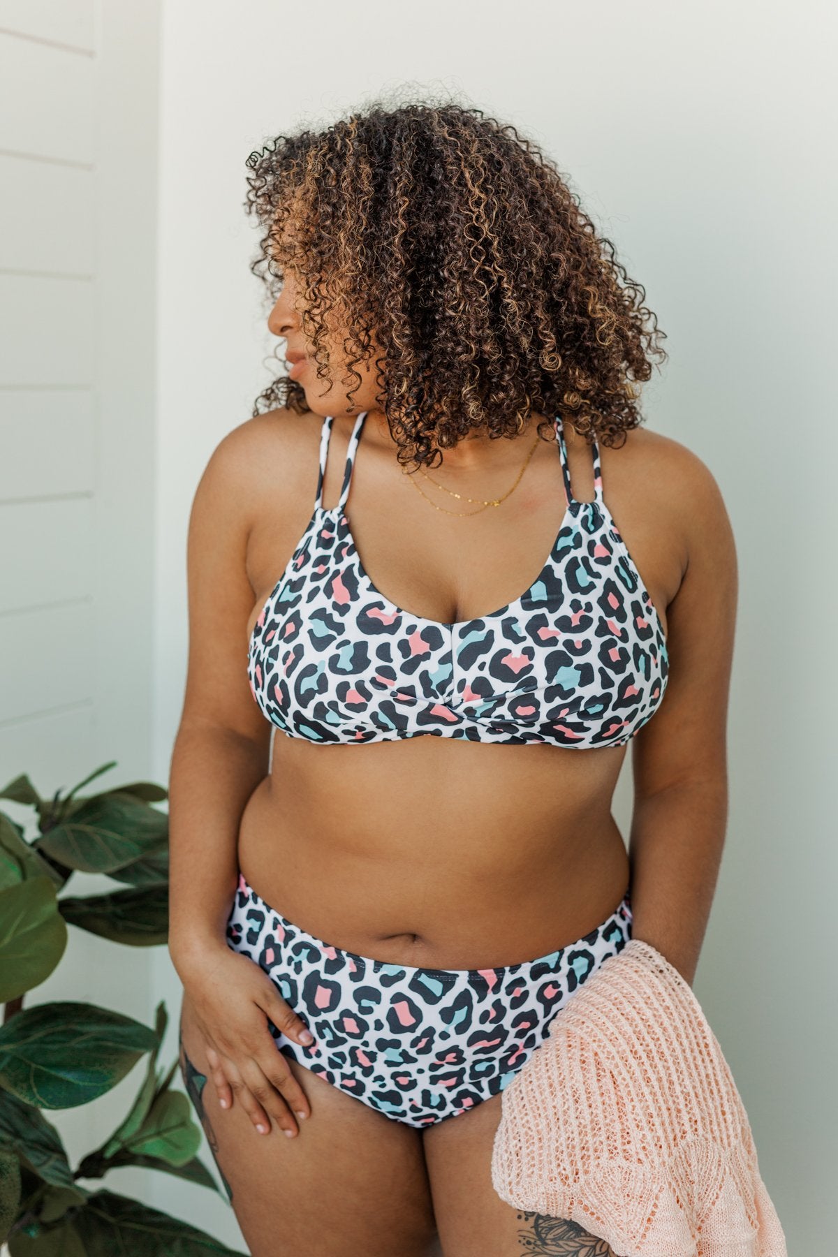 Bask In The Sun Mid-Rise Swim Bottoms- Multi-Color Leopard
