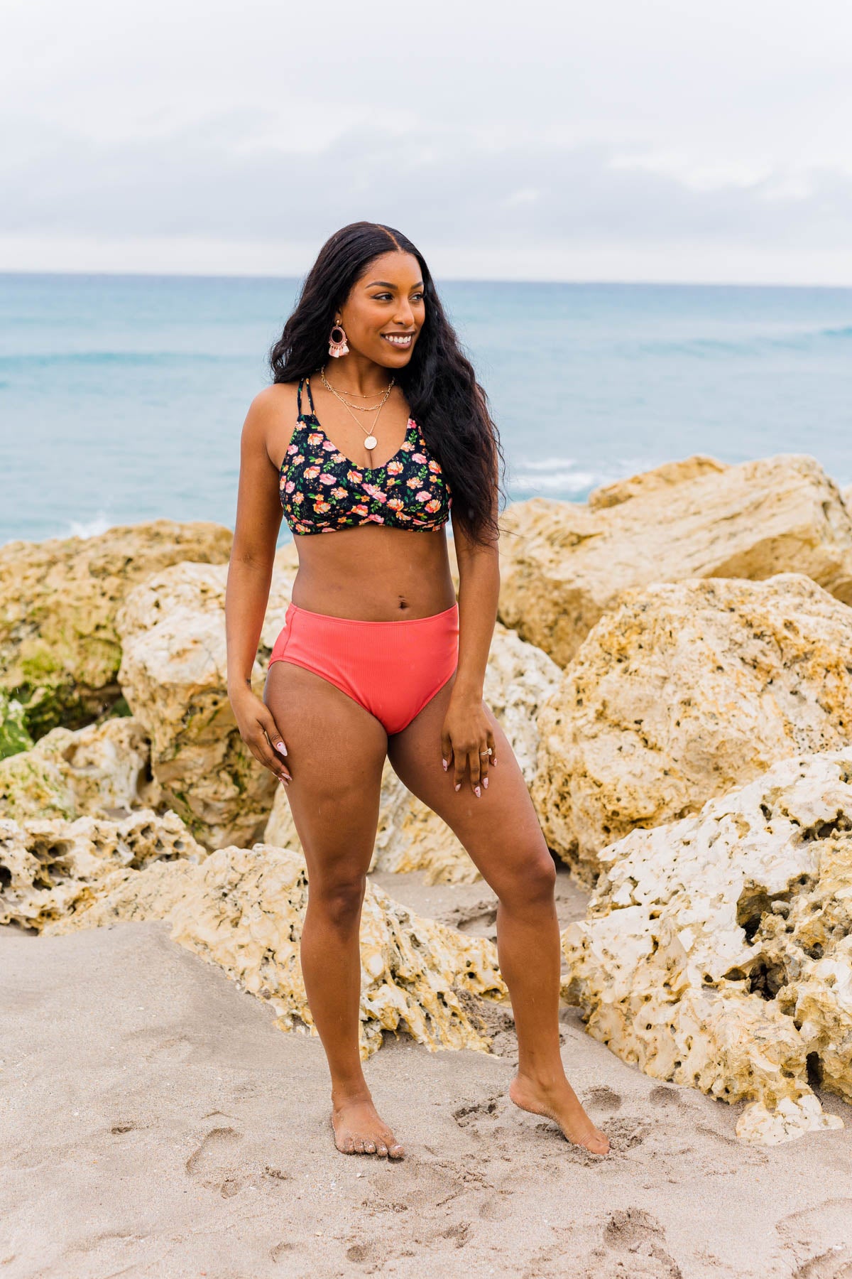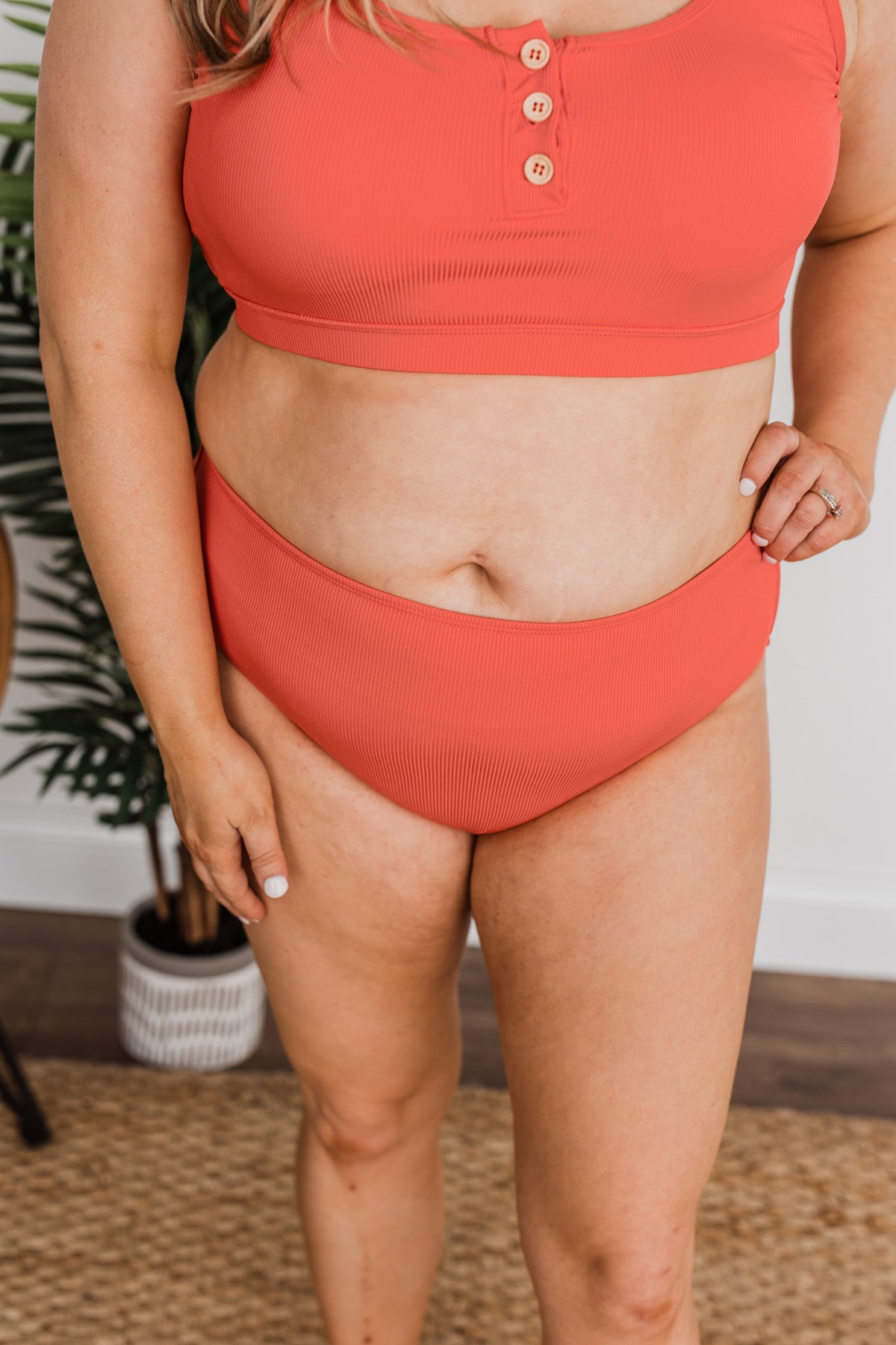 Bask In The Sun Mid-Rise Swim Bottoms- Tomato