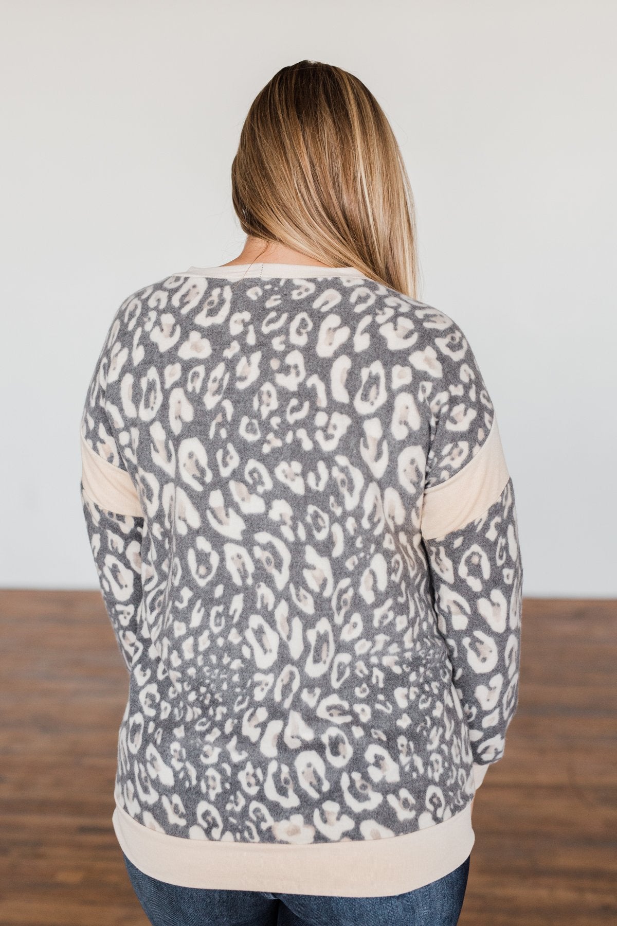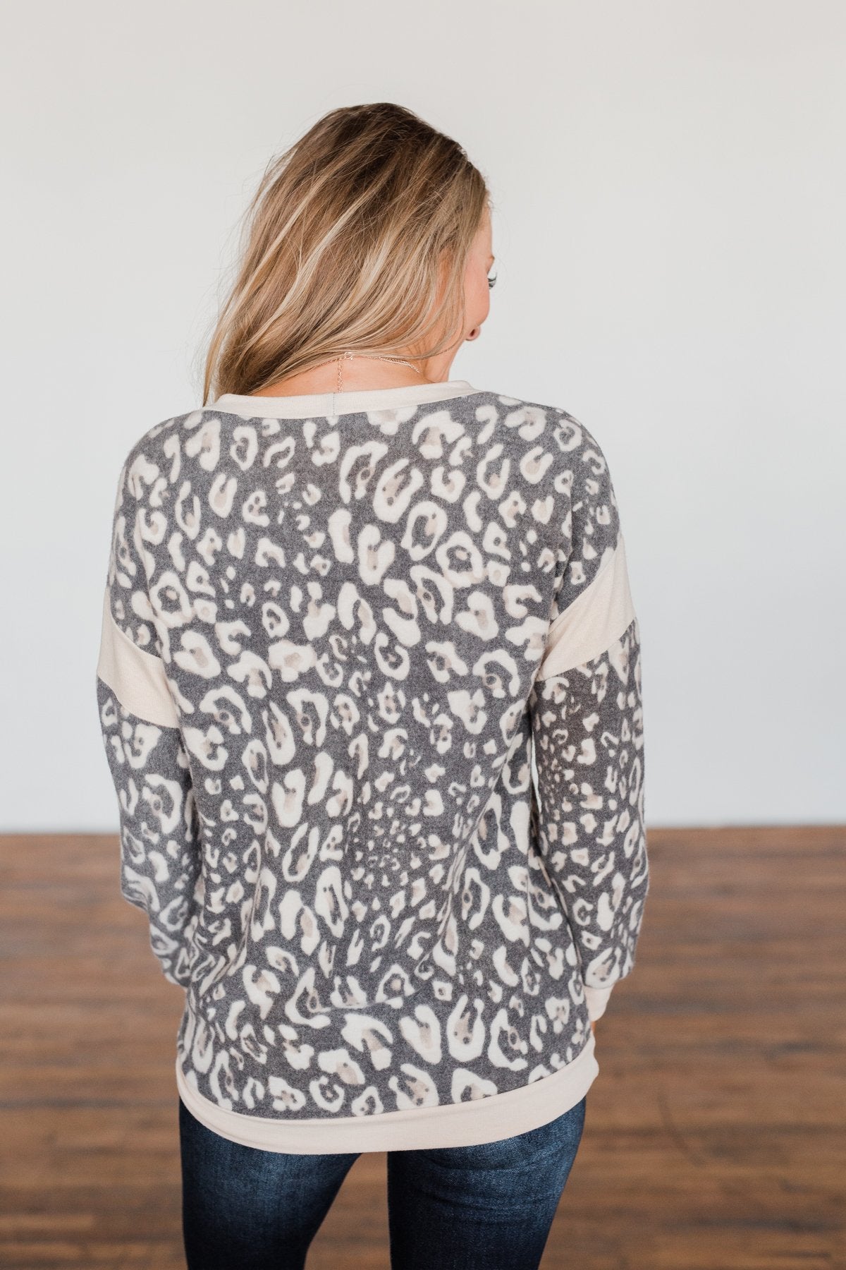 Born This Way Leopard Pullover- Charcoal & Beige