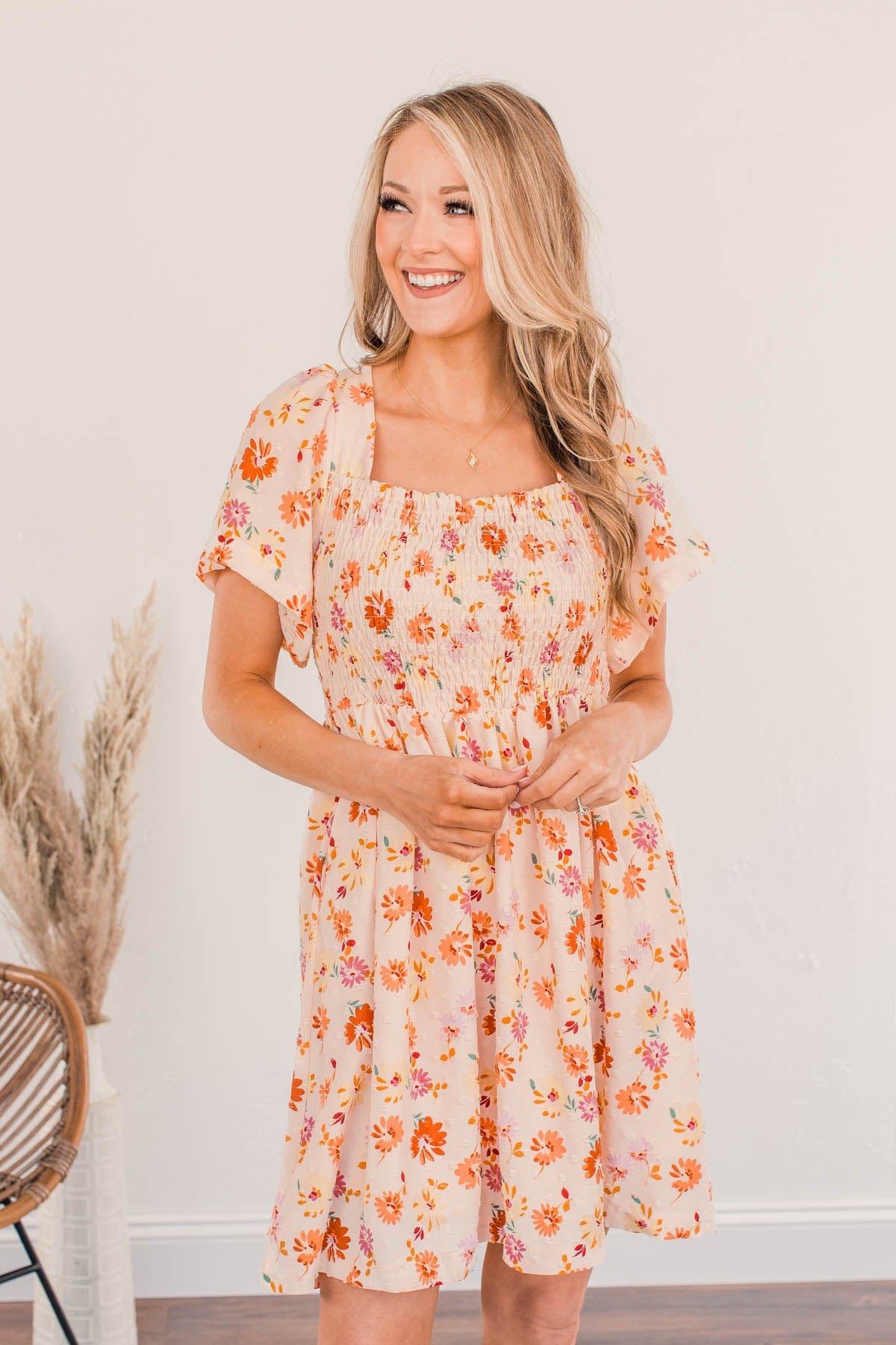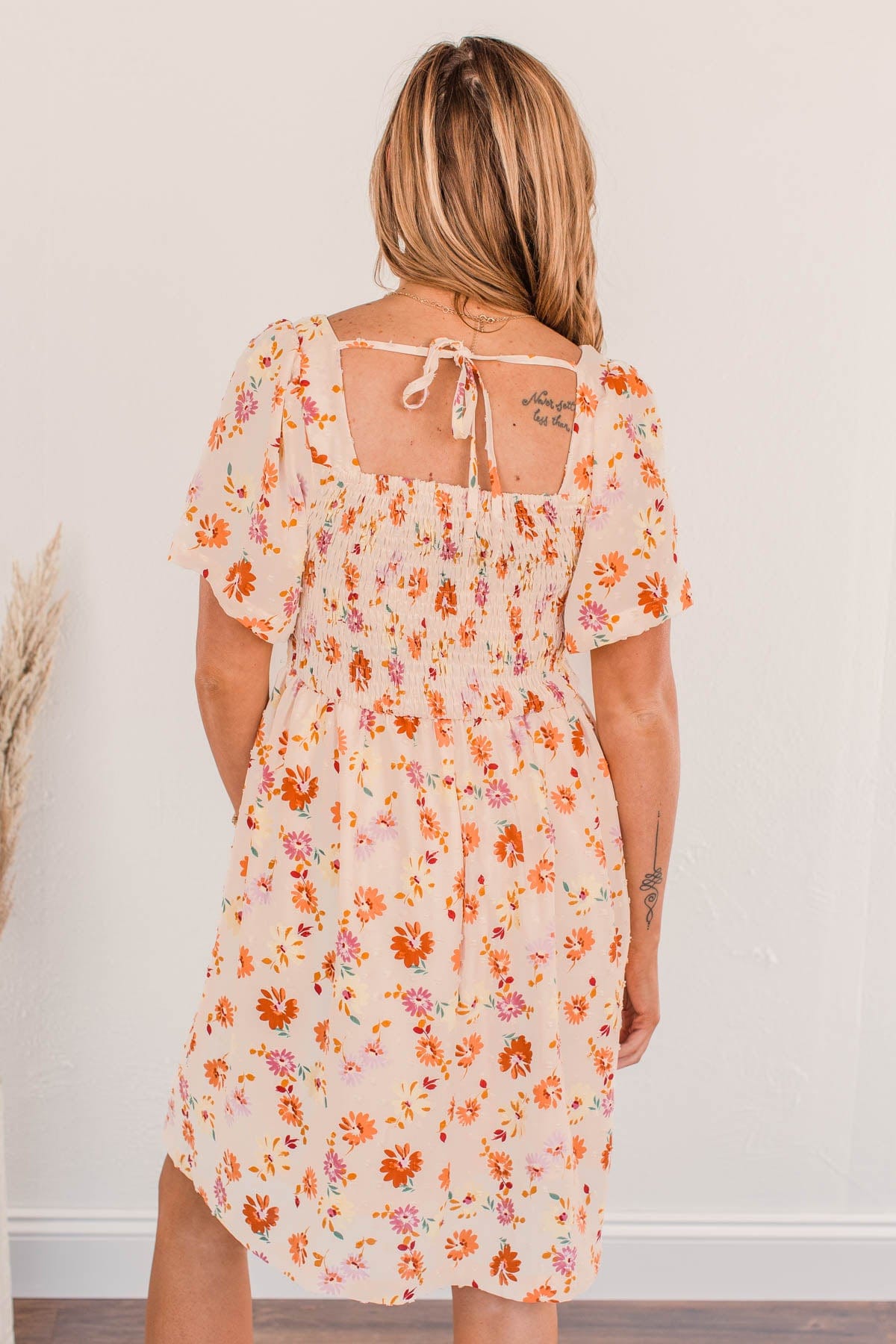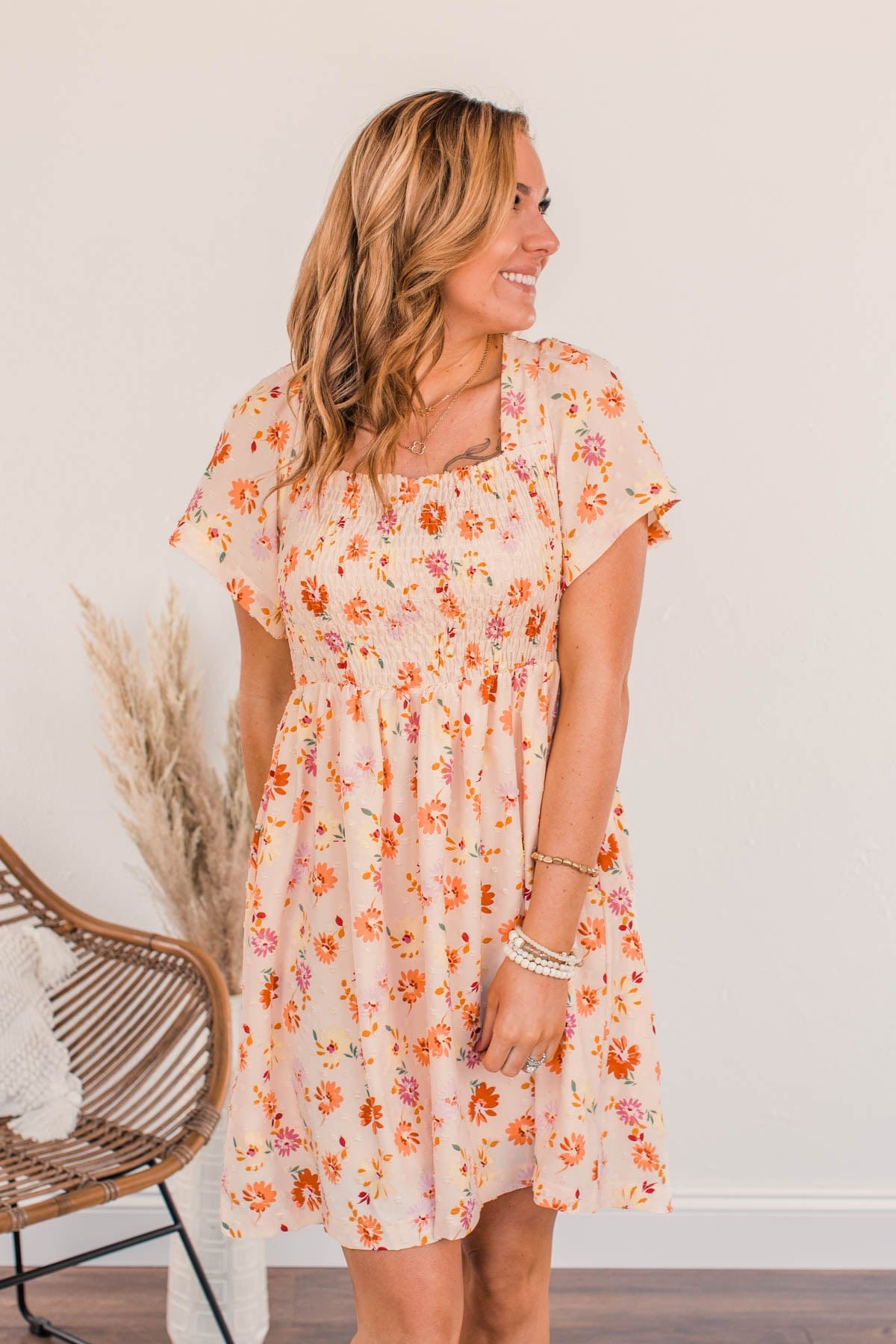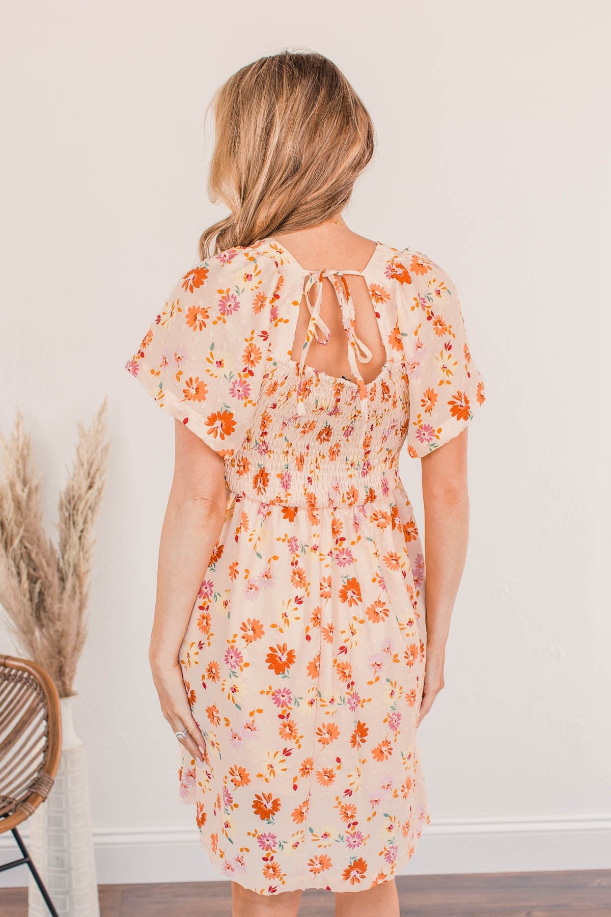Life isn’t always sunshine and daisies, but it could be with the right outfit! This dress was made for Spring with features like the smocked bust, swiss dot material with a fantastic floral print, pockets along the sides, and the tie detail on the back! This gorgeous dress also features an inner lining so you’ll feel cute and comfy all day long with the perfect amount of coverage!