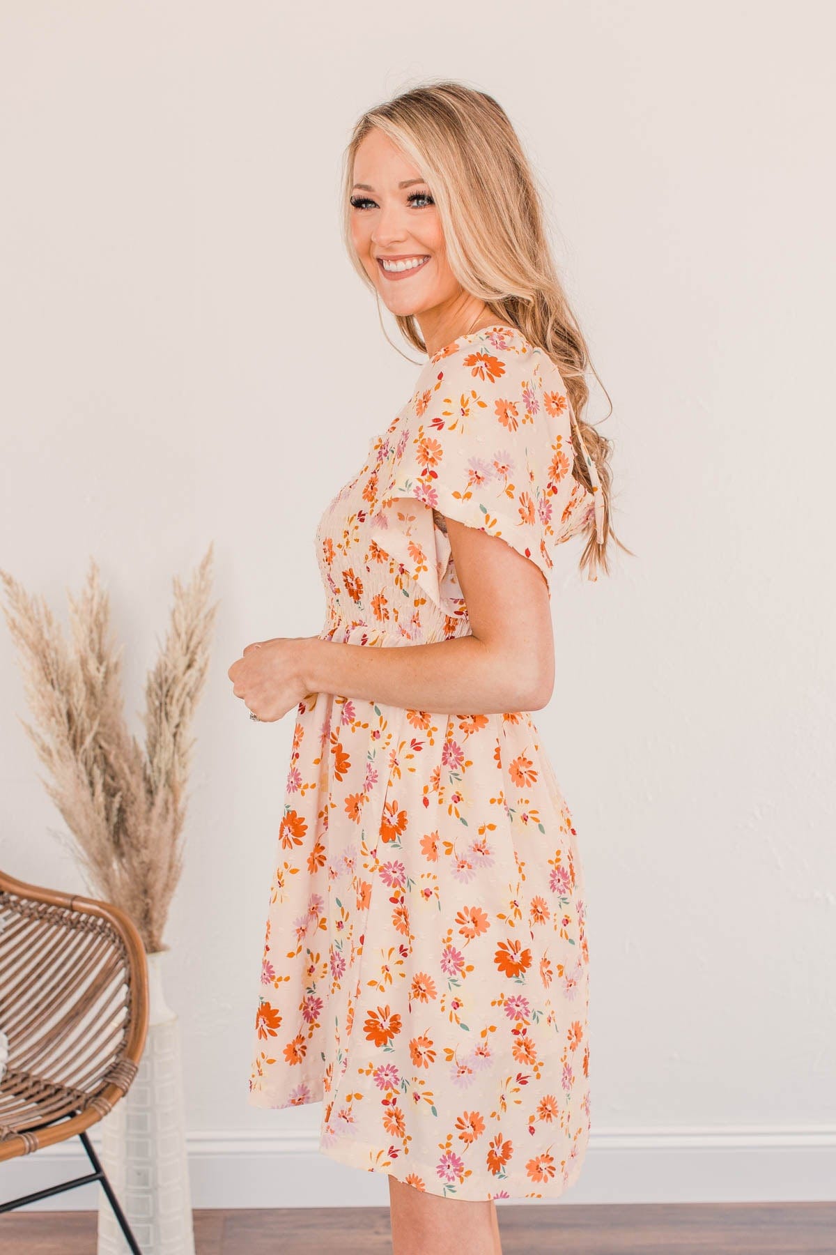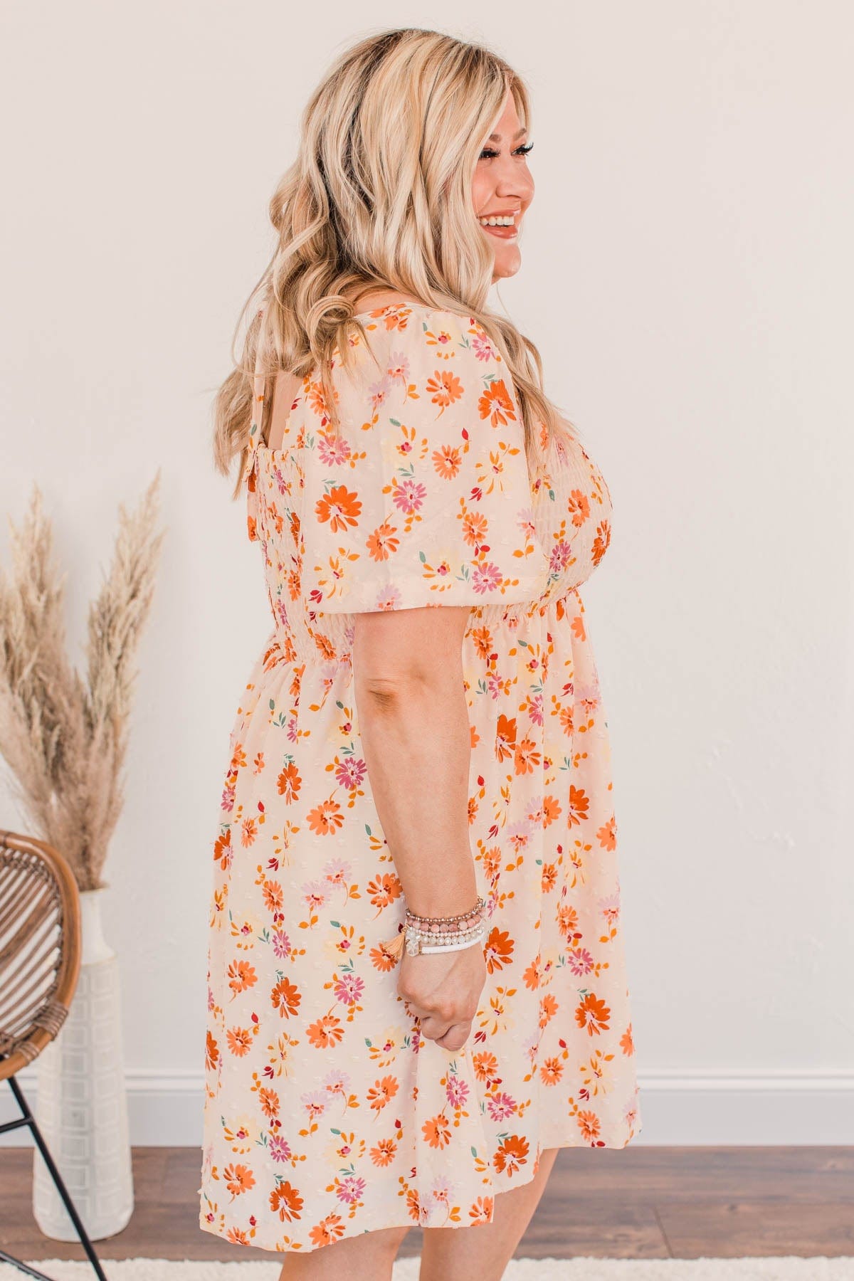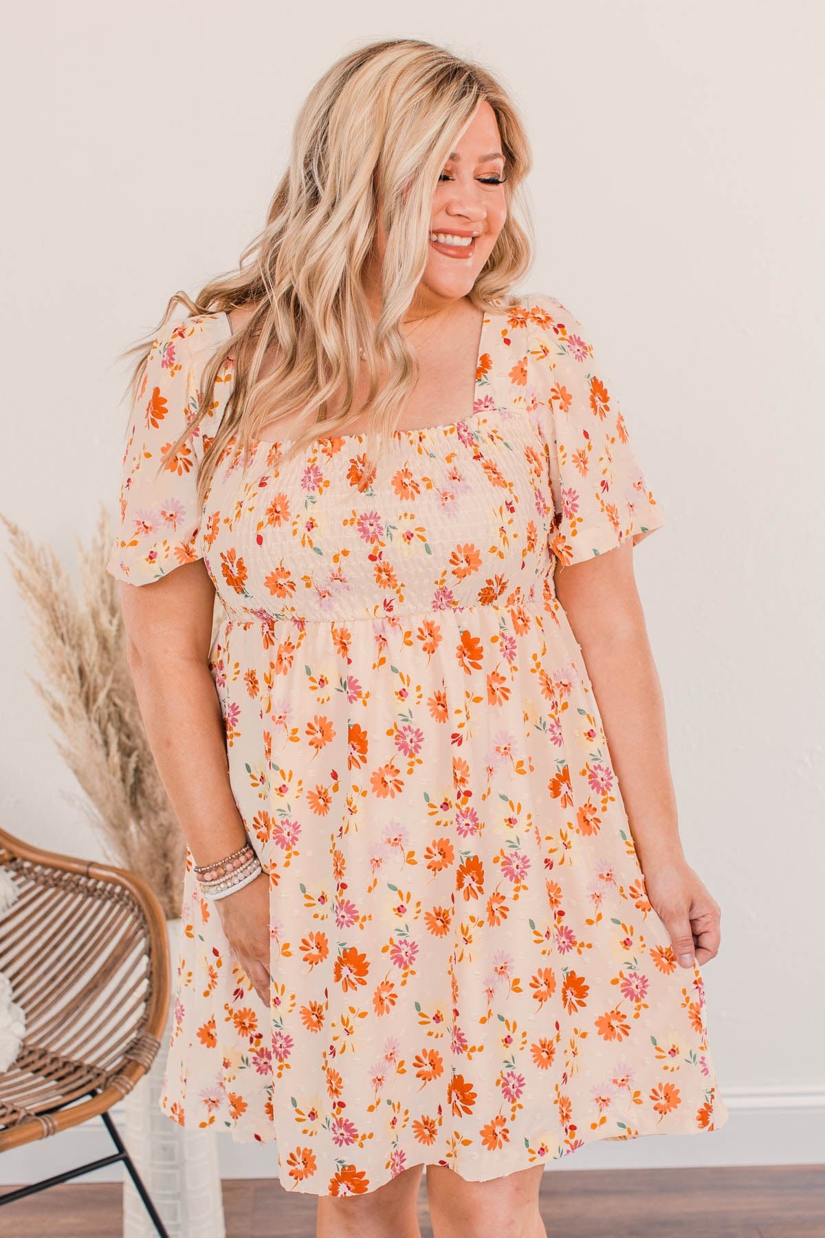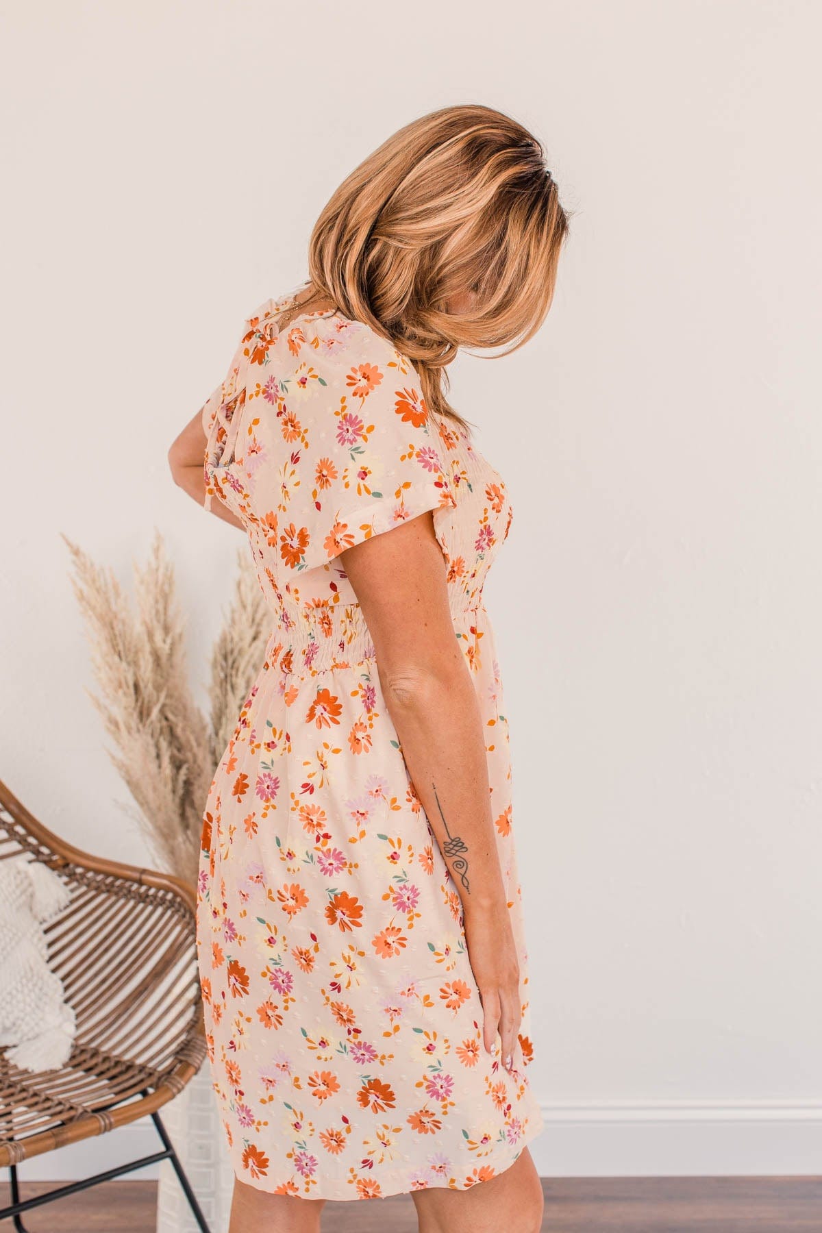 Life isn’t always sunshine and daisies, but it could be with the right outfit! This dress was made for Spring with features like the smocked bust, swiss dot material with a fantastic floral print, pockets along the sides, and the tie detail on the back! This gorgeous dress also features an inner lining so you’ll feel cute and comfy all day long with the perfect amount of coverage!