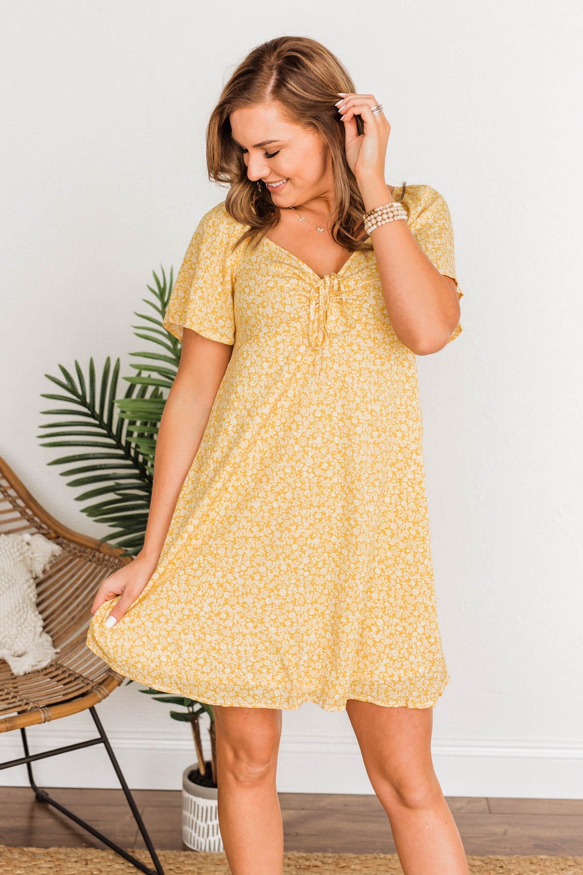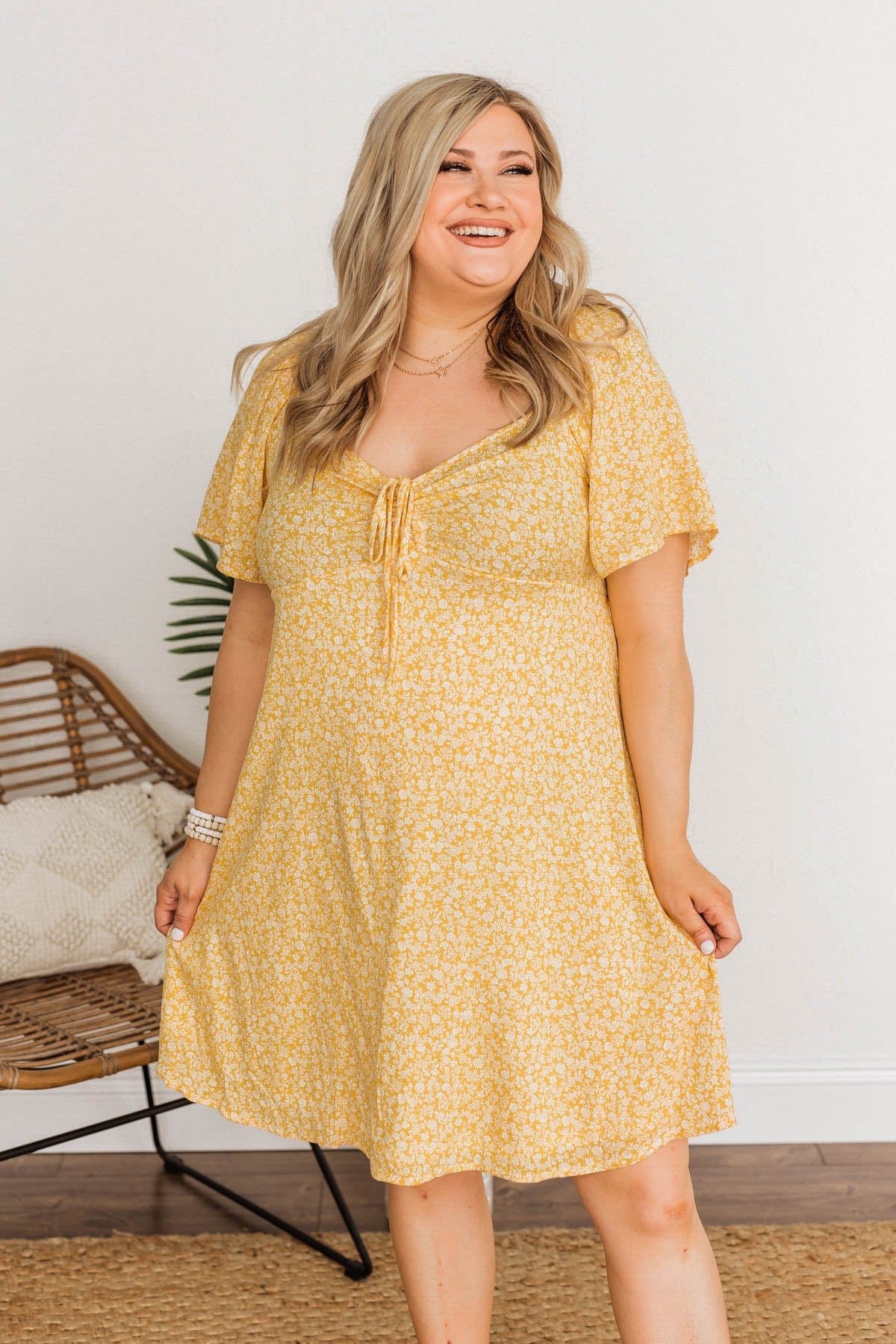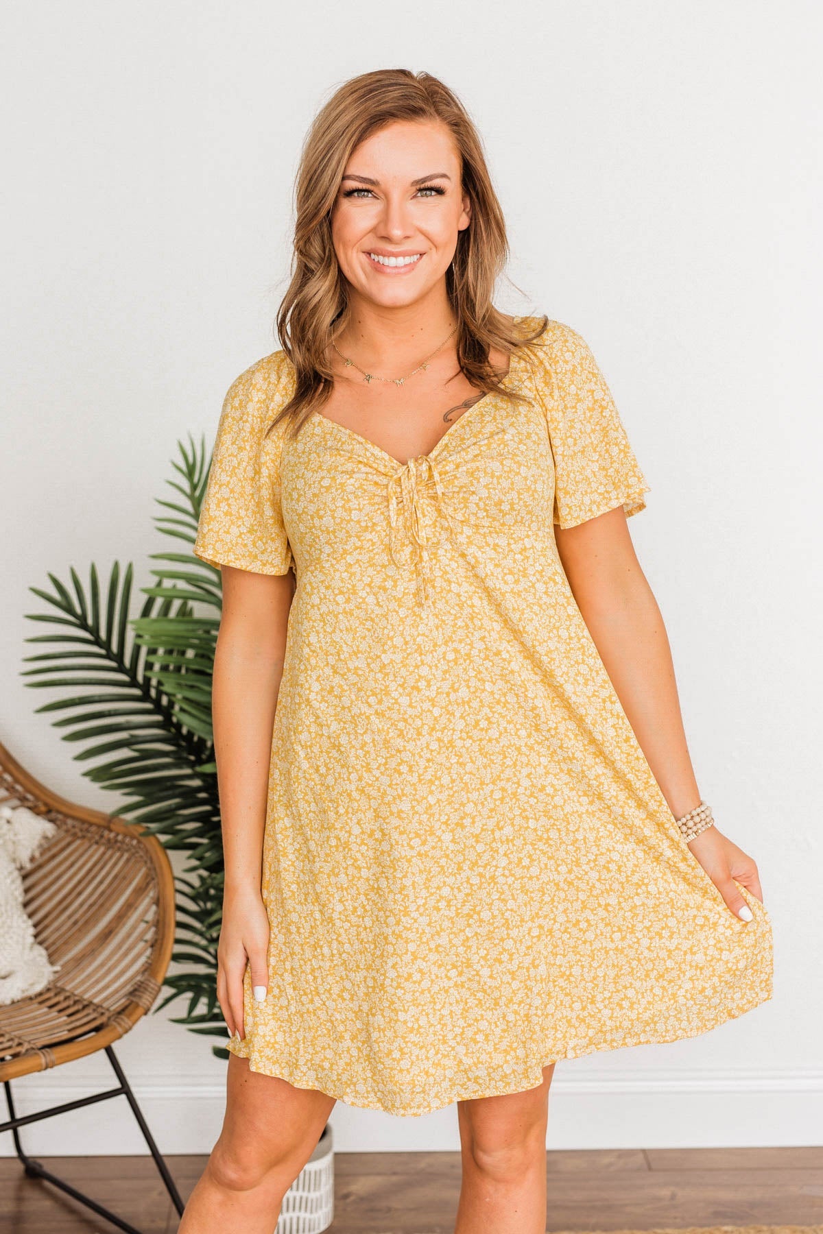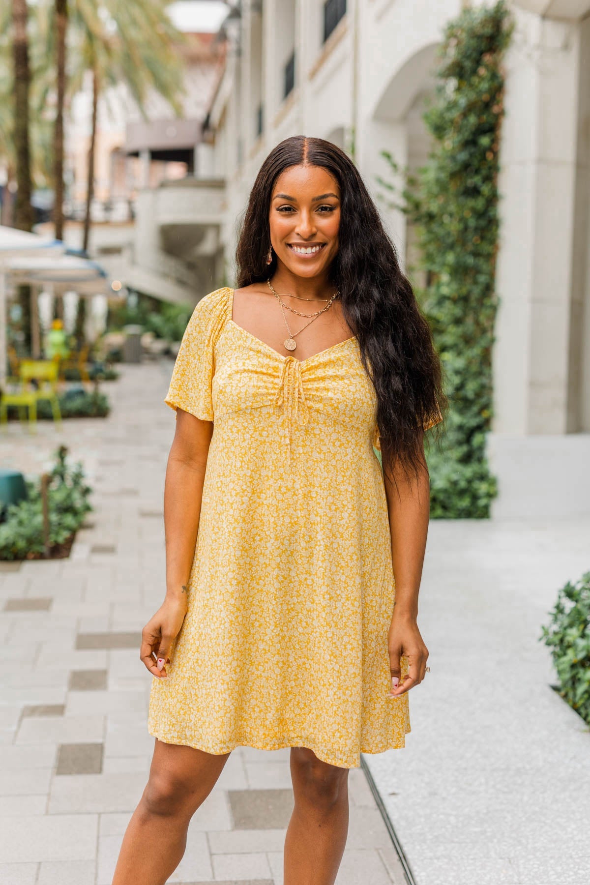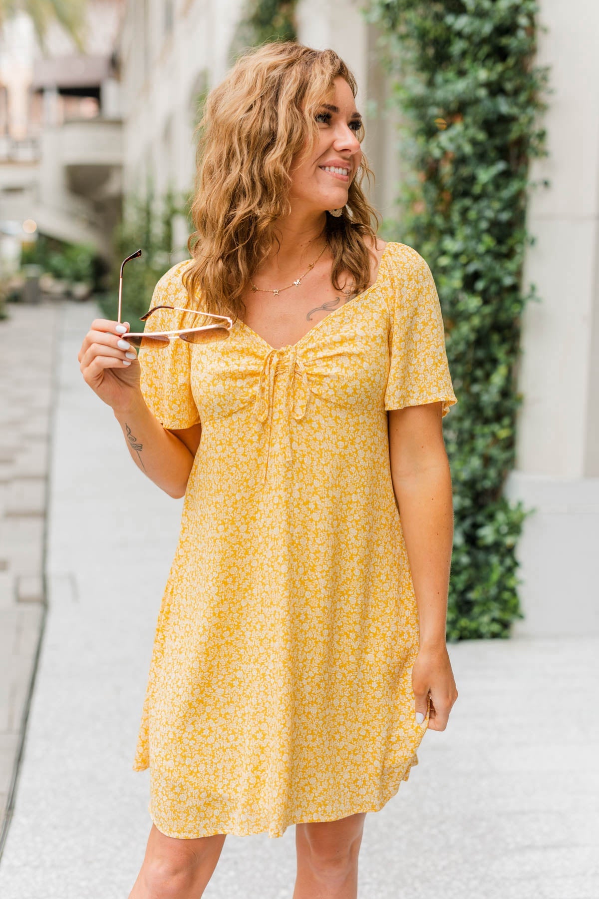 Show off your stunning self with this gorgeous floral dress! You’ll be delighted by every detail from the tie bust with cinched detailing to the sweet floral print! Dress up for any occasion with this darling dress and dance the day away in an adorable way!