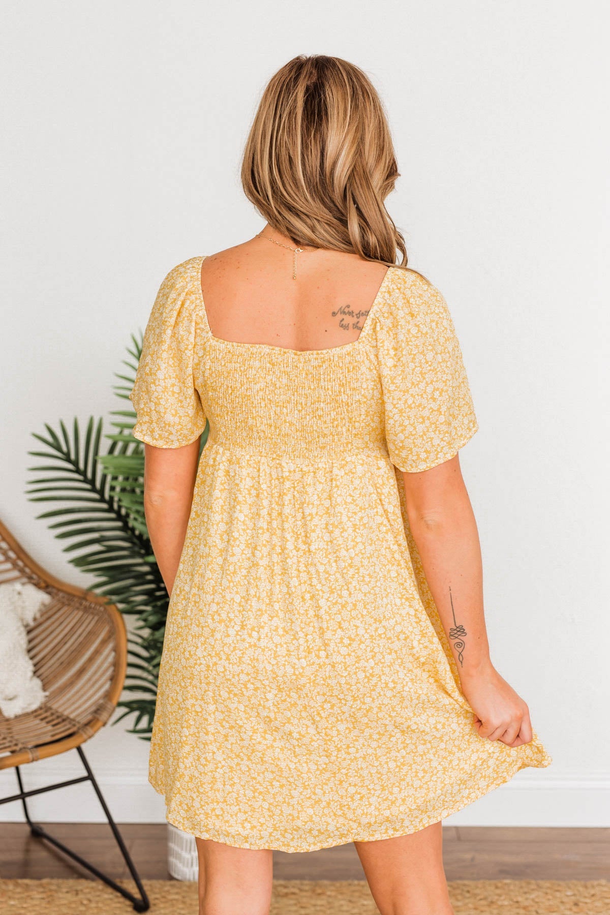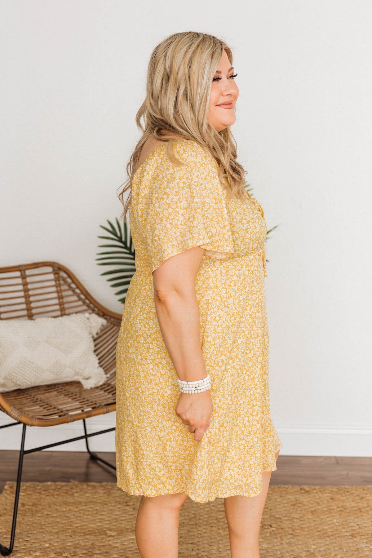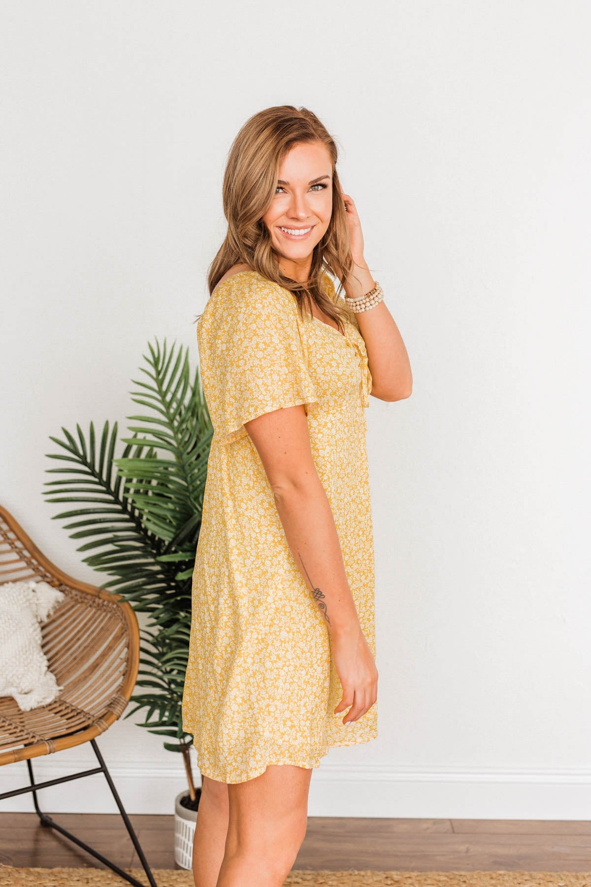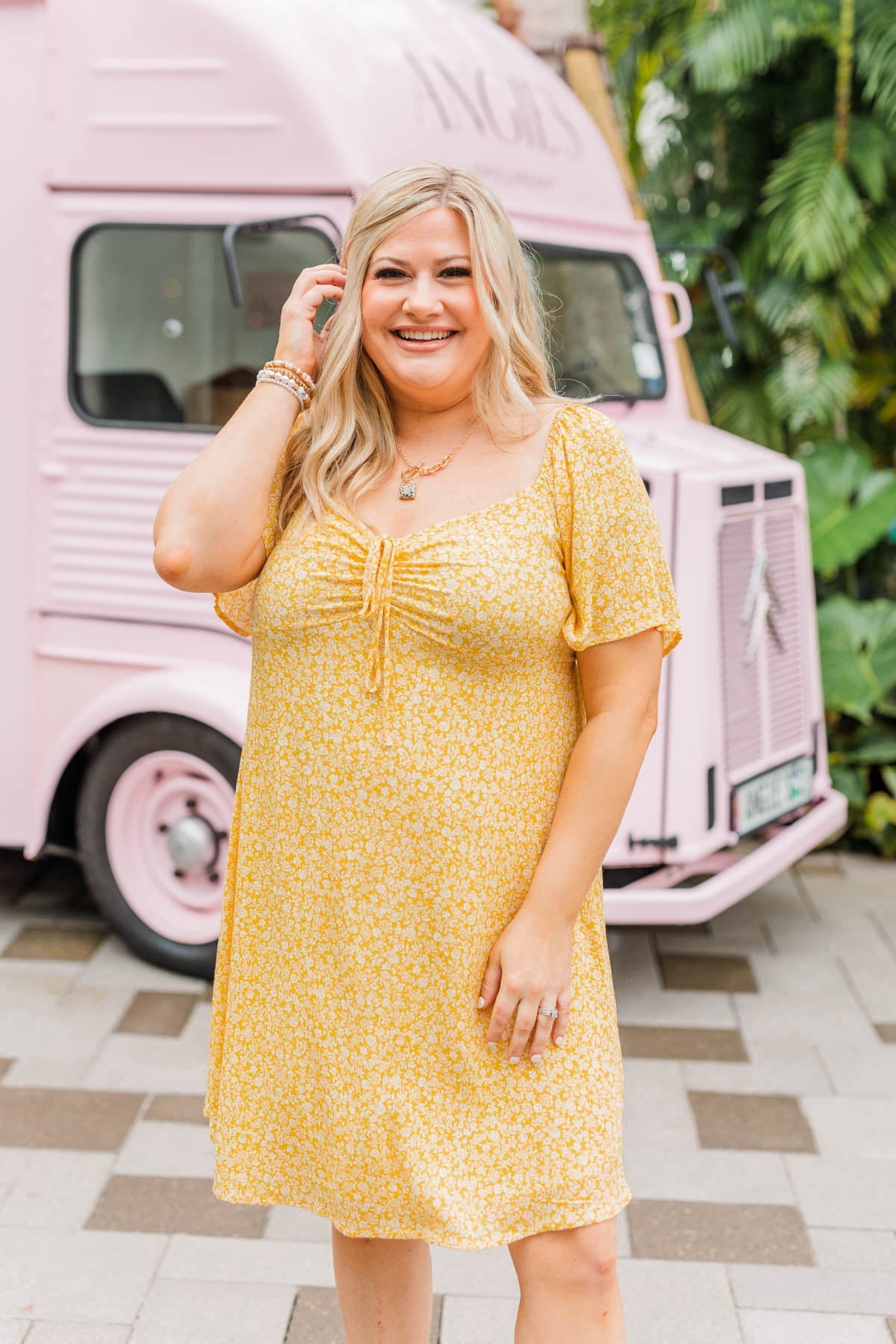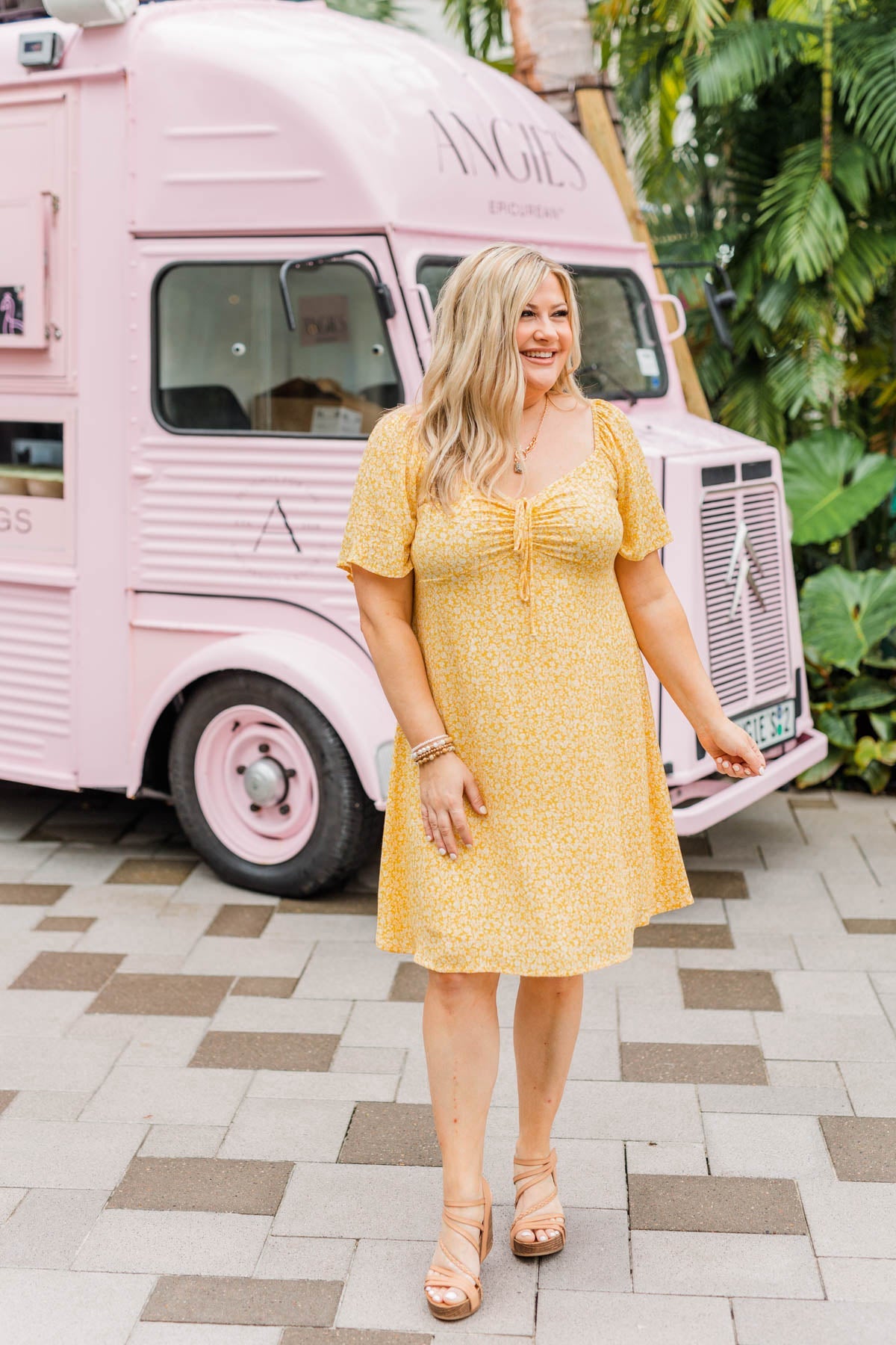 Show off your stunning self with this gorgeous floral dress! You’ll be delighted by every detail from the tie bust with cinched detailing to the sweet floral print! Dress up for any occasion with this darling dress and dance the day away in an adorable way!