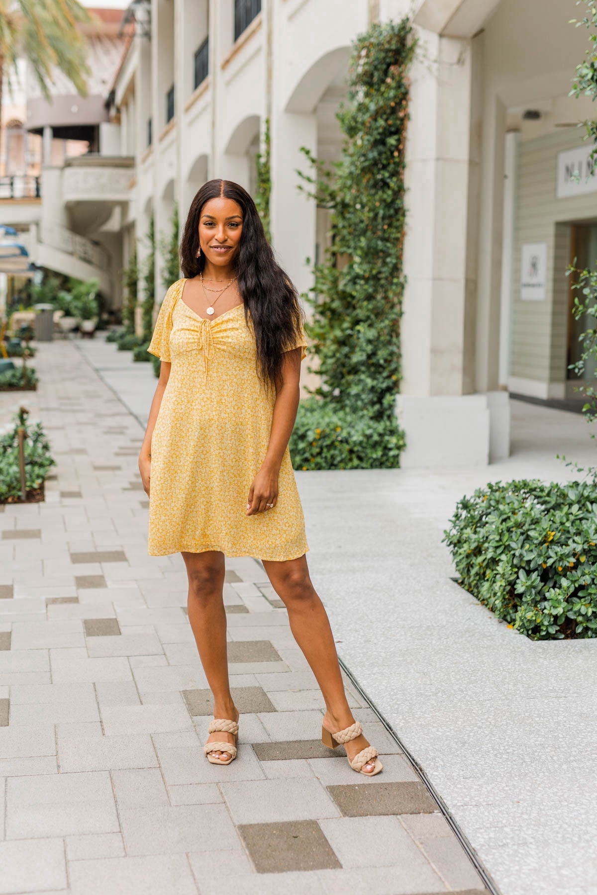 I'm loving yellow lately! This dress certainly does not disappoint! It can be worn to run errands or to a party! Just depends on what shoes & accessories you put with it!