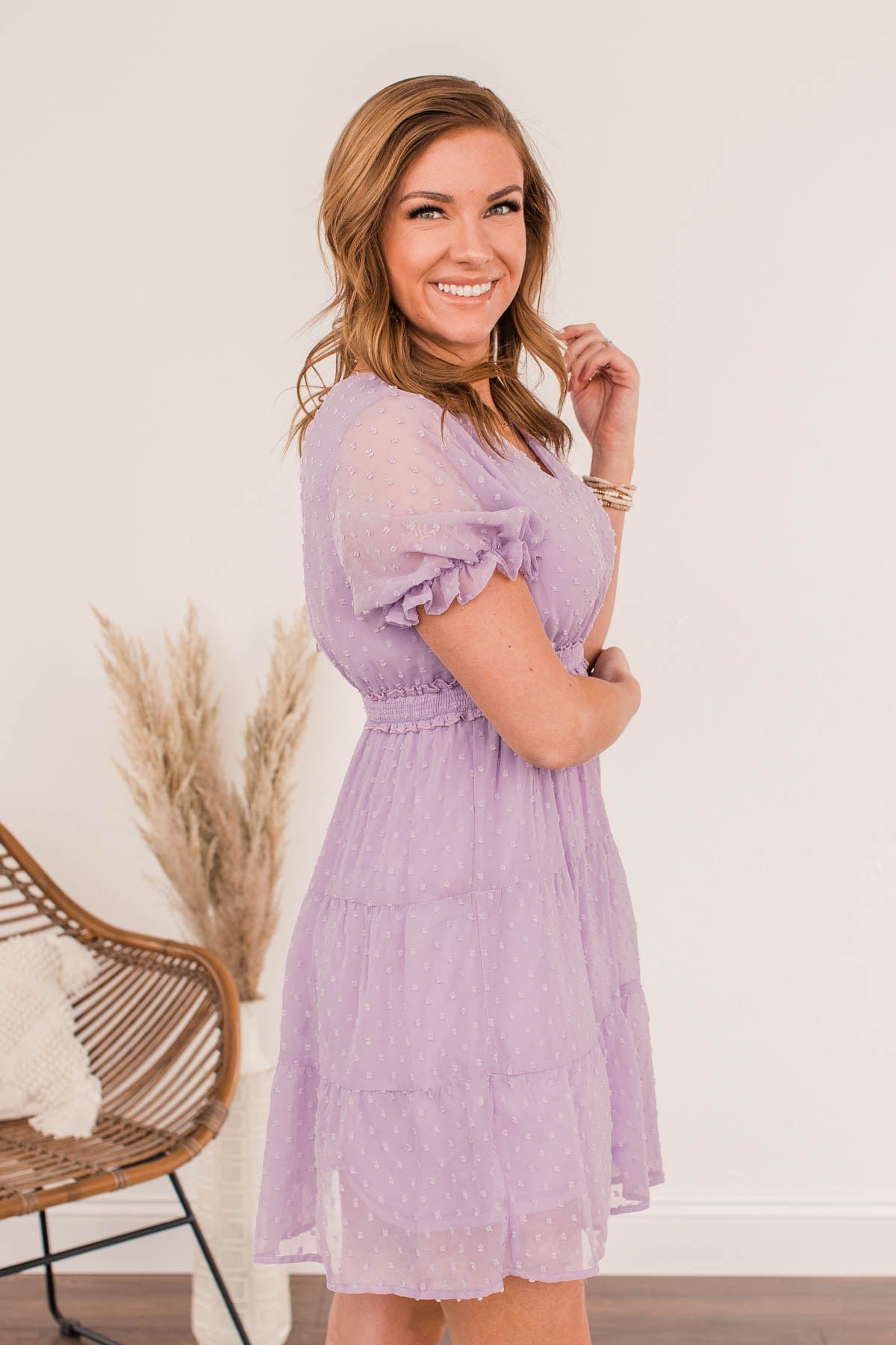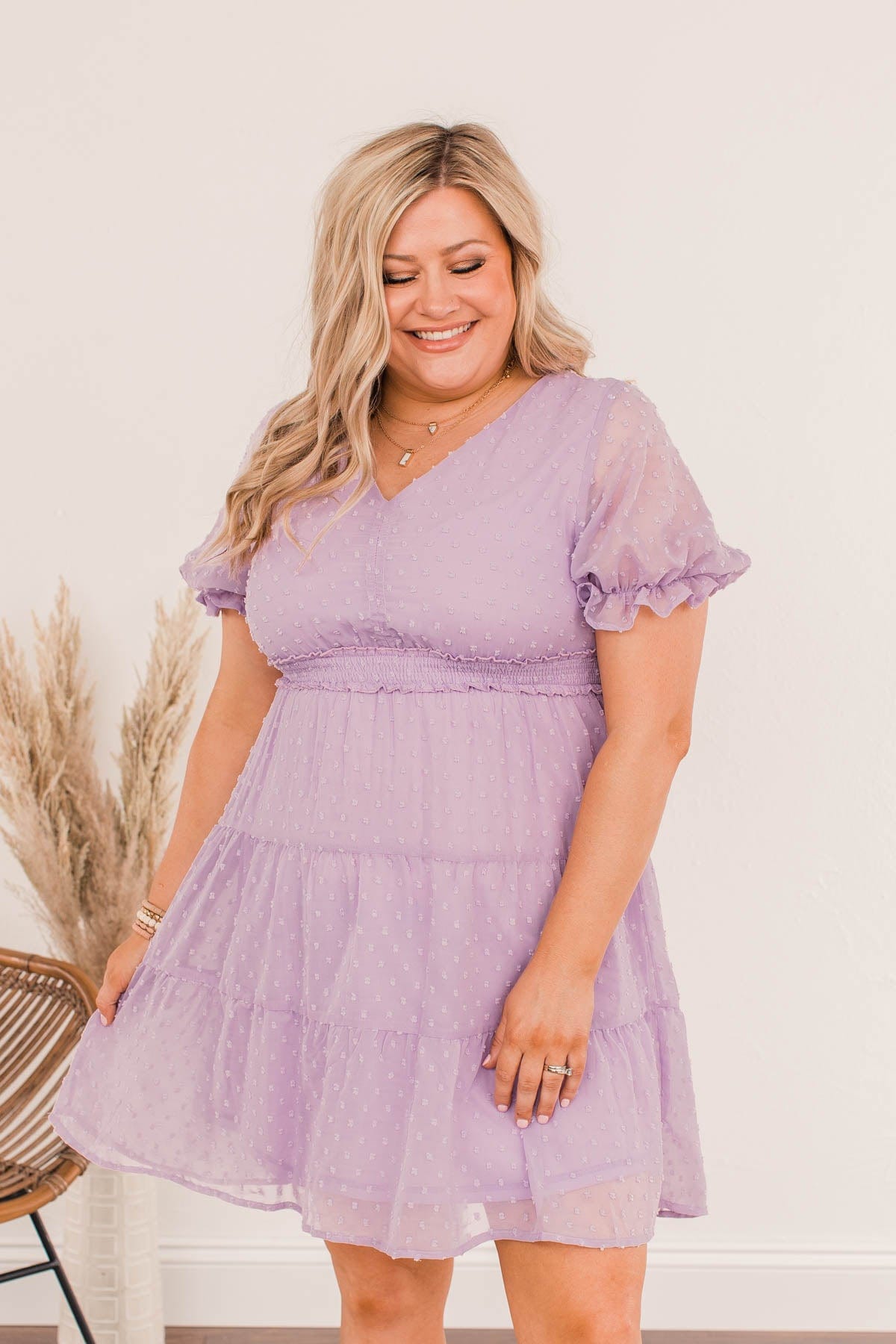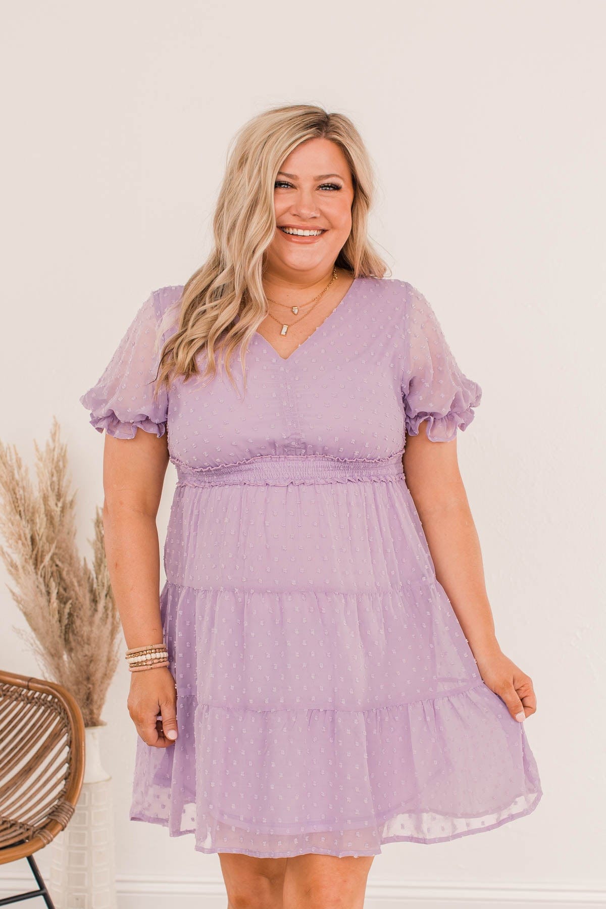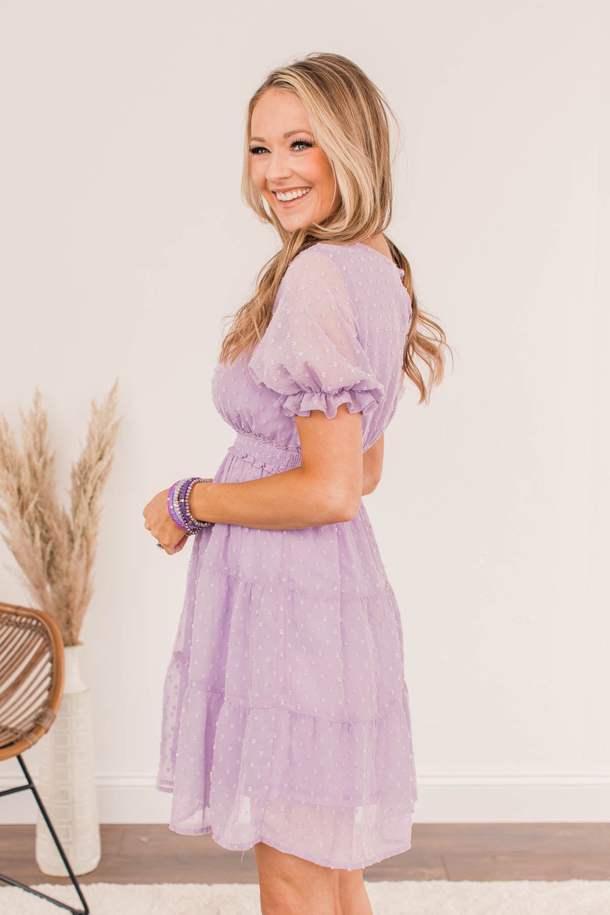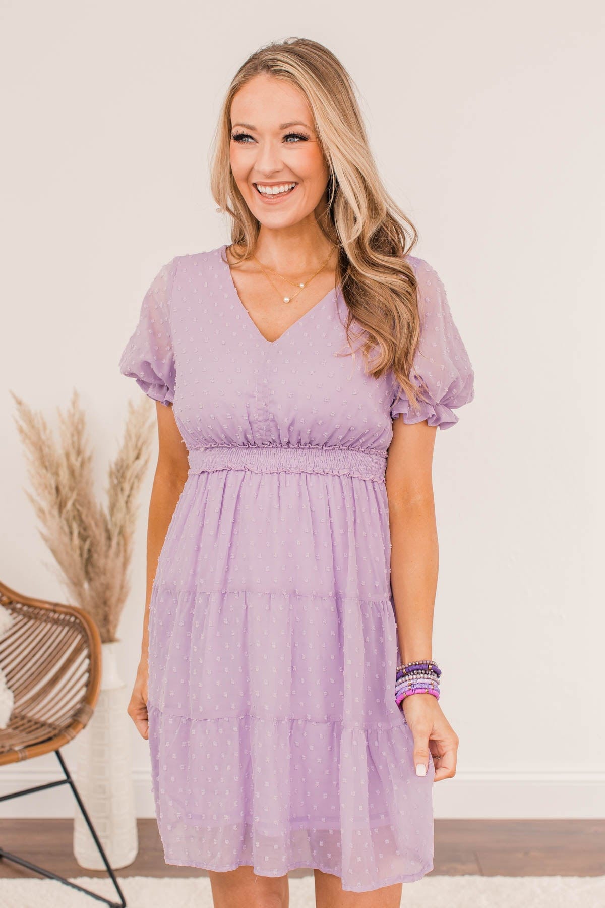 Be comfortably beautiful everywhere you go with this charming dress! Let your look do the talking with details like the tiered body style with a swiss dot material, the puff sleeves with cinched cuffs, and the smocked elastic waistband that adds a touch of trendy appeal! This dress will be your new go-to for every event this upcoming season!
