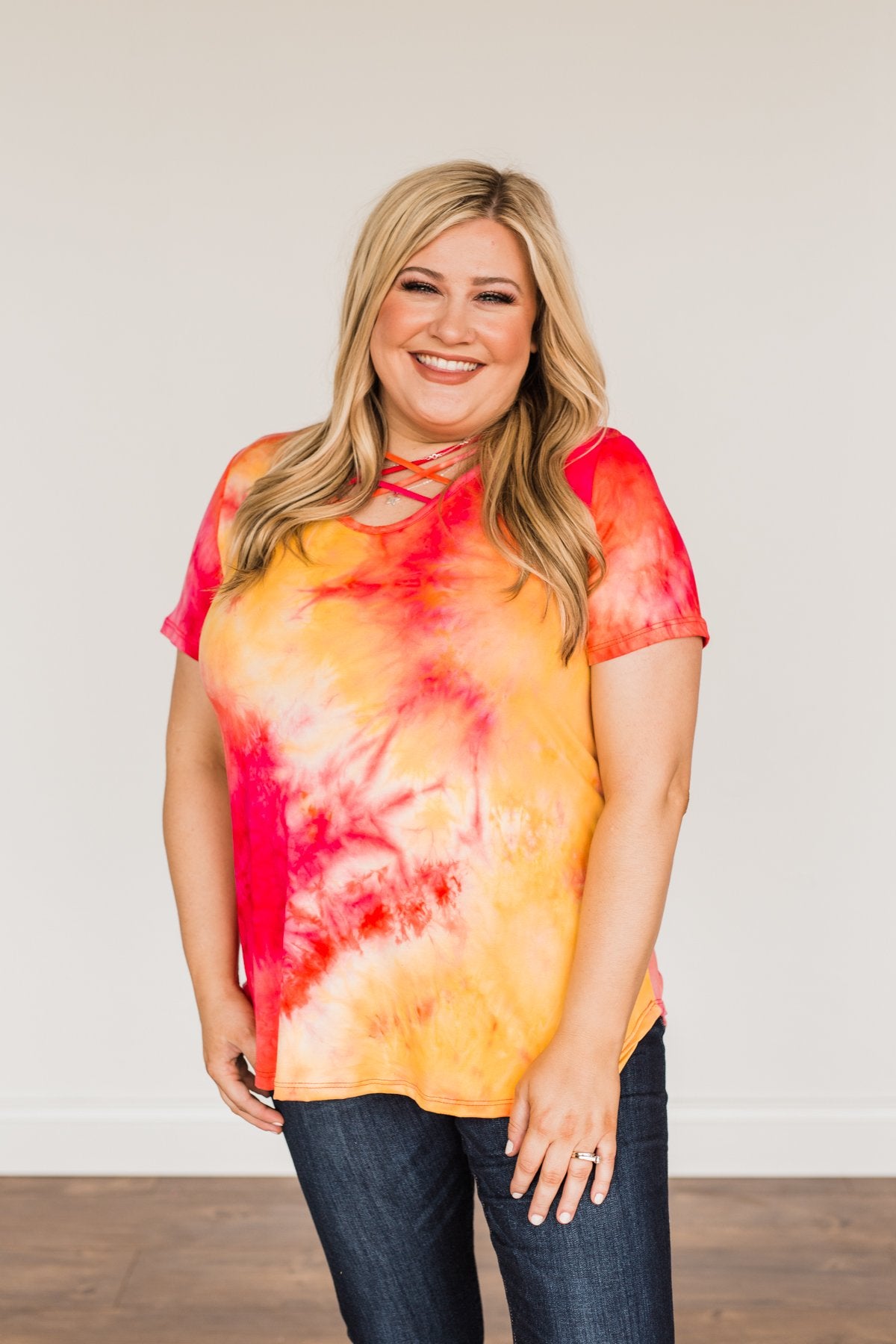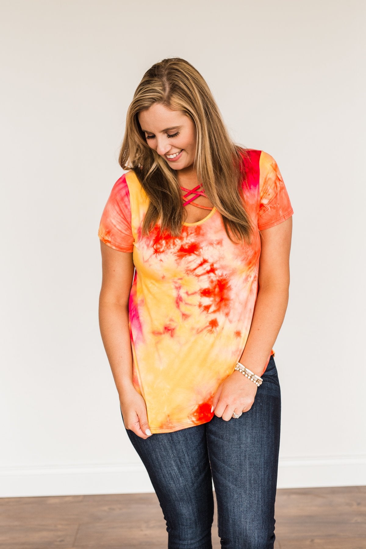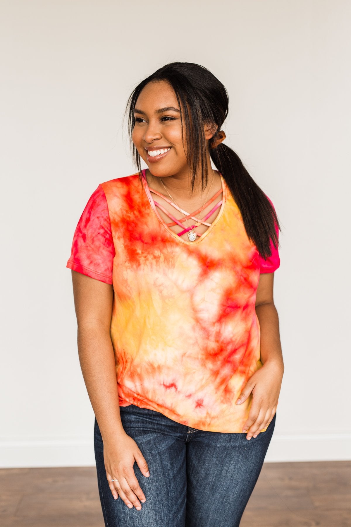 Find Your Fire Tie-Dye Top- Yellow, Orange & Fuchsia
