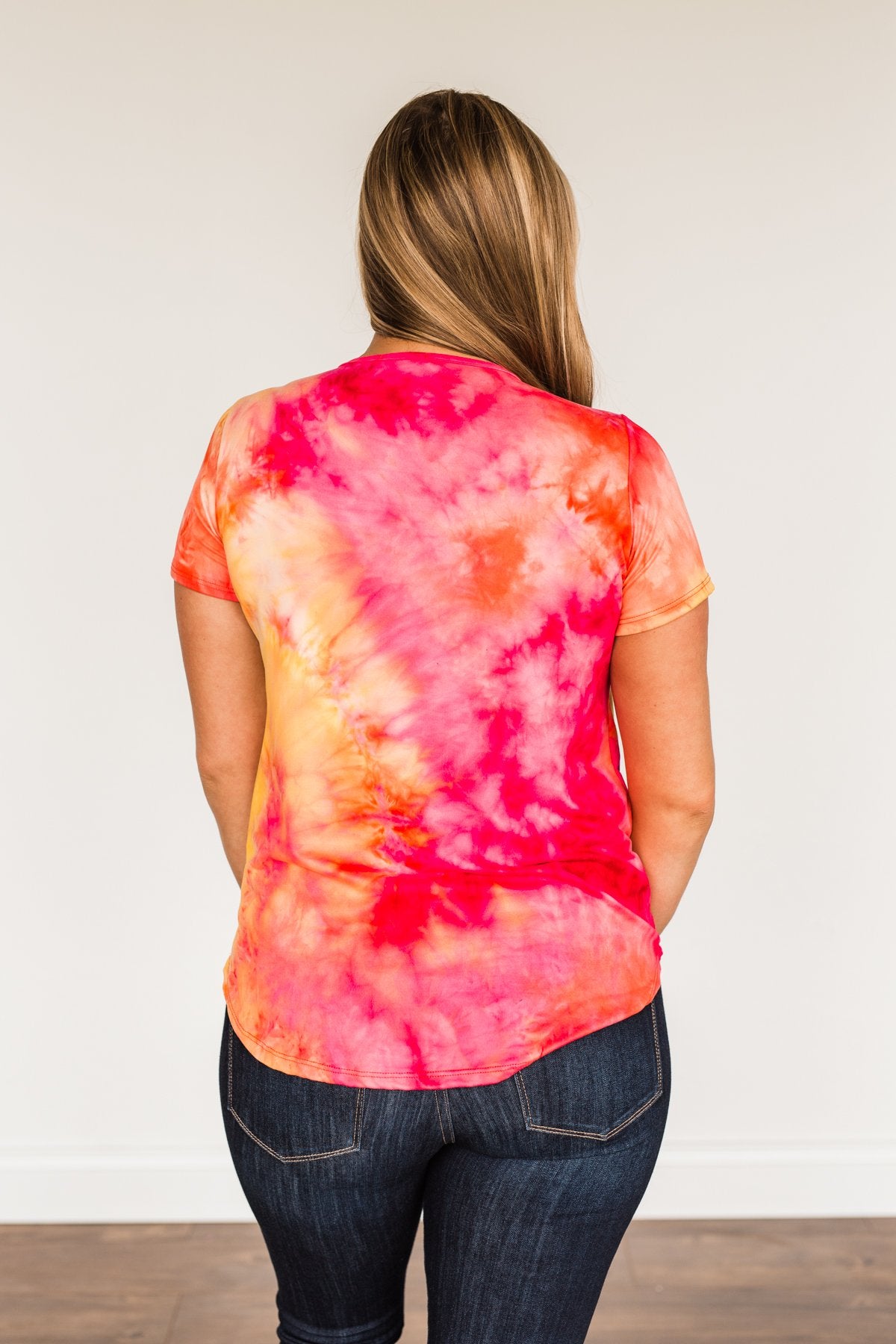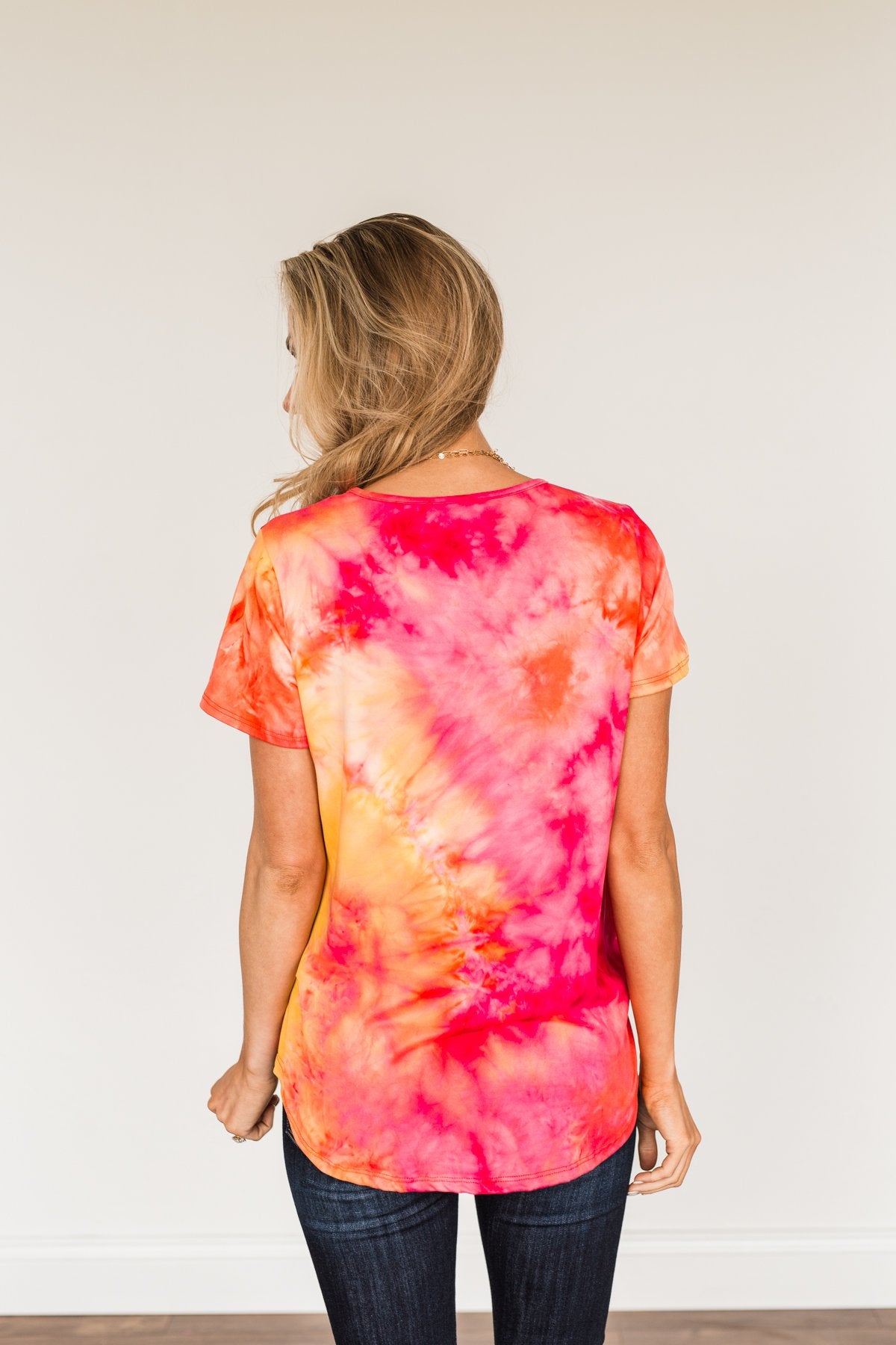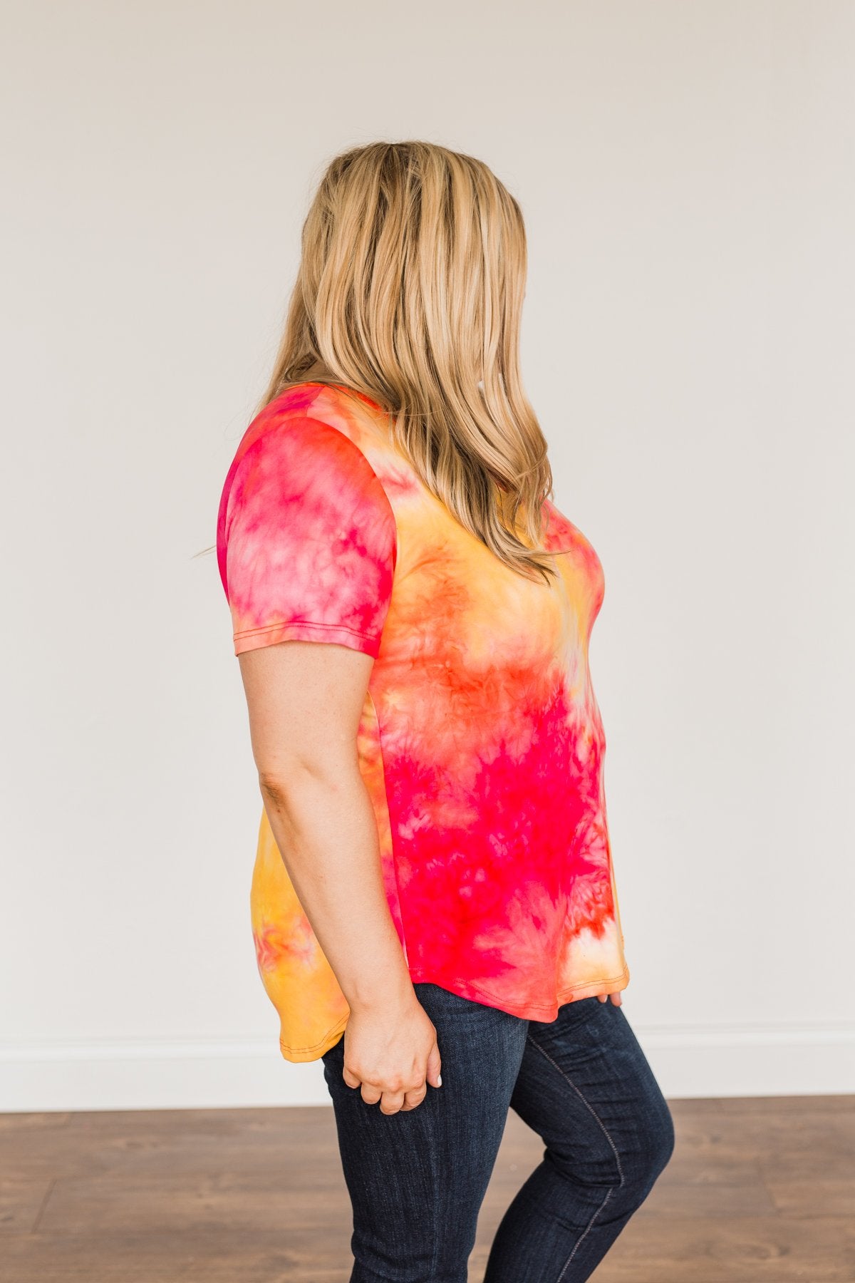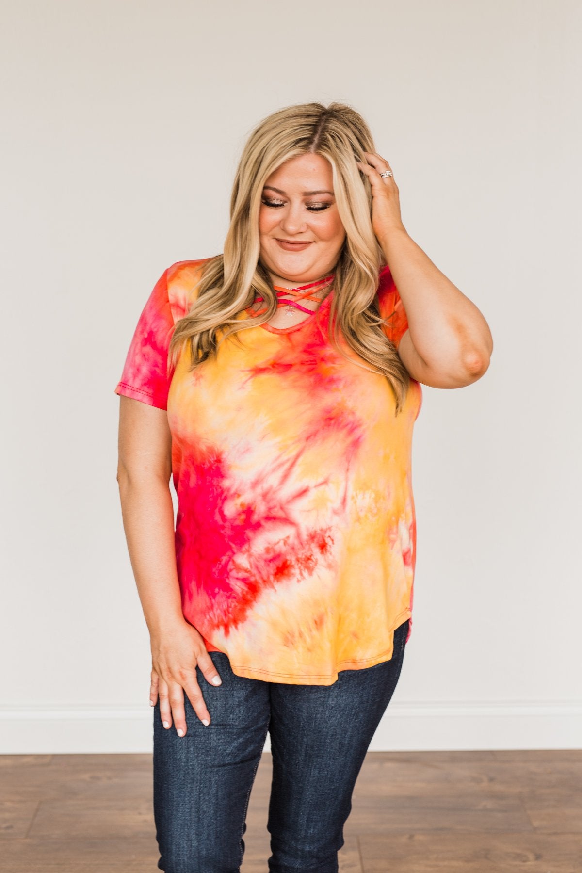 Find Your Fire Tie-Dye Top- Yellow, Orange & Fuchsia