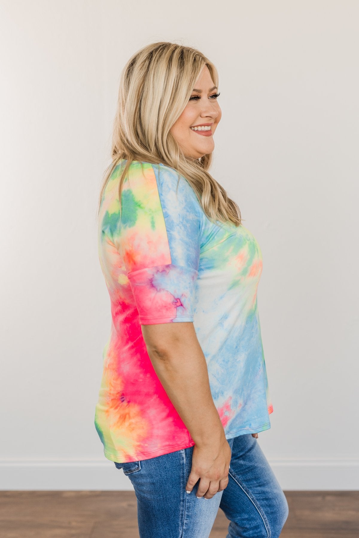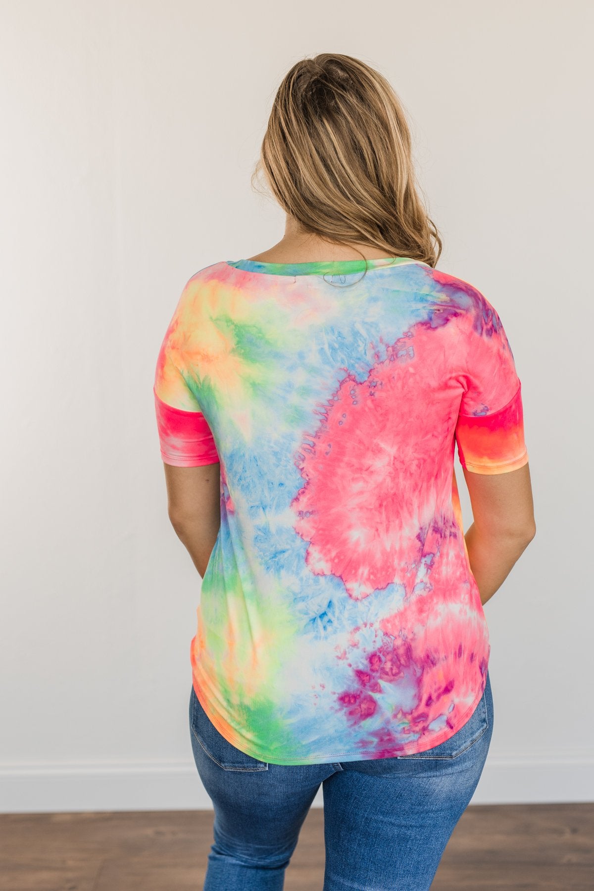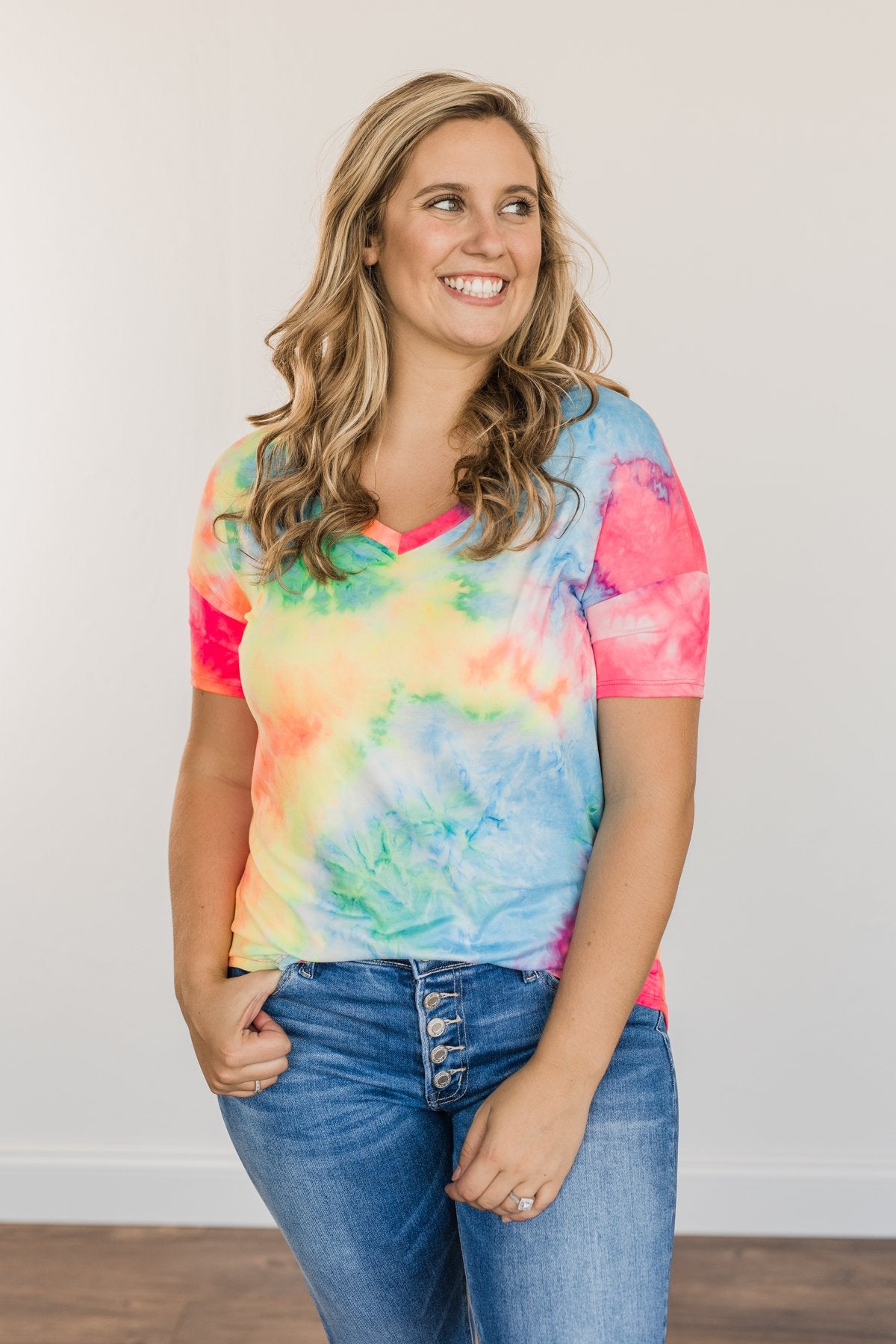 Fun Under The Sun Tie Dye Top- Neon Pink, Blue & Yellow