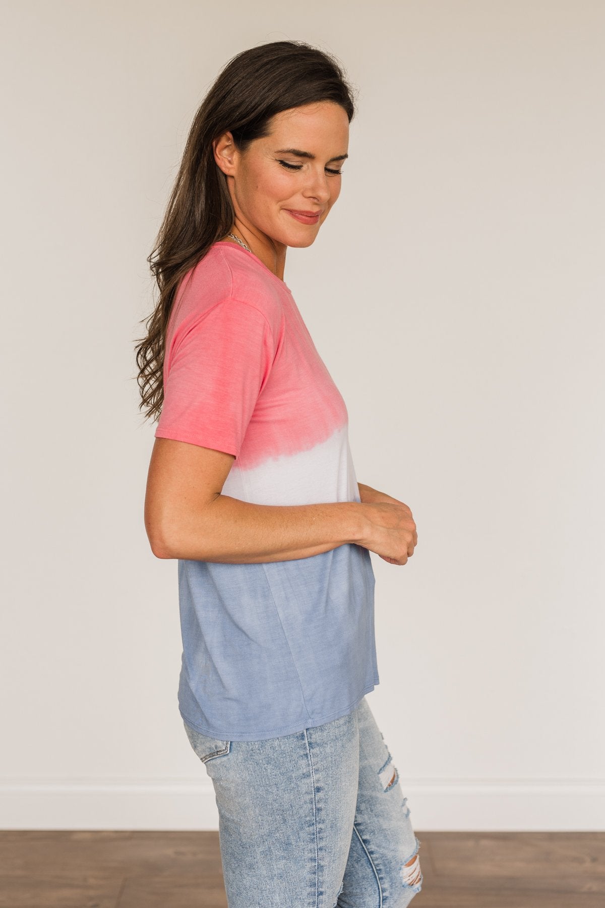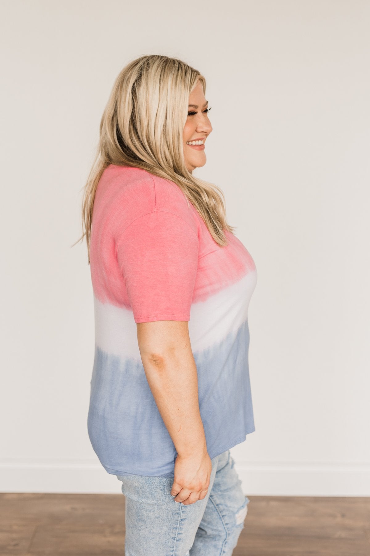 Stock up on sweet and simple pieces like this tie-dye, color block top! This piece keeps it simple with details like the scoop neckline, lightweight material, and darling color block tie-dye pattern! Show off your Fourth of July spirit and pair this with your favorite shorts for the season, or wear this top year round for a cute and comfy look!