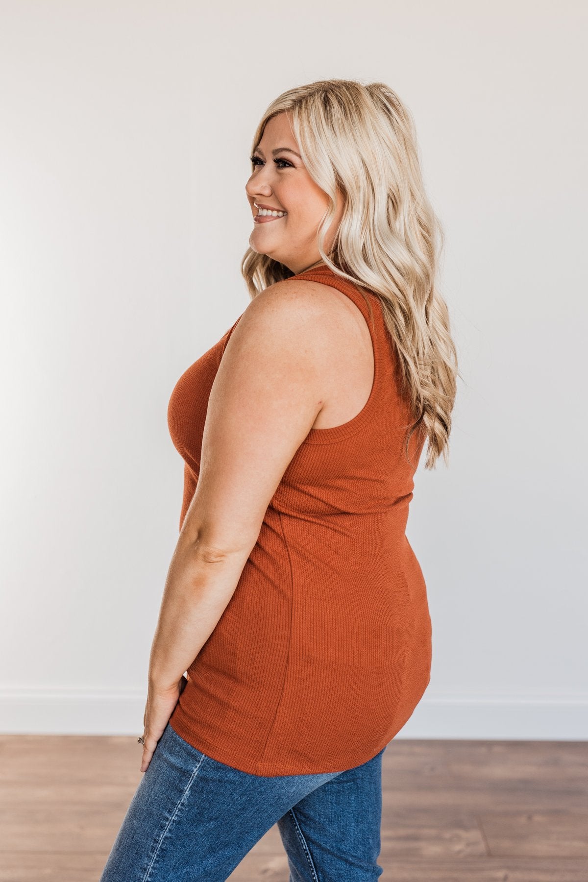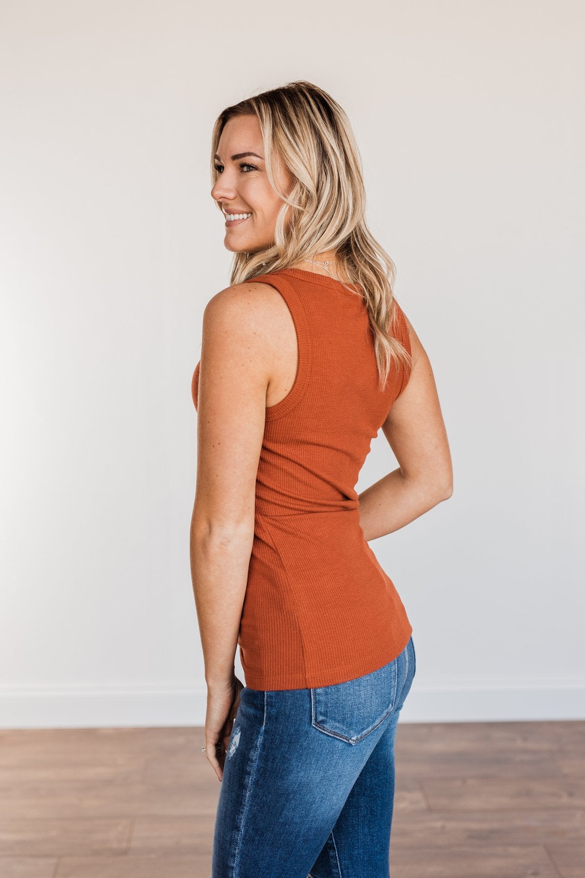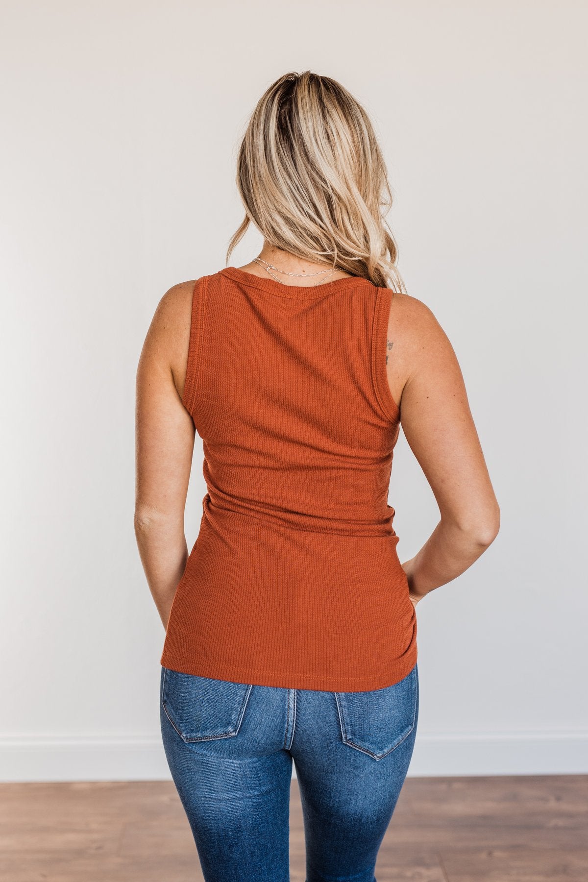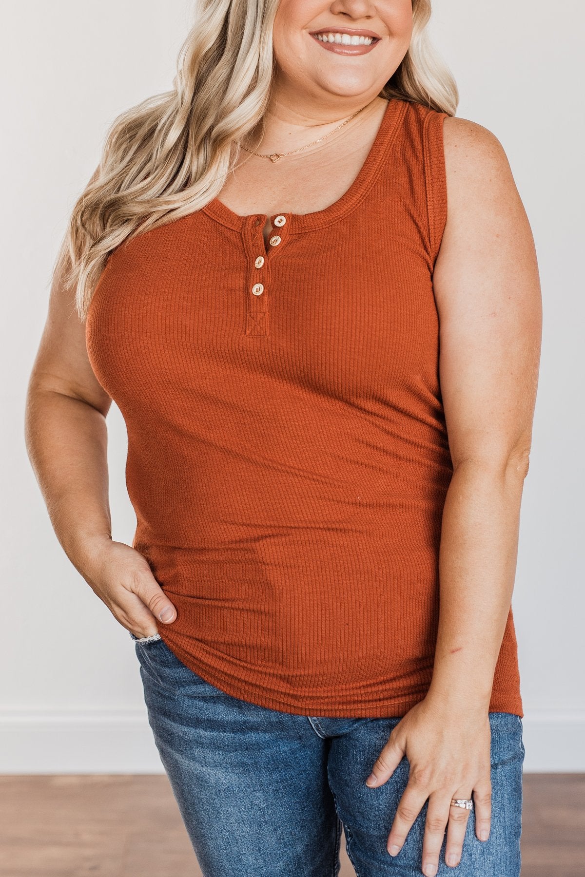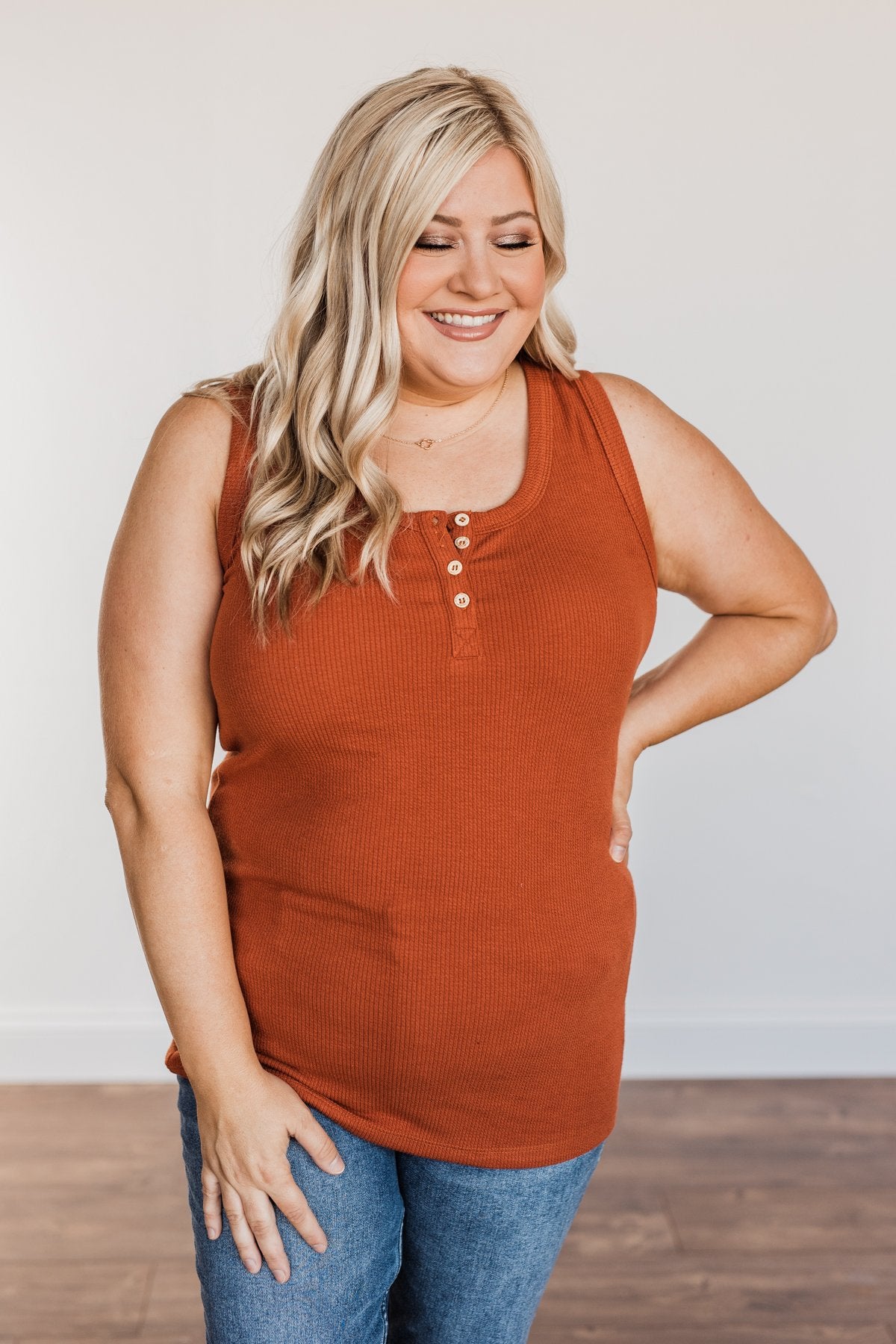 Everyone needs a good tank to wear under all your favorite chilly weather clothes! Wear this underneath your favorite cardigan, button down, or flannel for some fabulous Fall style! With details like thick seams on the shoulders, henley button front and ribbed knit material you'll be reaching for this piece every chance you get!
