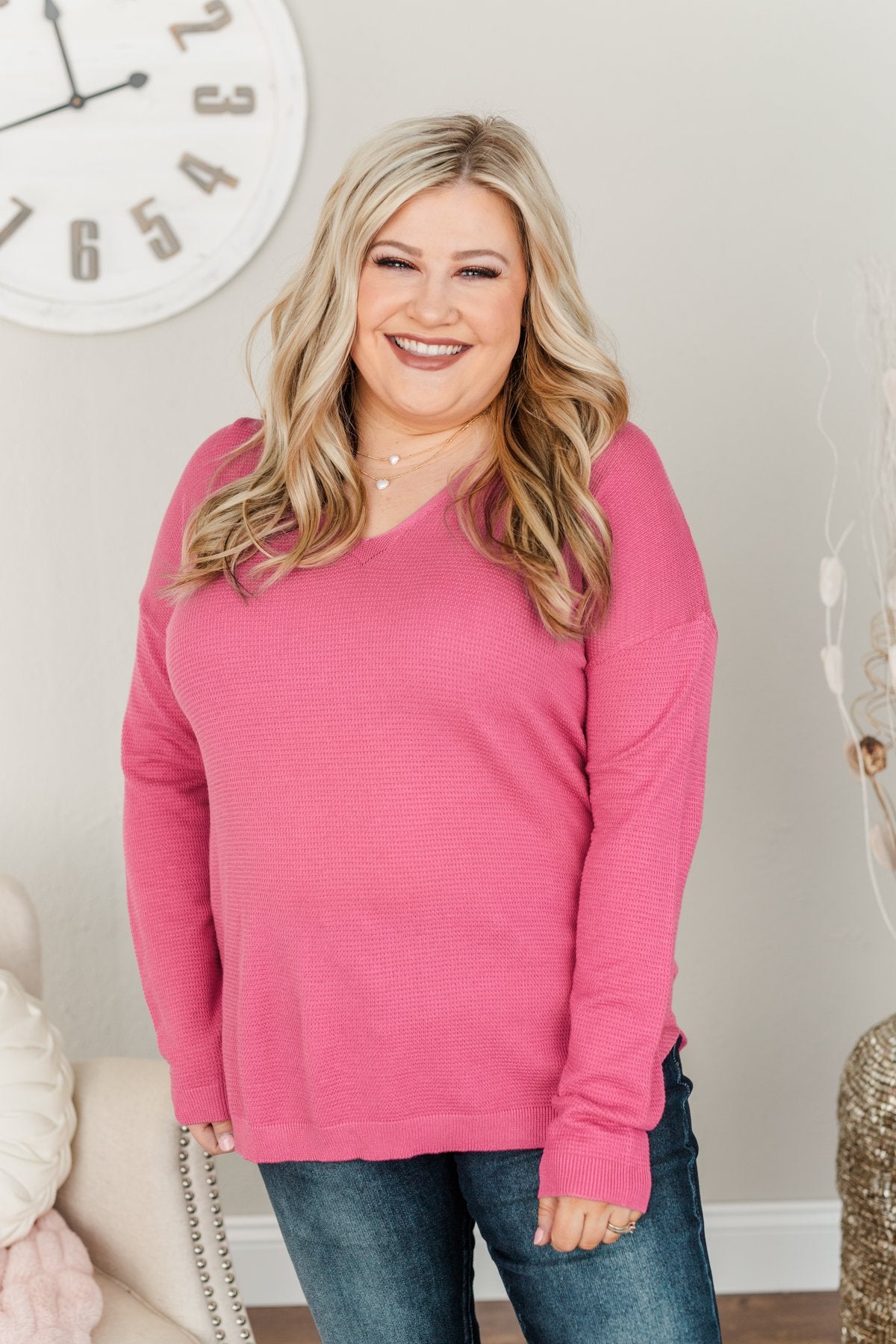 Life In Full Bloom V-Neck Knit Top- Bubblegum Pink