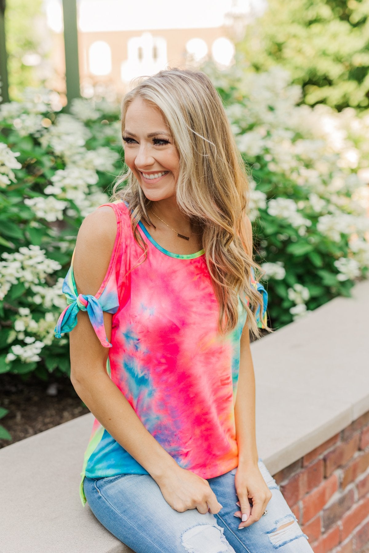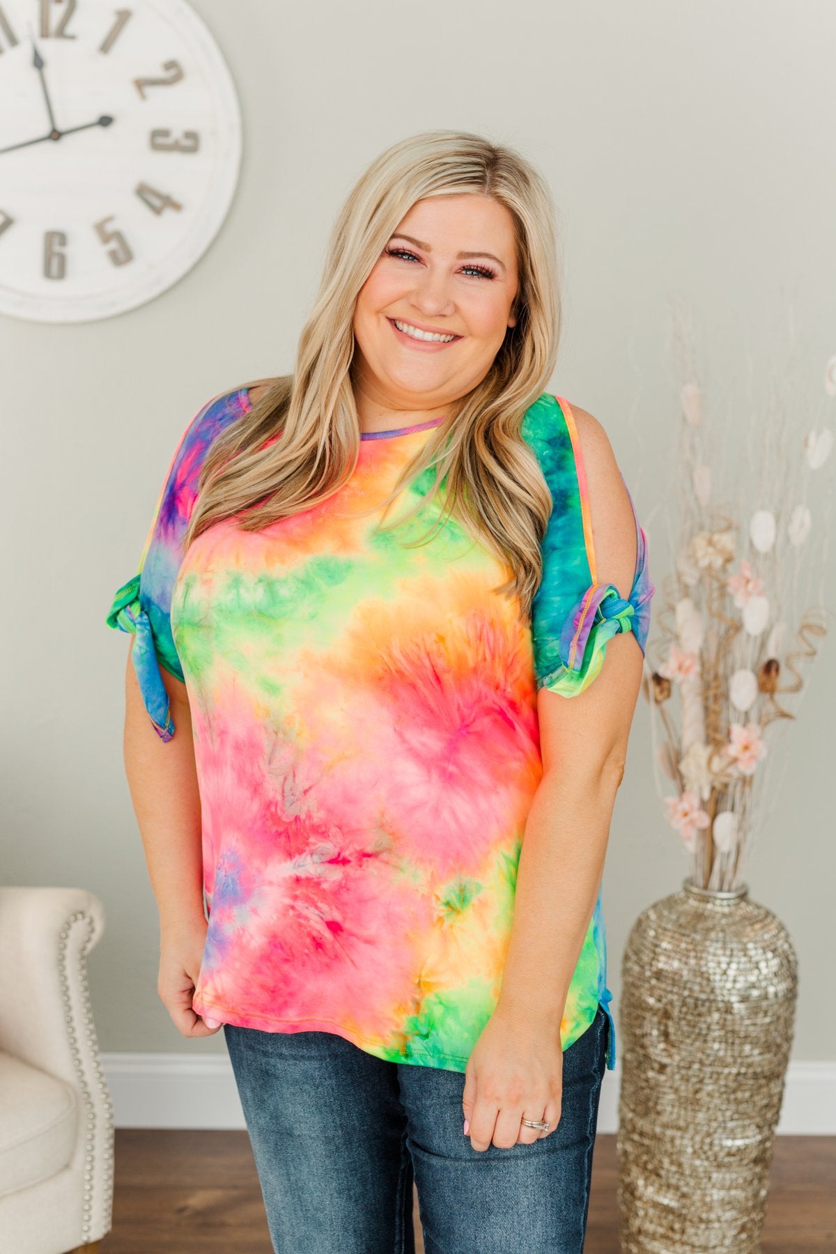 Look On The Bright Side Tie Dye Top- Neon Multi-Color