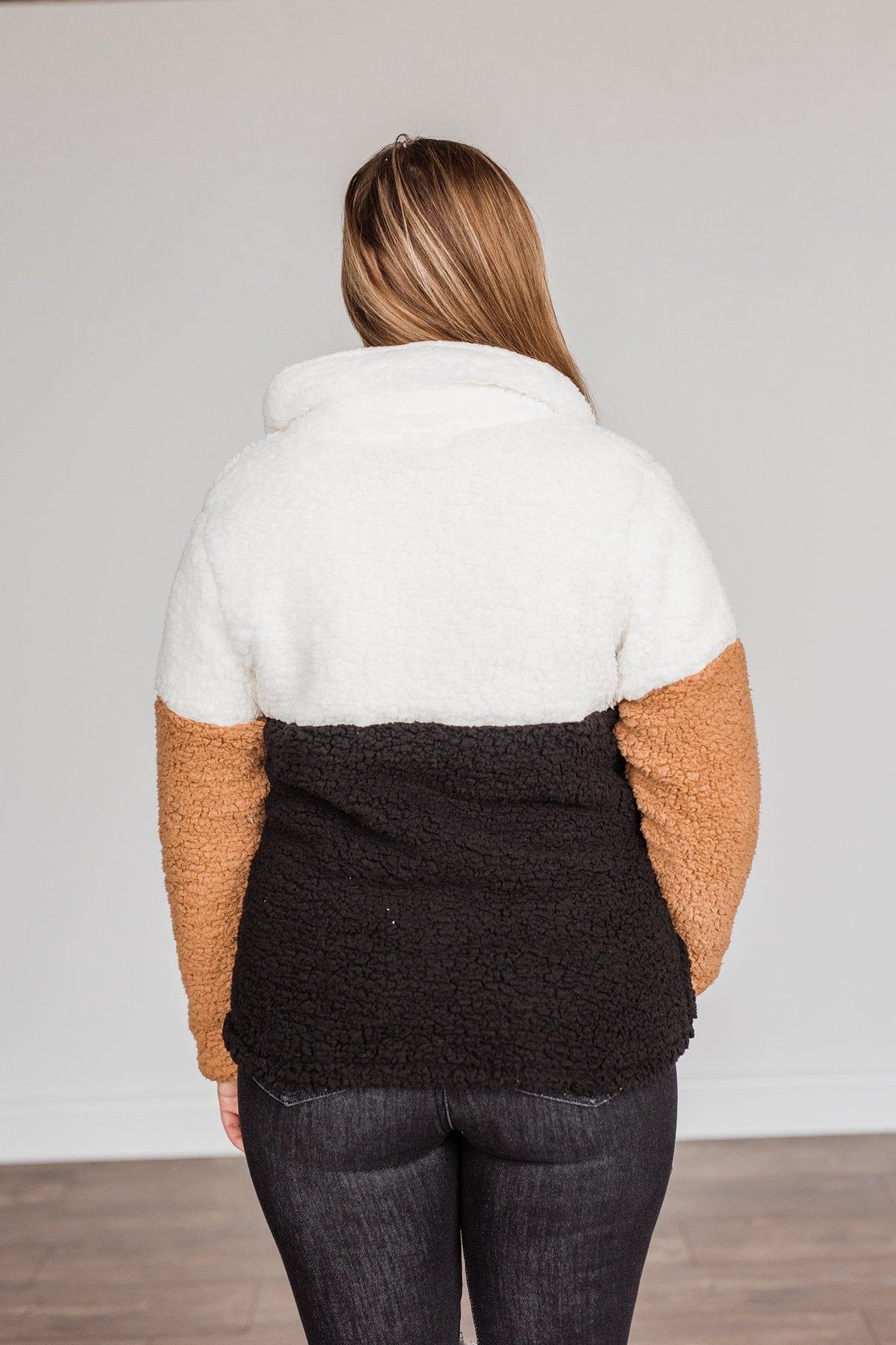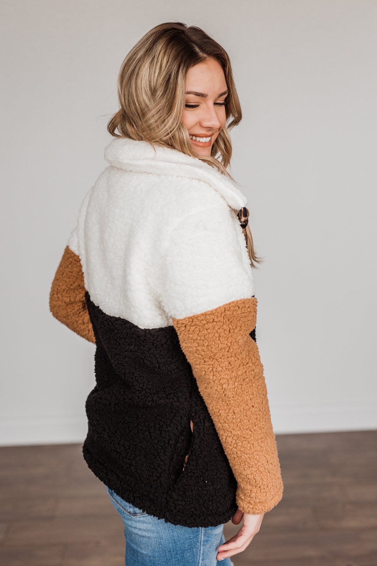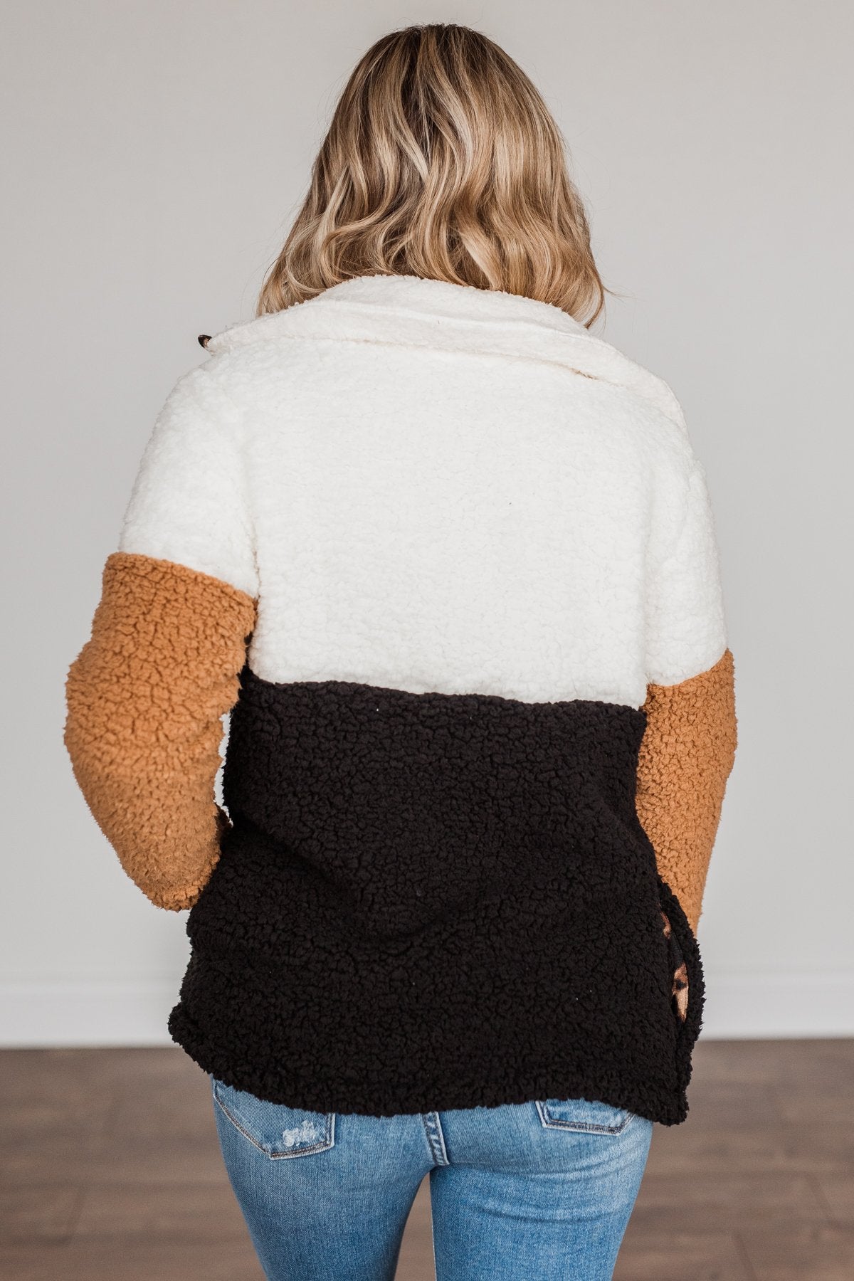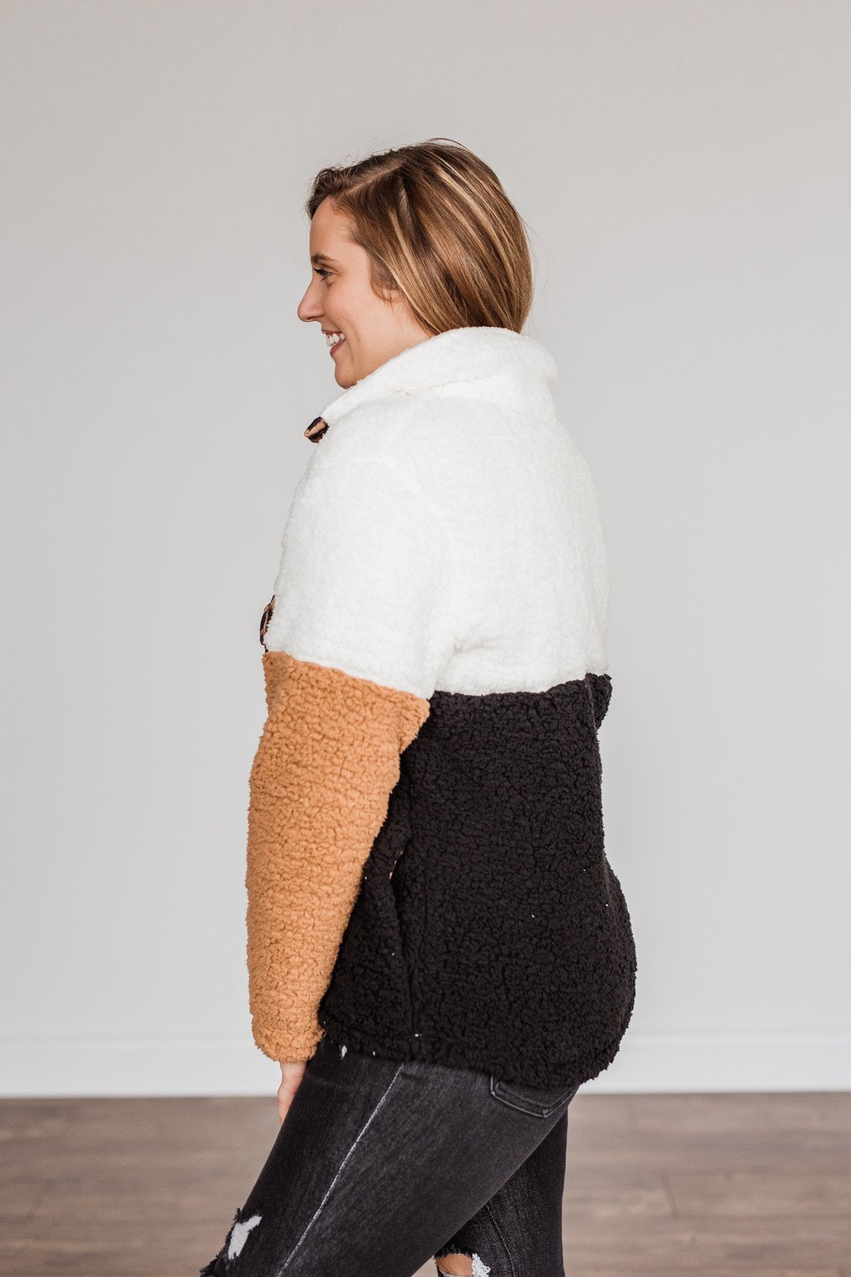 Looking Feisty Button Up Sherpa- Ivory & Camel