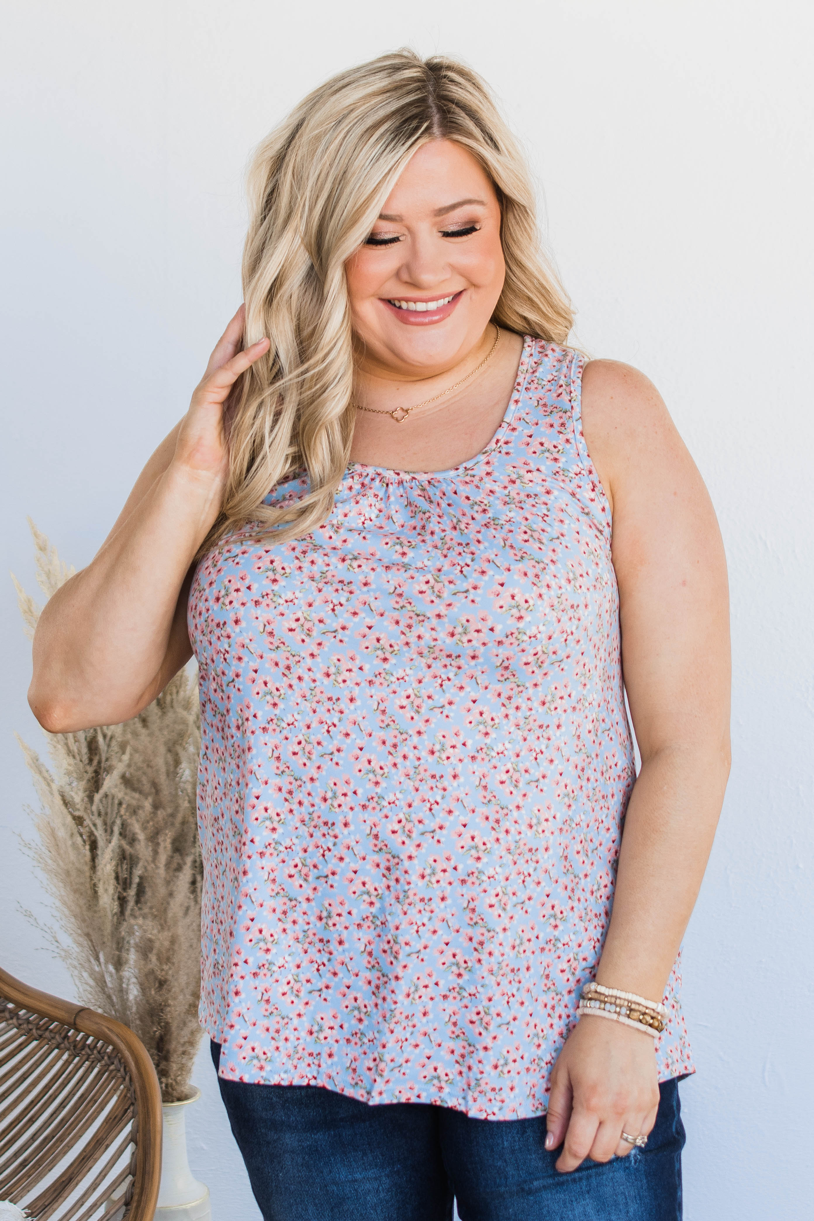 Making Daisy Chains Floral Tank Top- Baby Blue