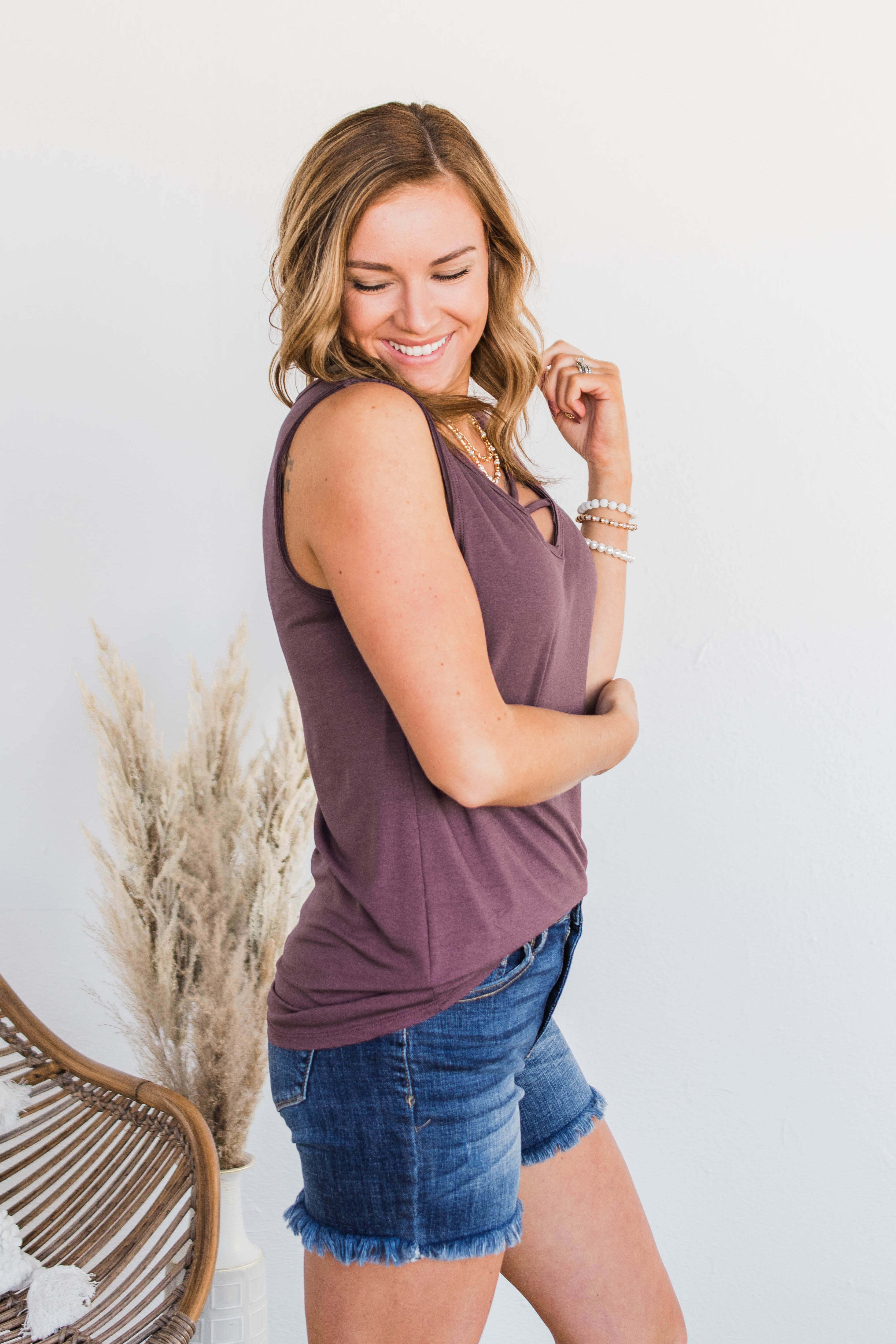 Add some life to your day-to-day looks with this colorful tank top! You’ll liven up any room with details like the raw seam style and criss-cross neckline! Wear this under a cardigan for a fun, everyday look or wear it as a stand alone piece on your next vacation!