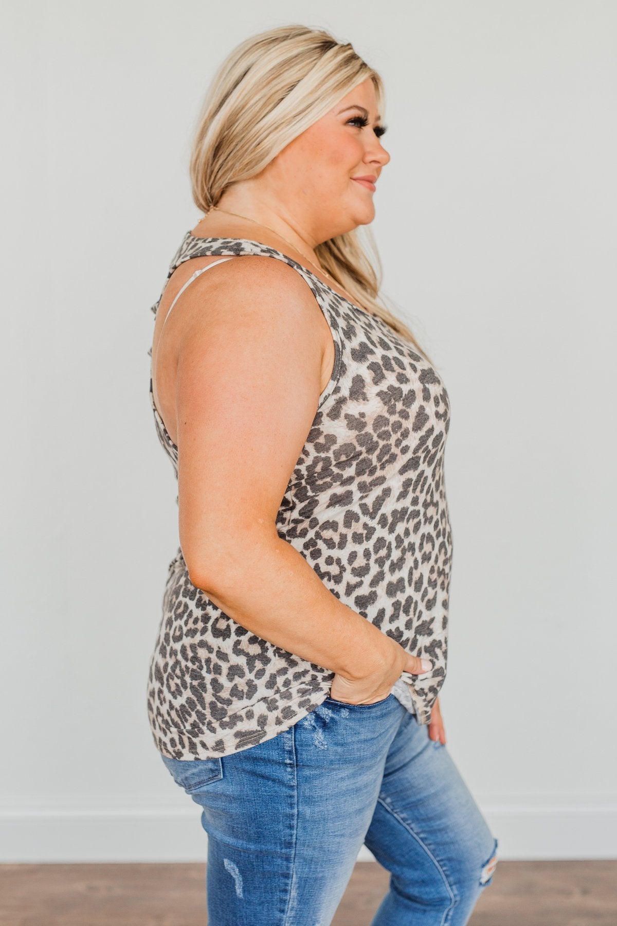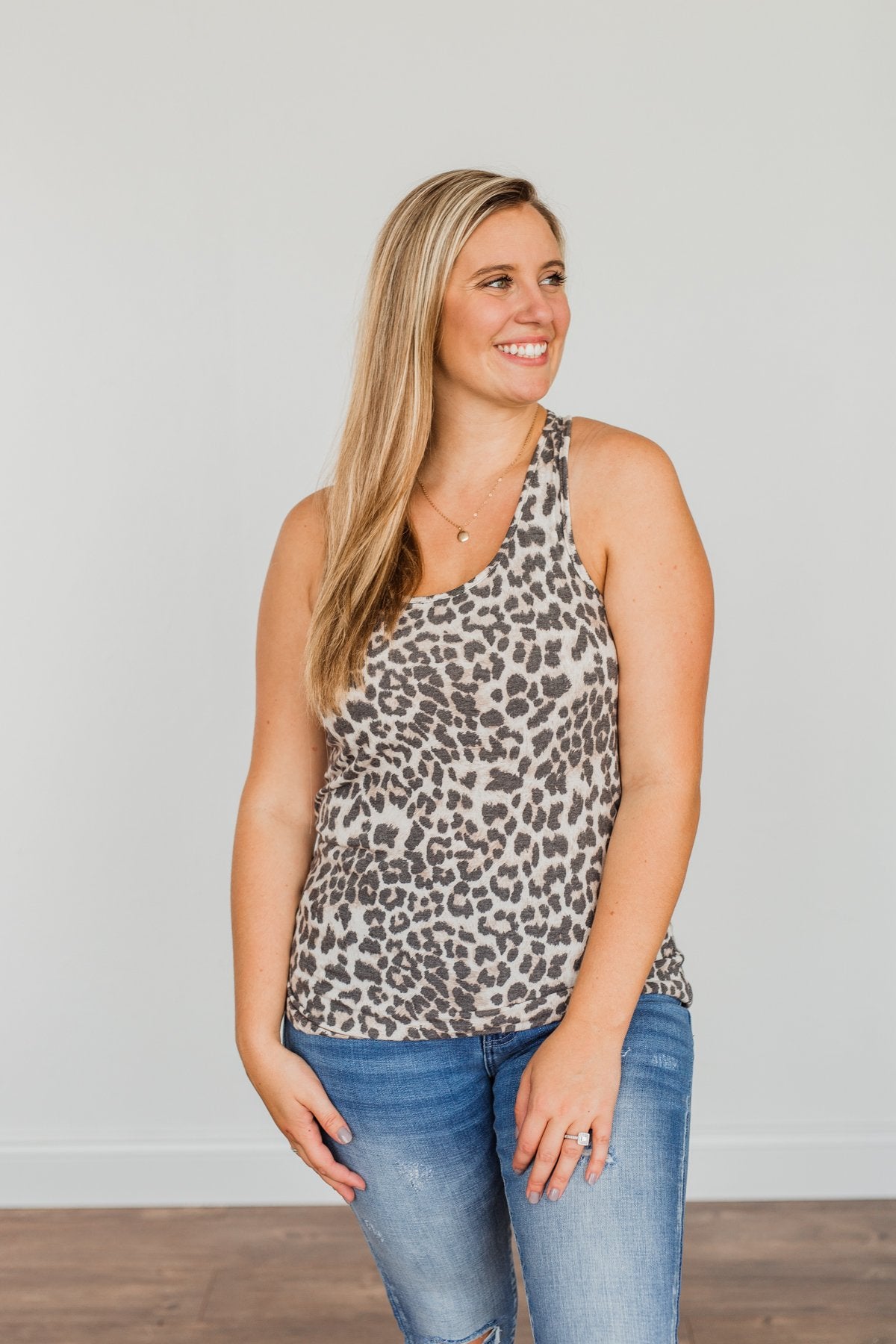 You'll have the adventure of a lifetime whenever you're in this stunning tank top! The neutral leopard print and back strap details featured on this tank are the perfect way to show off your sweet and sassy self! Grab this wildly adorable tank for an easy and effortless way to start your day!