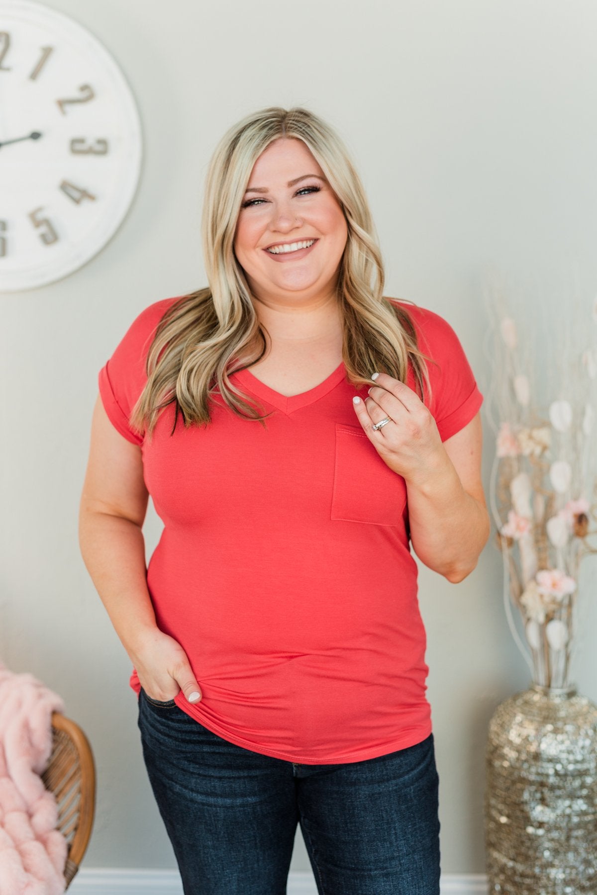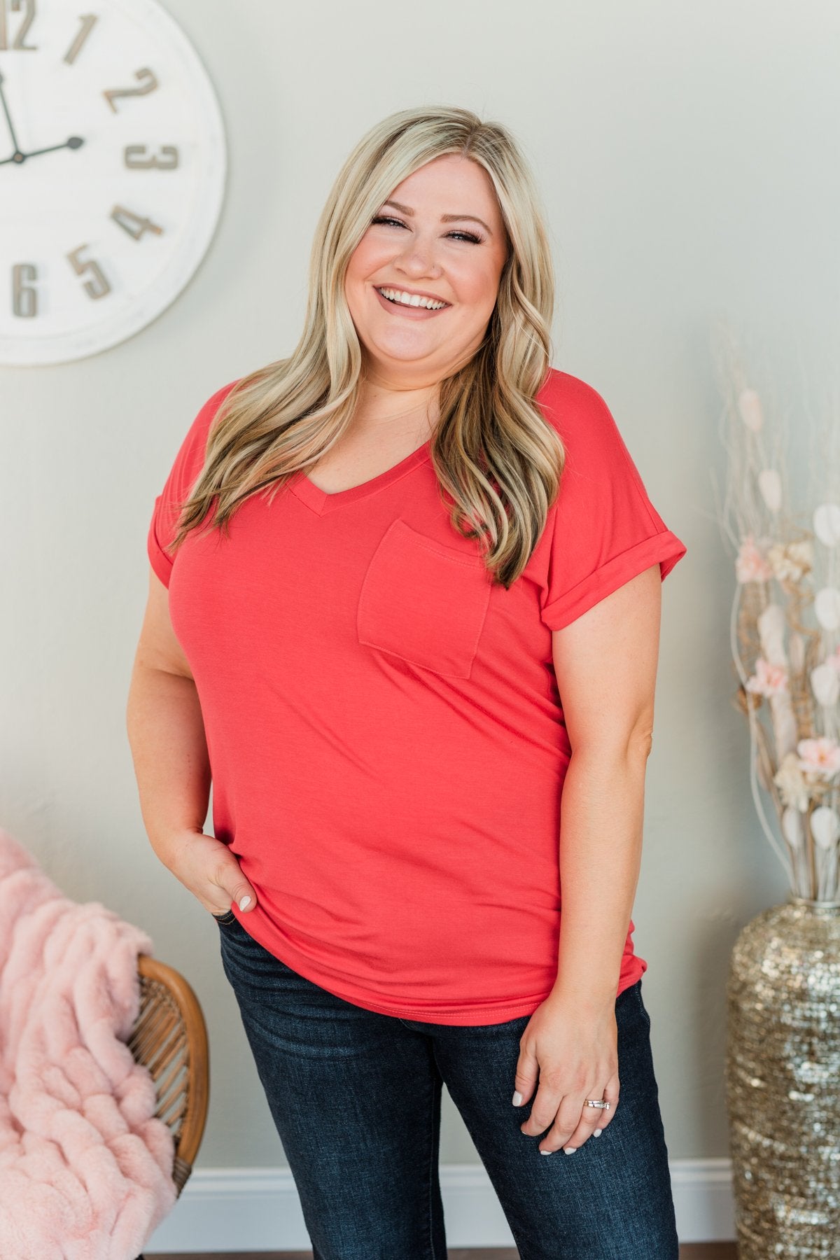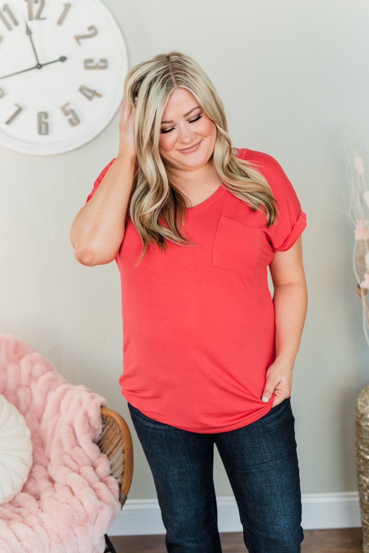 Get back to the basics with this classic pocket top! With sweet details like the cuffed sleeves and chest pocket, this shirt is the perfect year-round staple! This bright colored top is the perfect way to add some smiles to your day! Style it however you desire by dressing it up for a nice night out or wear it casually for day-to-day errands!