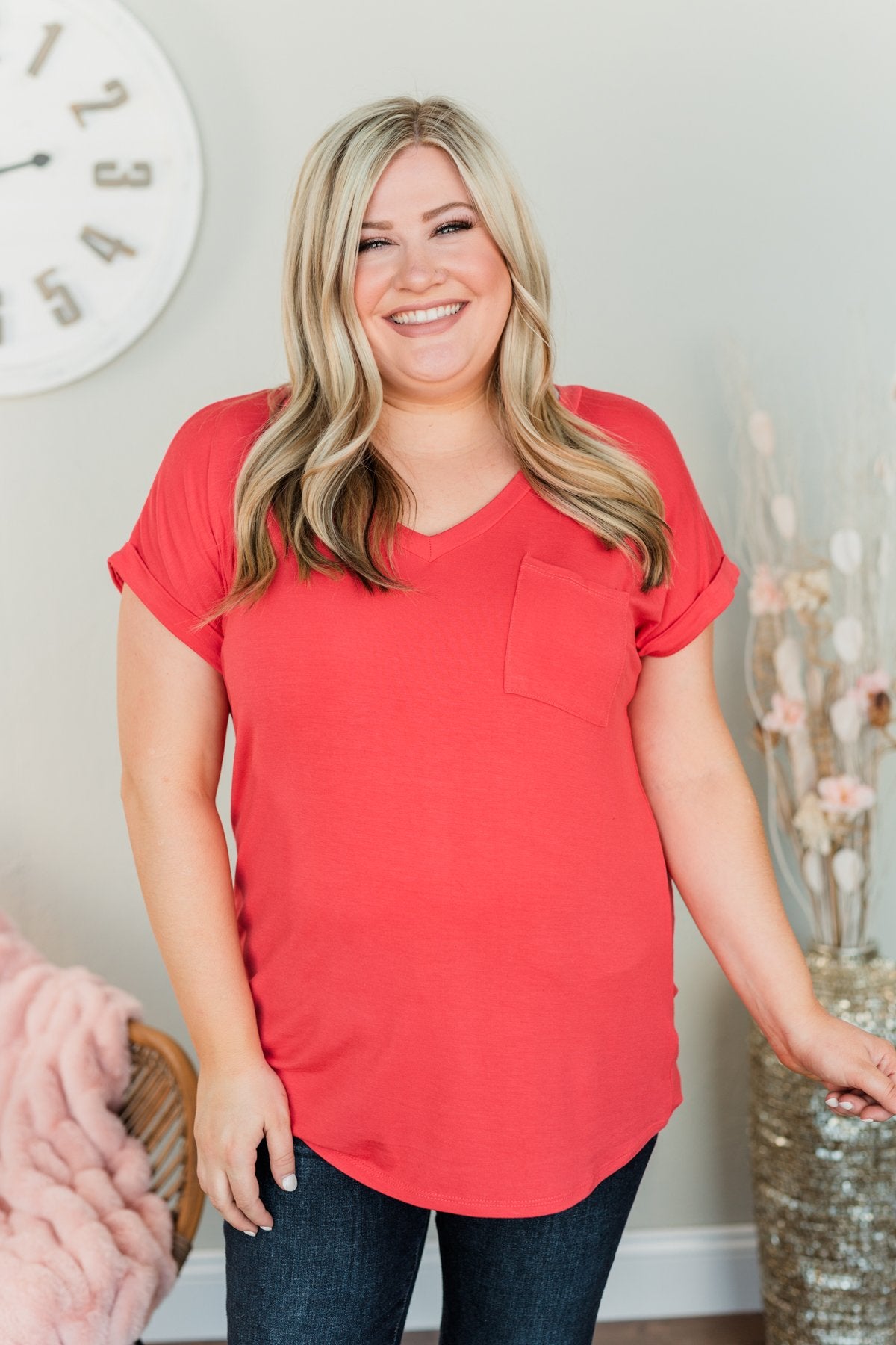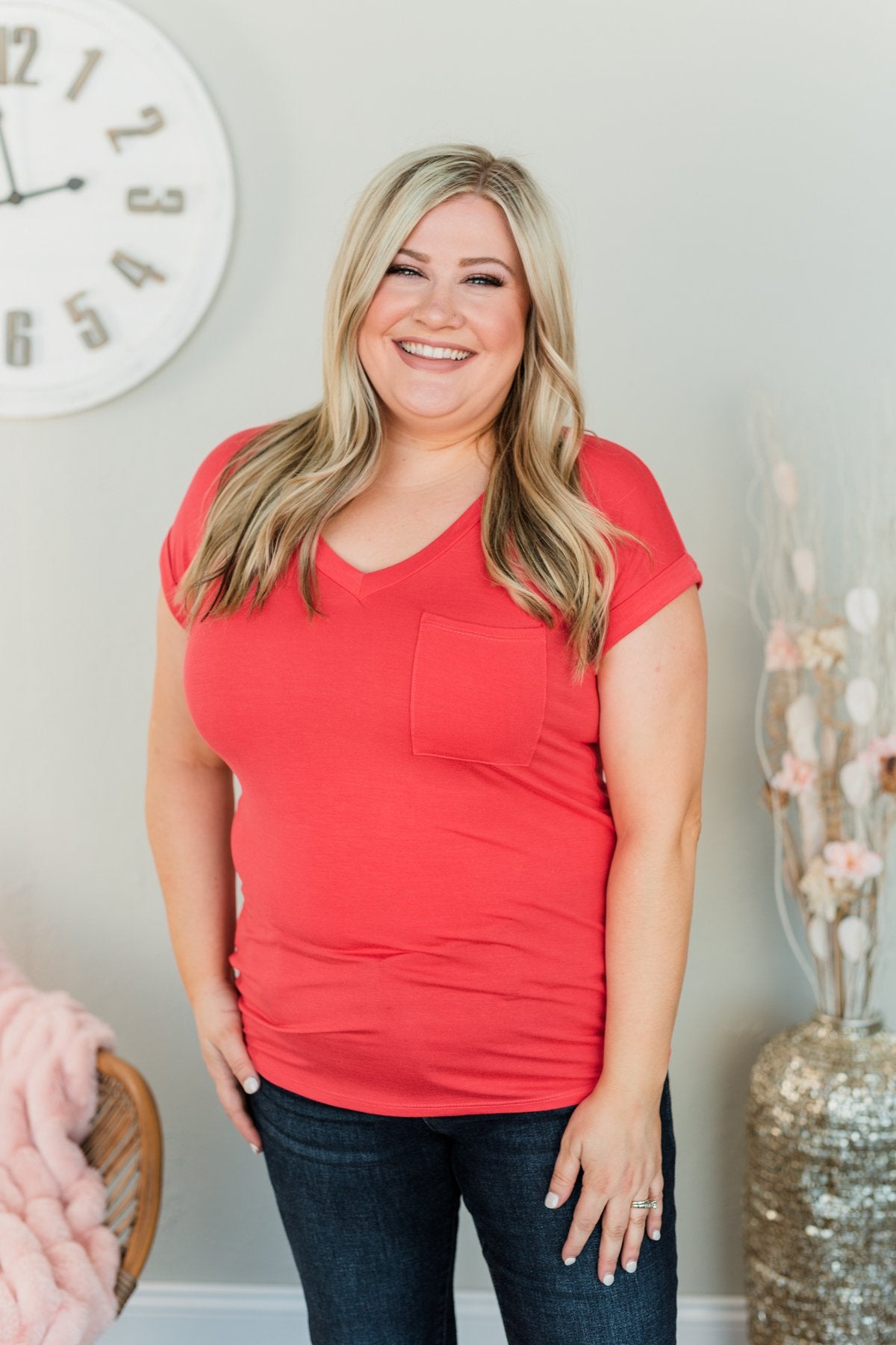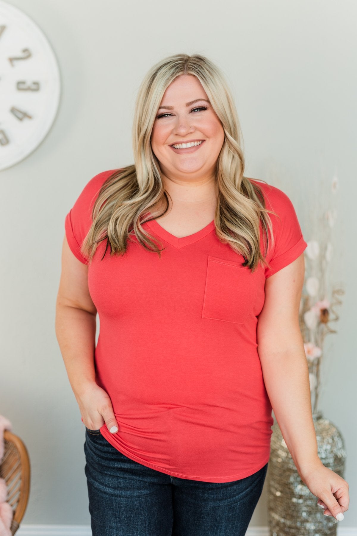Get back to the basics with this classic pocket top! With sweet details like the cuffed sleeves and chest pocket, this shirt is the perfect year-round staple! This bright colored top is the perfect way to add some smiles to your day! Style it however you desire by dressing it up for a nice night out or wear it casually for day-to-day errands!