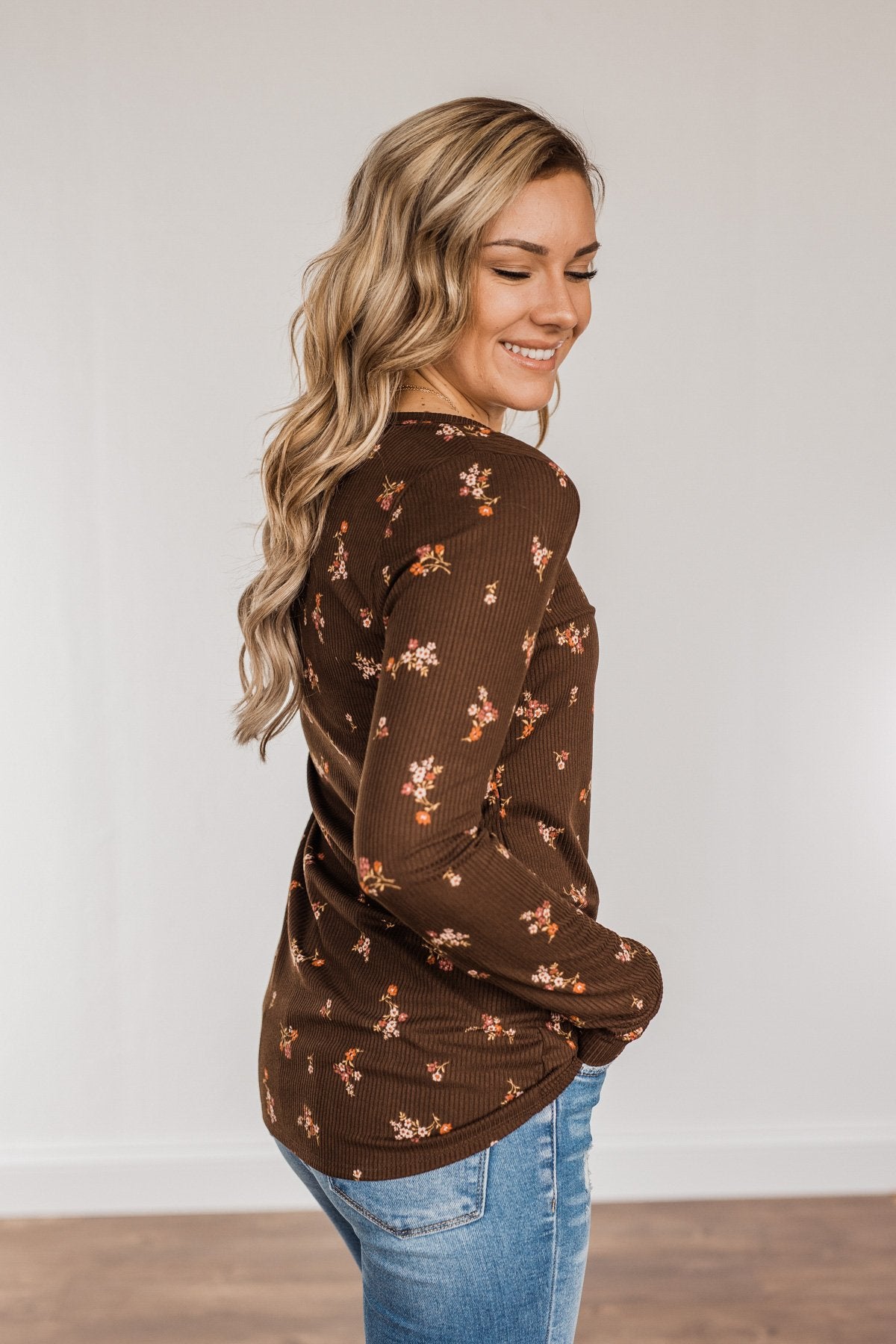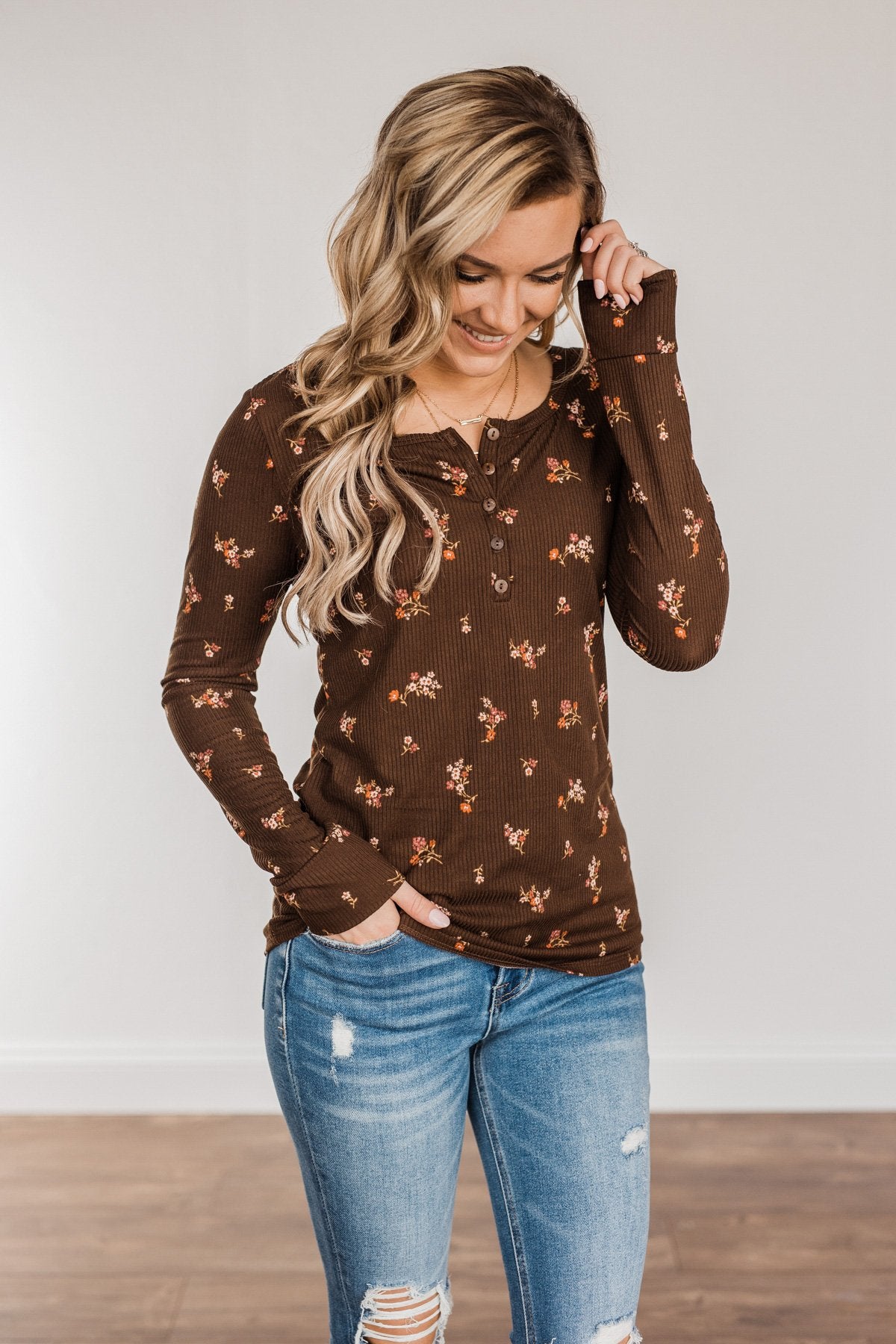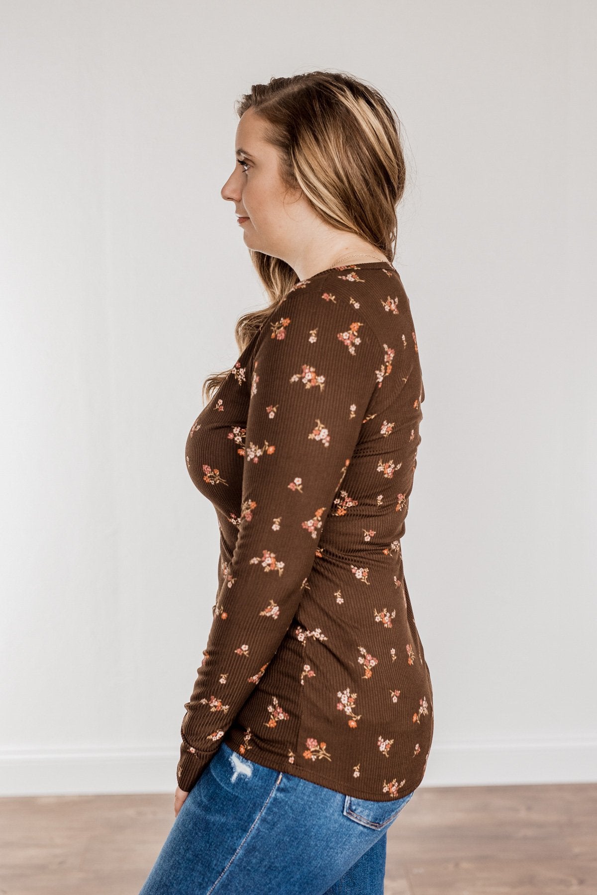 Take charge of your day by making your morning routine a breeze with pieces like this floral top! You’ll be delighted by the details such as the button neckline, the sweet floral print, and the lightweight ribbed knit material that’s ideal for layering under a cardigan or jacket!