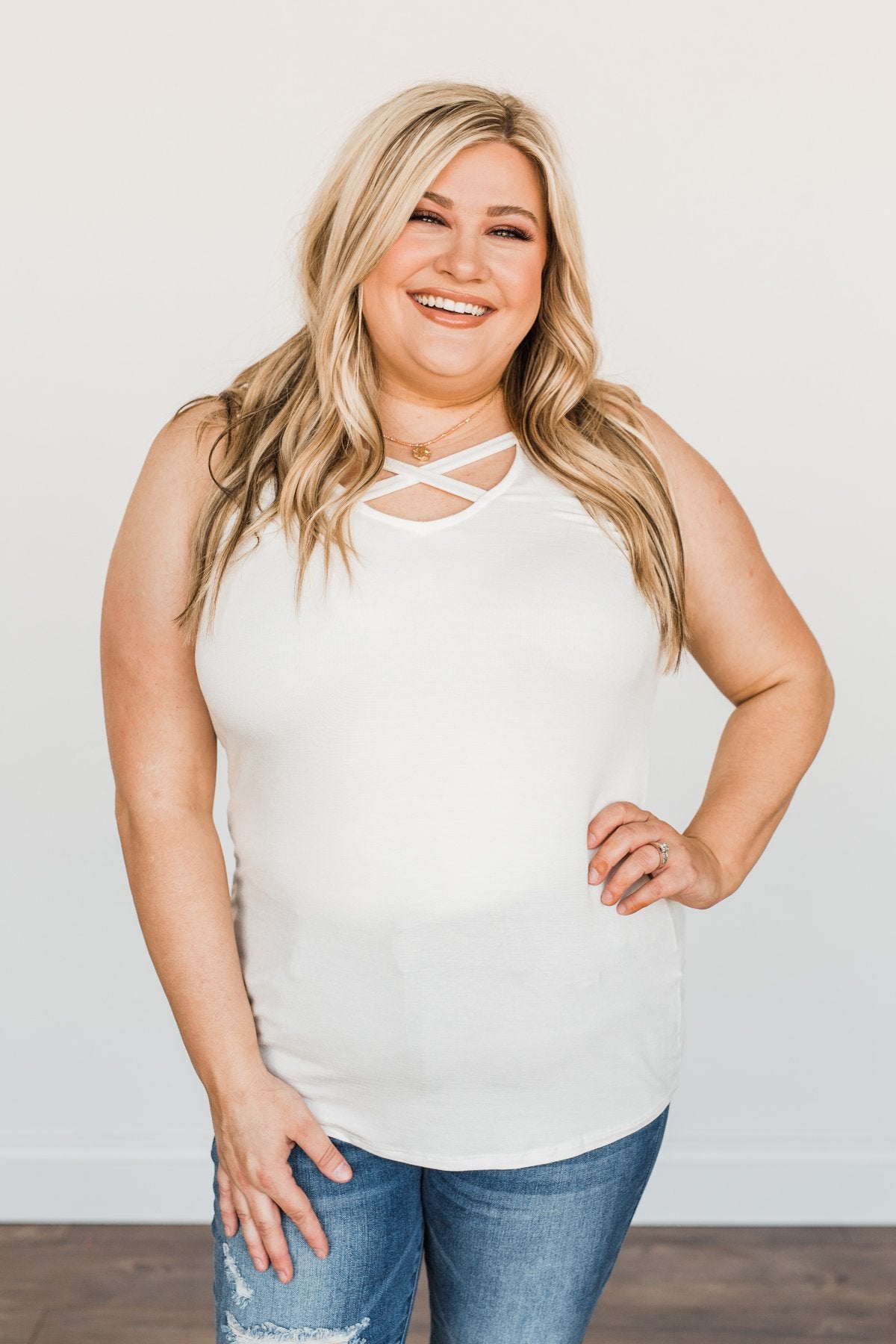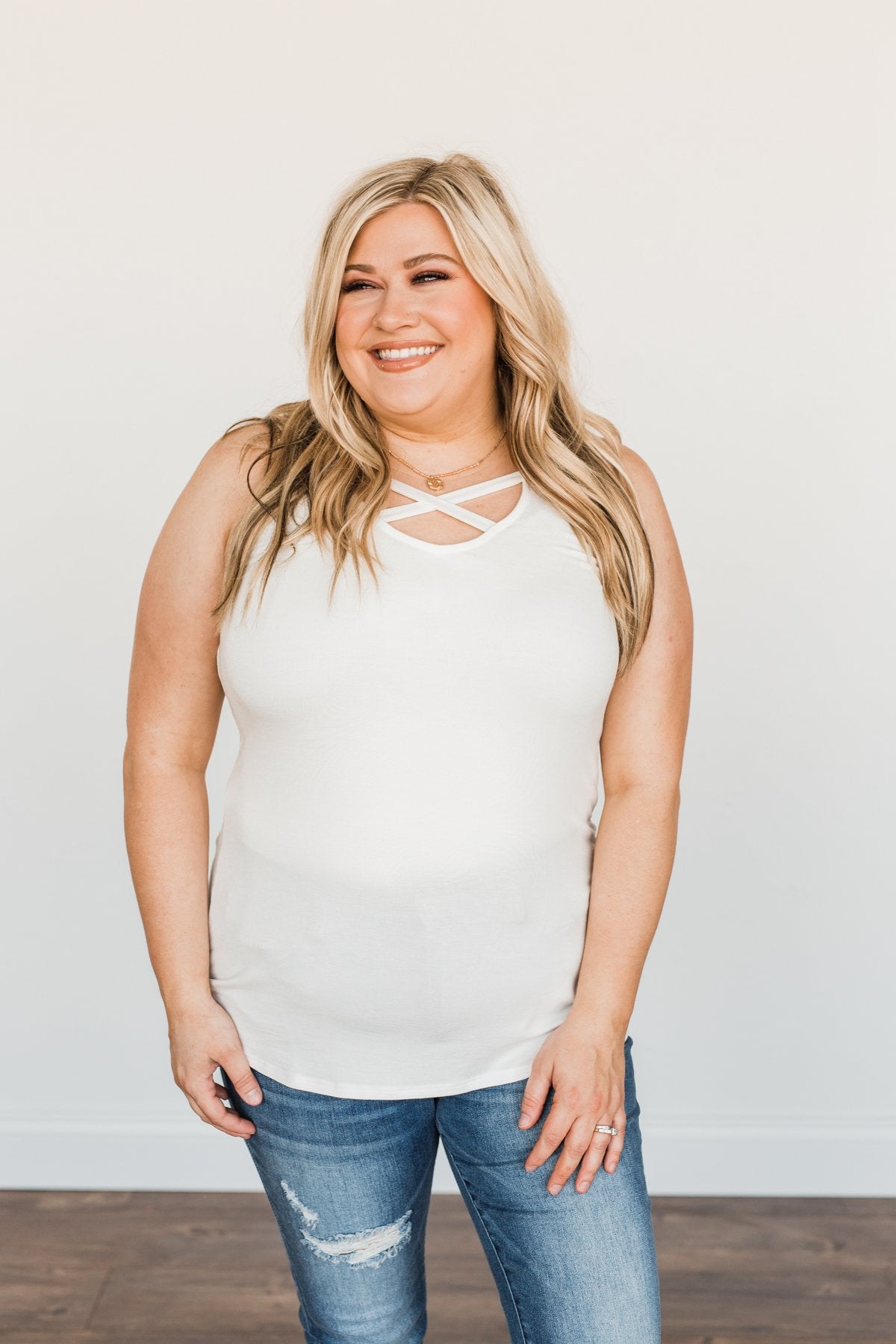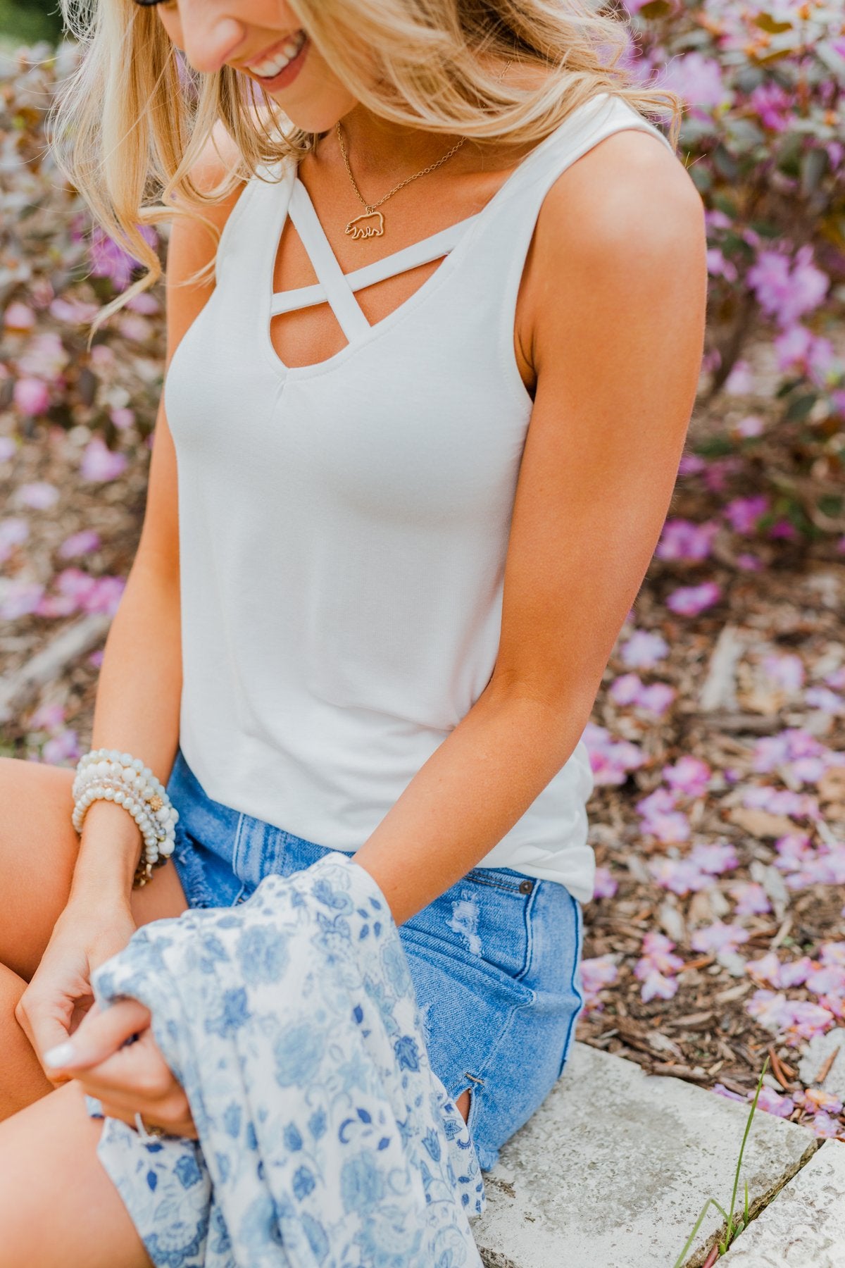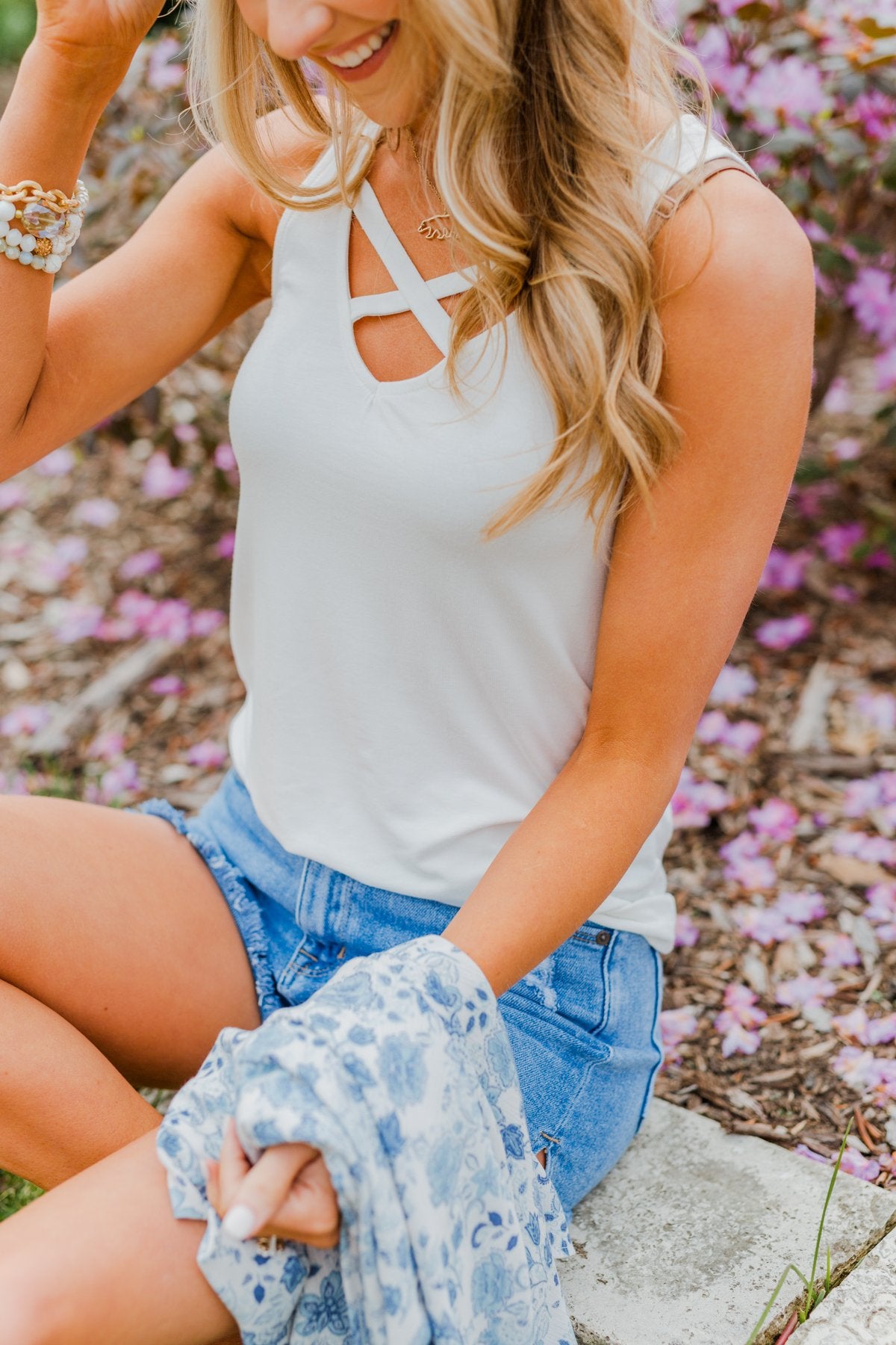 Step into the new season with this cute and casual tank top! This super soft, lightweight tank is an easy way to add some simple style to your day! Featuring a sweet criss-cross neckline that gives this tank the perfect amount of eye-catching appeal!