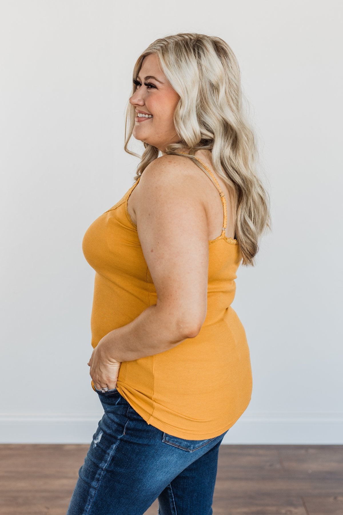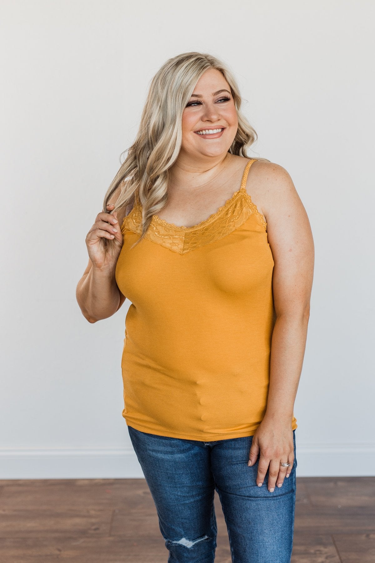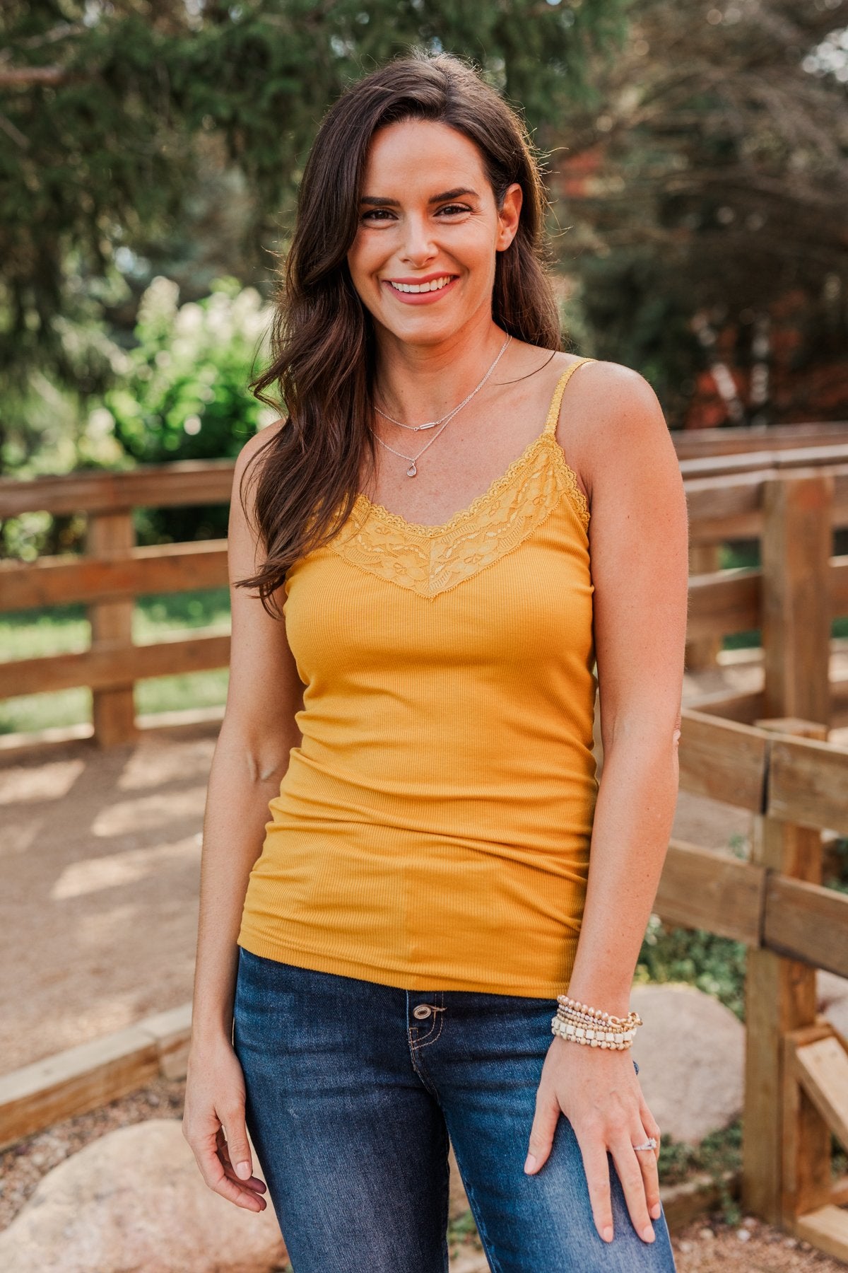 Pulse Basics Lace Trimmed Tank Top- Mustard