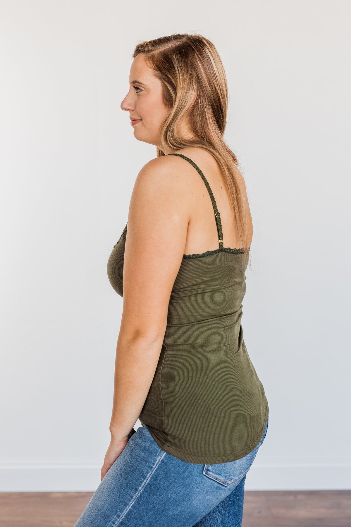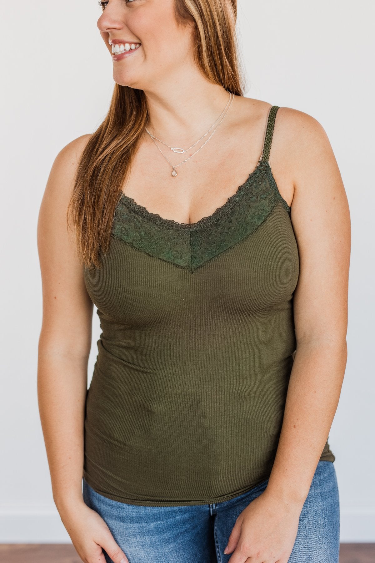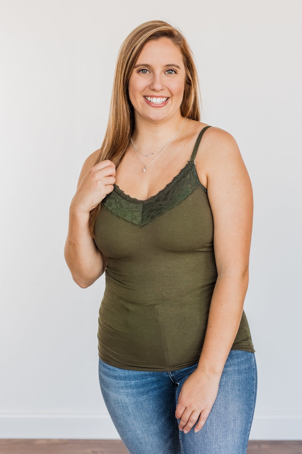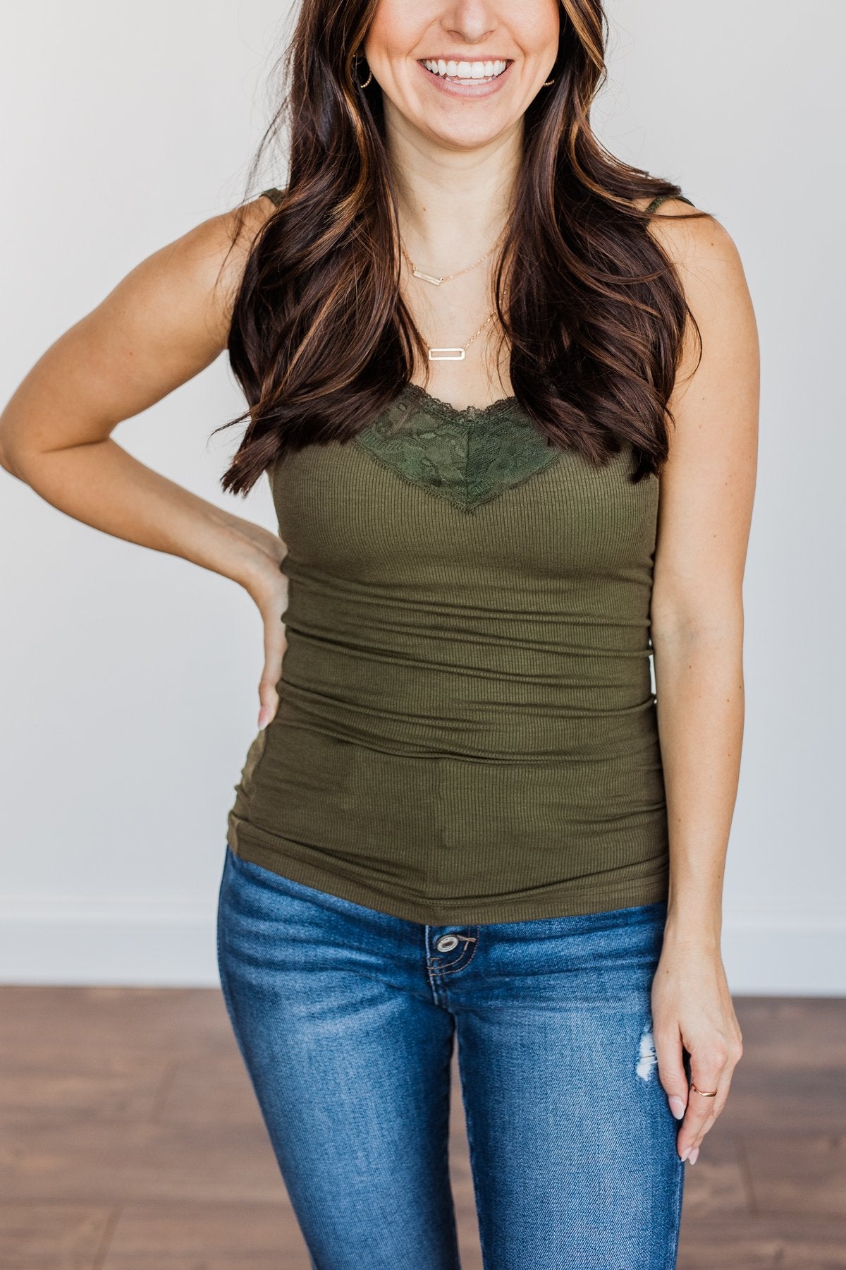 Pulse Basics Lace Trimmed Tank Top- Olive