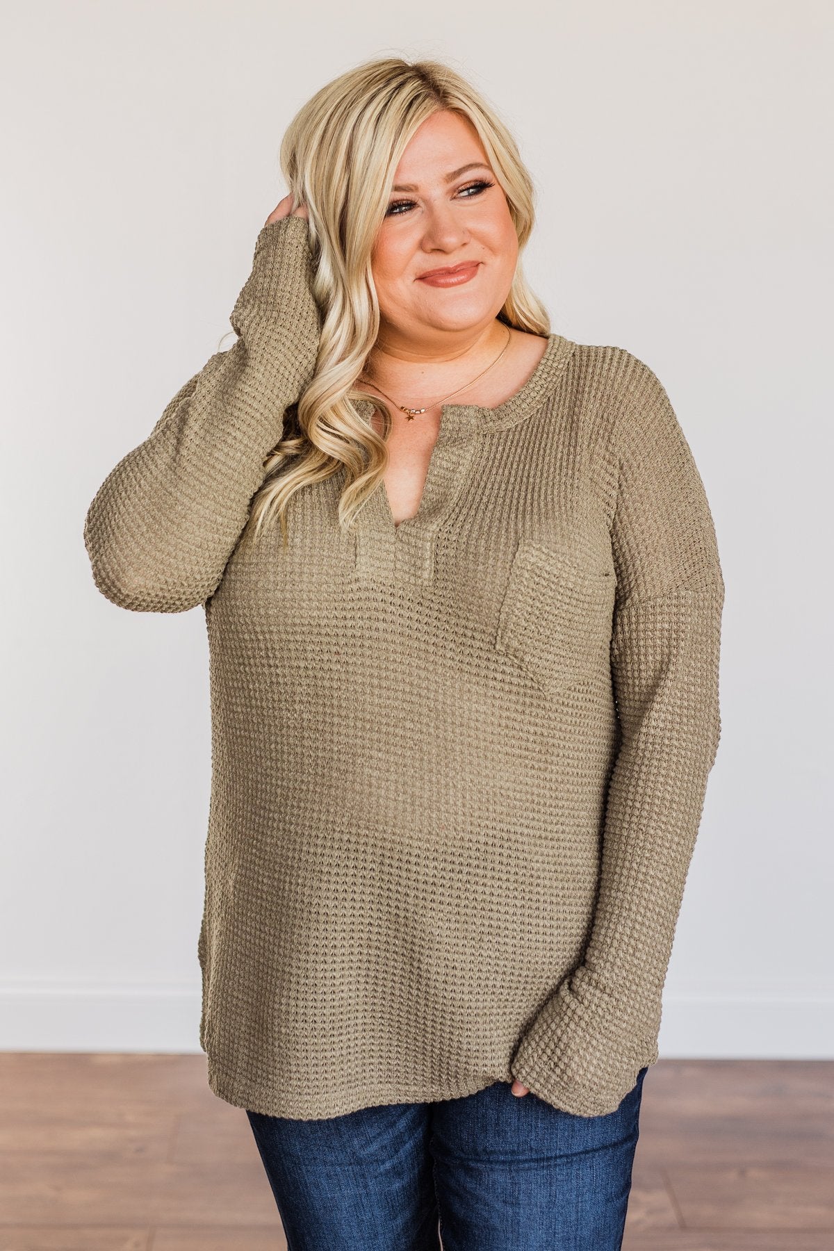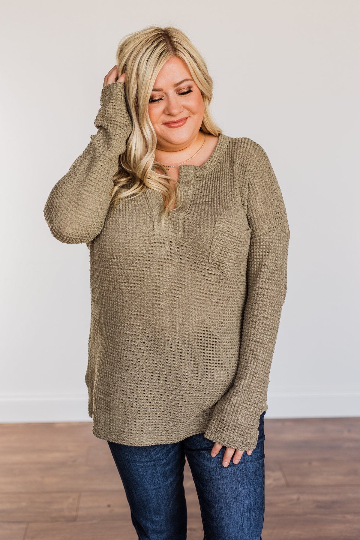 Ready For Whatever Waffle Knit Top- Dark Olive