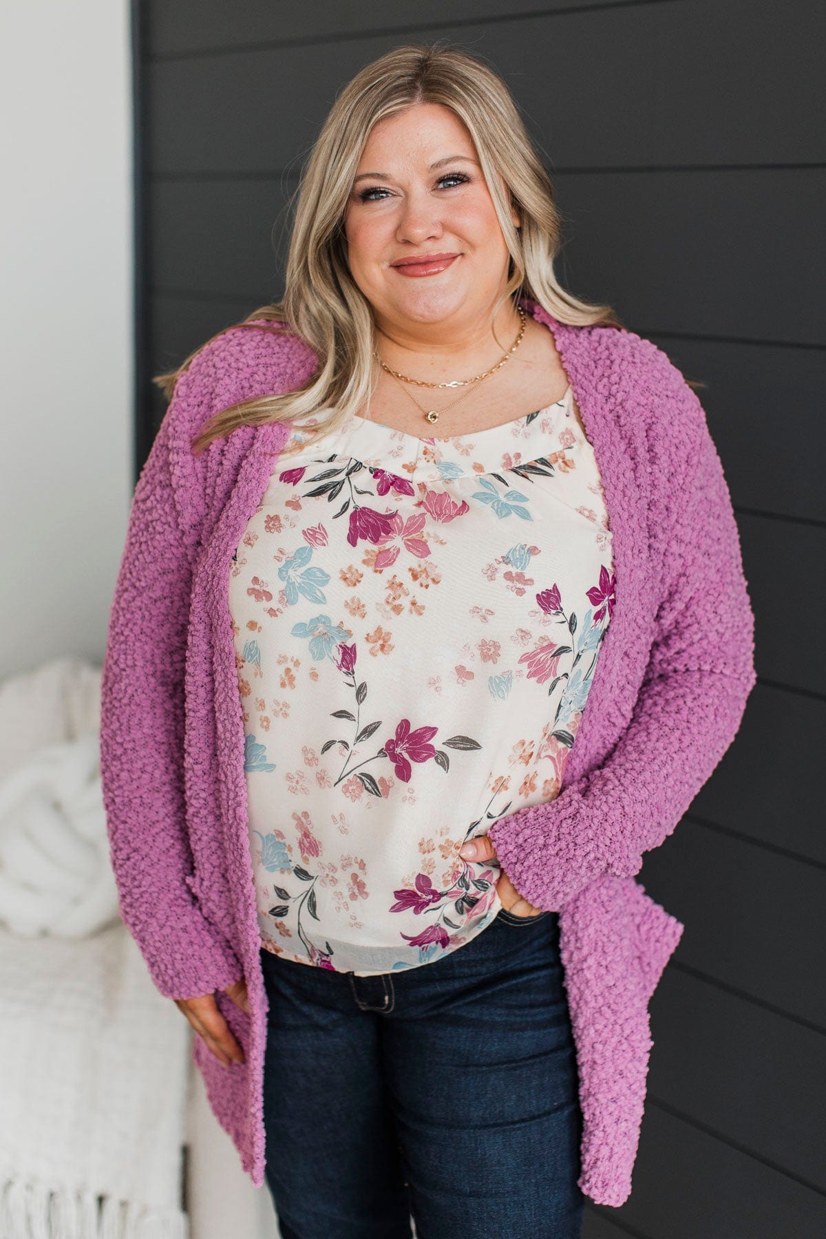 Refreshing Feeling Floral Tank Top- Ivory & Plum
