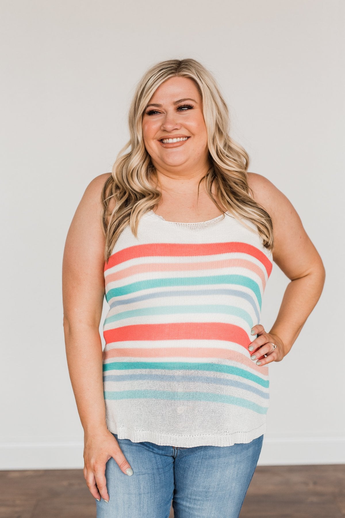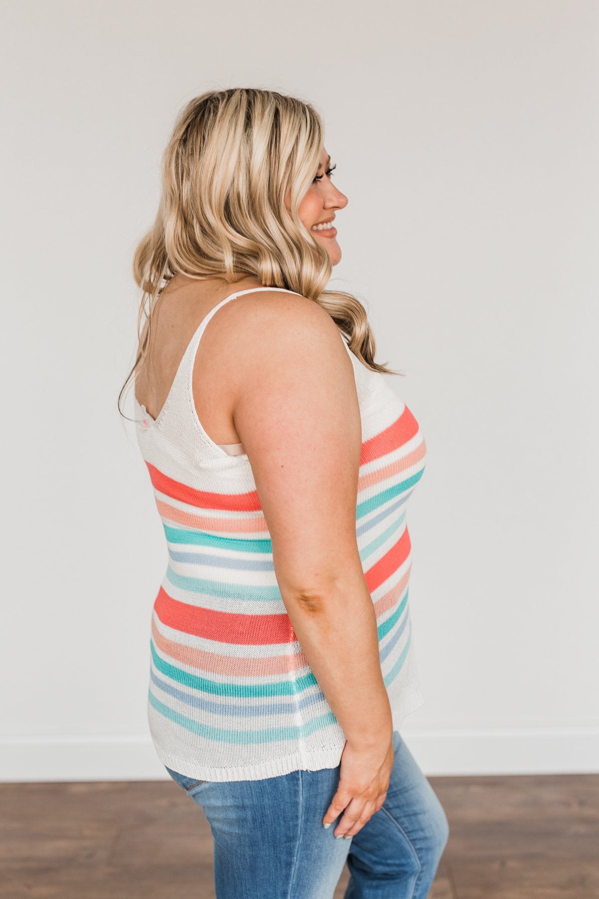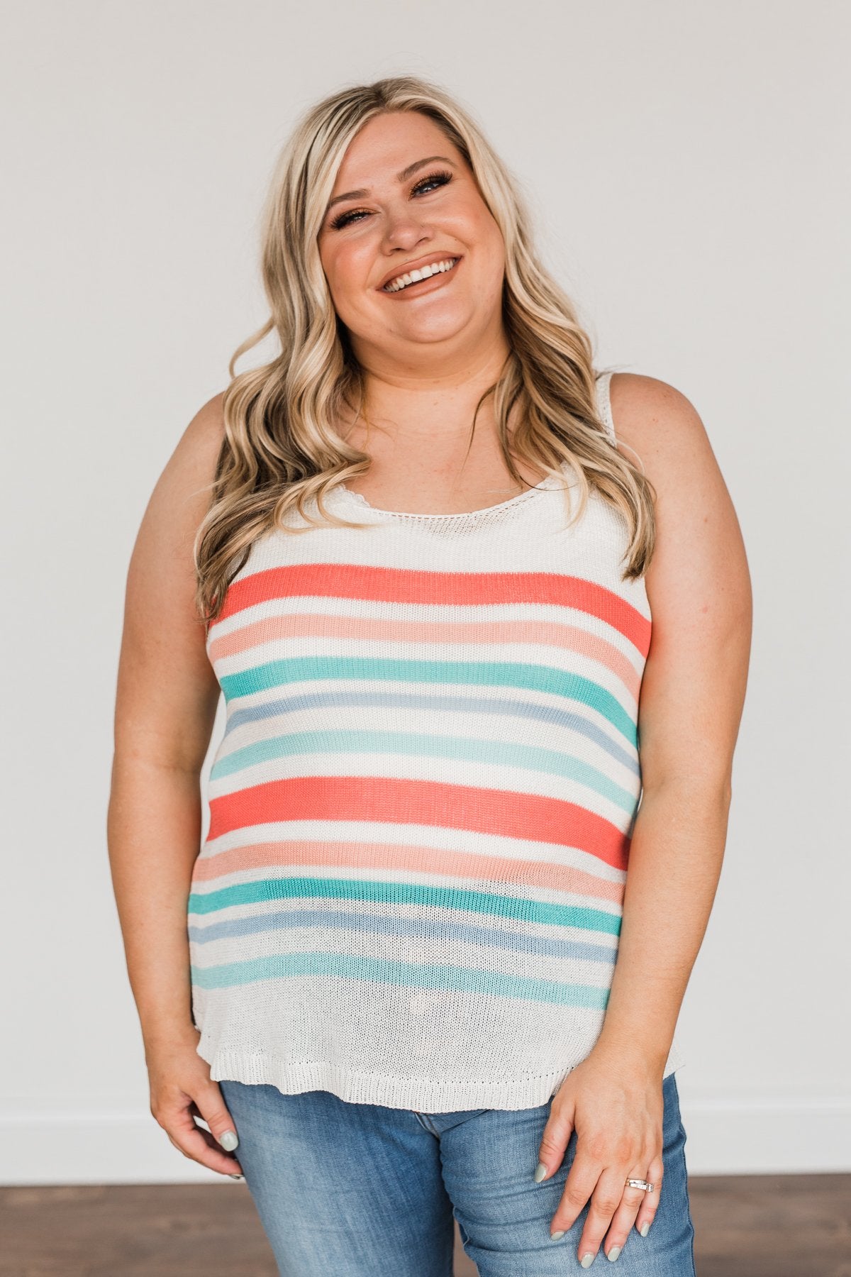 Sensational Sights Knit Tank Top- Ivory & Multi-Color