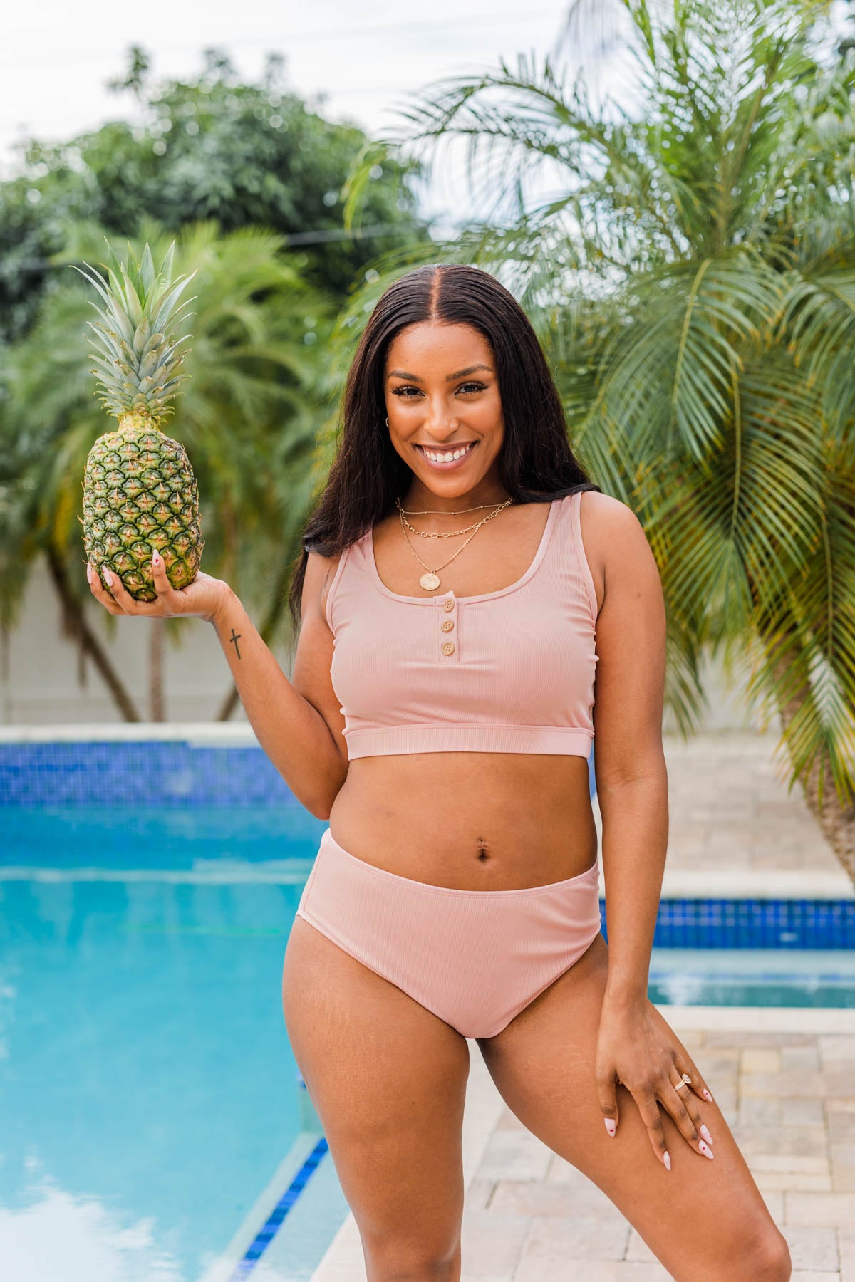 This adorable swimsuit is the perfect choice for lounging around on the beach or by the pool! You’ll be put in the summer state of mind with details like the ribbed knit material and functional button neckline! The possibilities are endless when it comes to mix and matching different swim pieces!