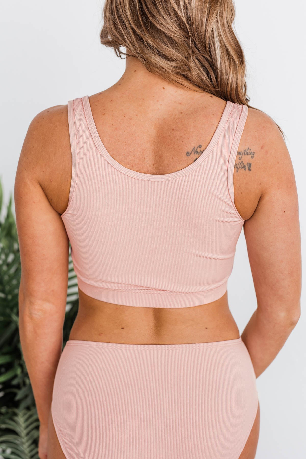 Summertime Shine Ribbed Knit Swim Top- Baby Pink