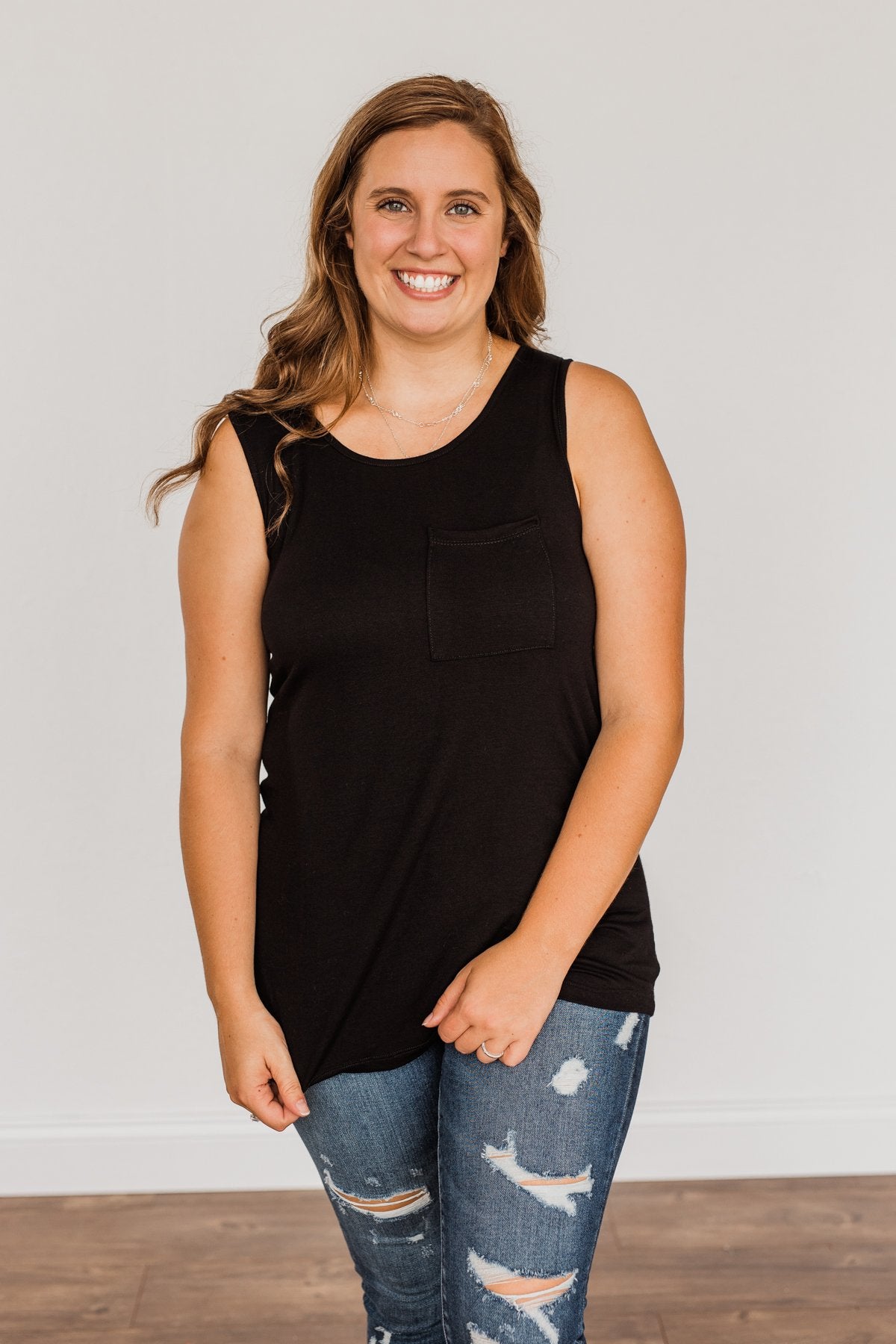 Elevate your everyday wardrobe with this sweet and simple tank top! This piece features delightful details such as the scoop neckline, functional chest pocket, and back cut-out detail that adds a little extra flair to your wear! Pair this with your favorite cardigan and jeans for a lovely little look or wear it on its own for year-round styles!