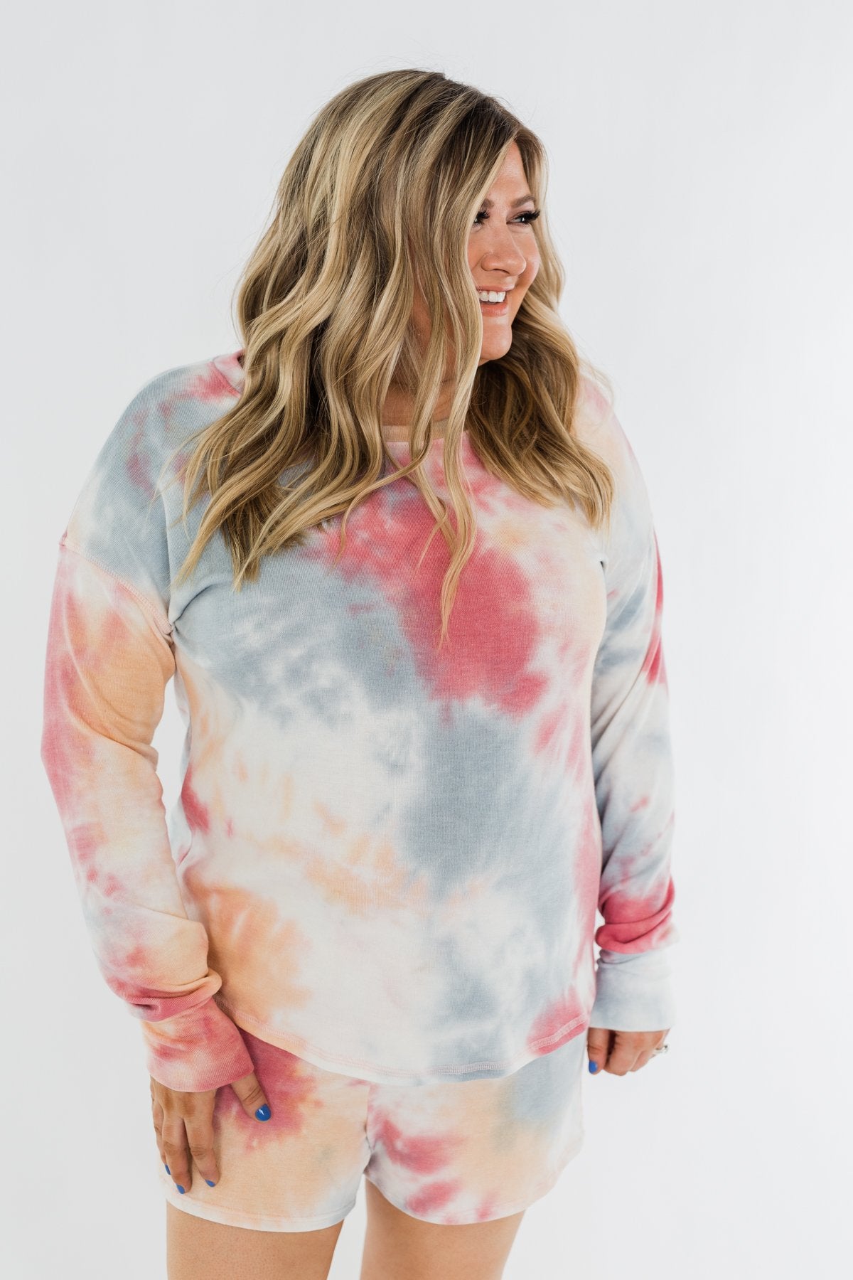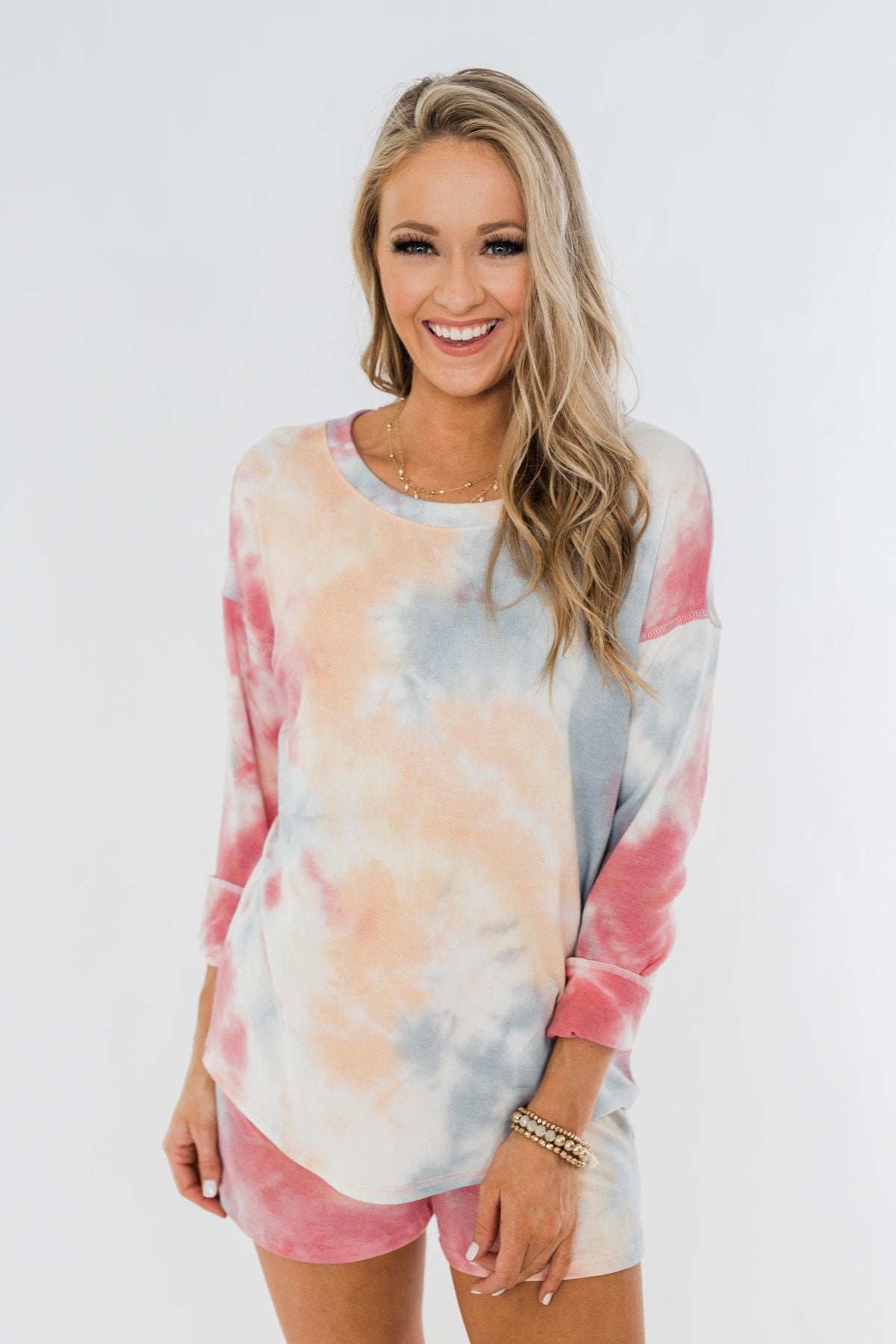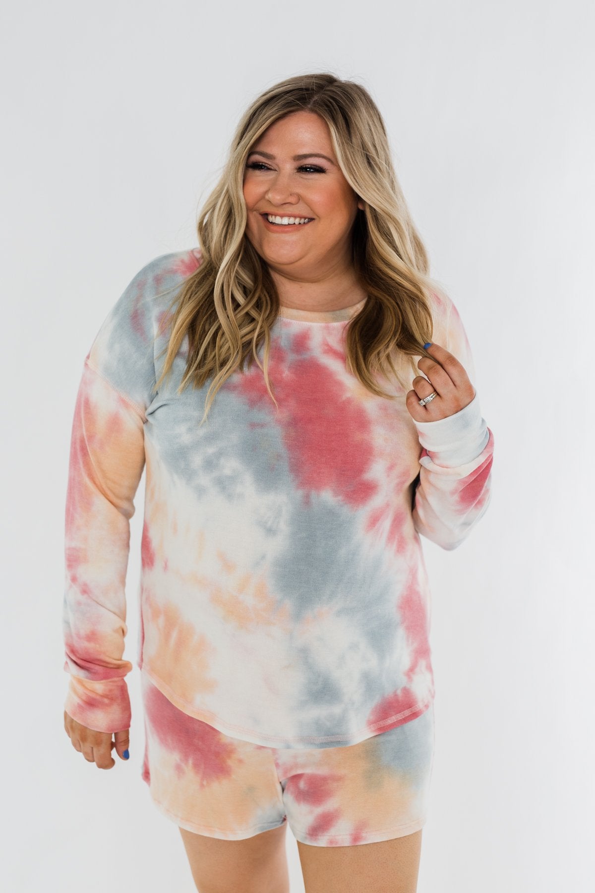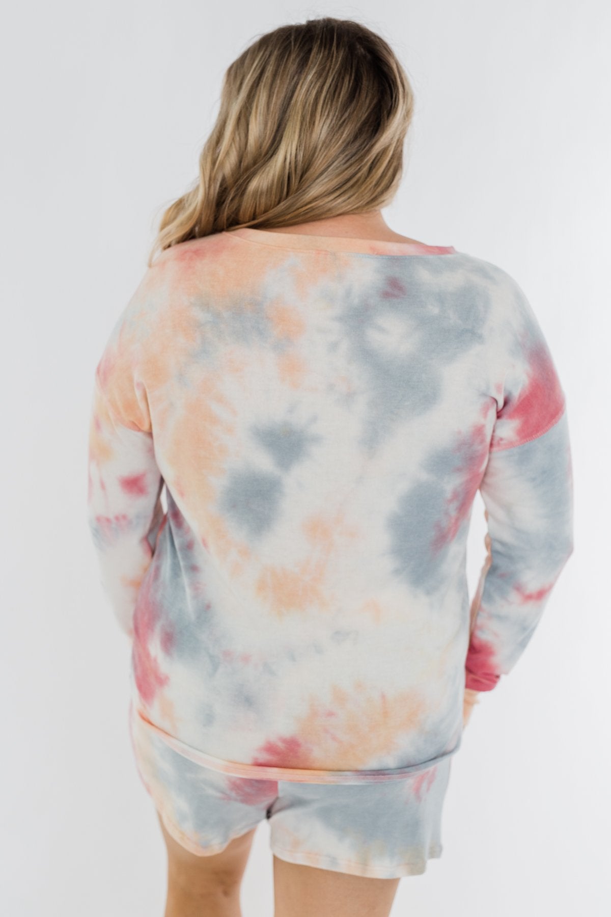 Tie Dye Lounge Pullover Top- Cherry, Light Orange, & Blue