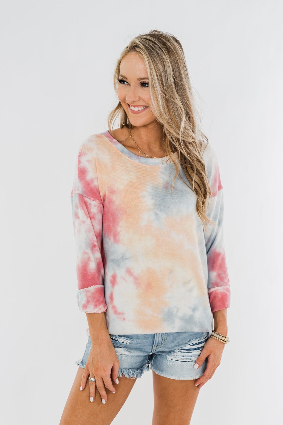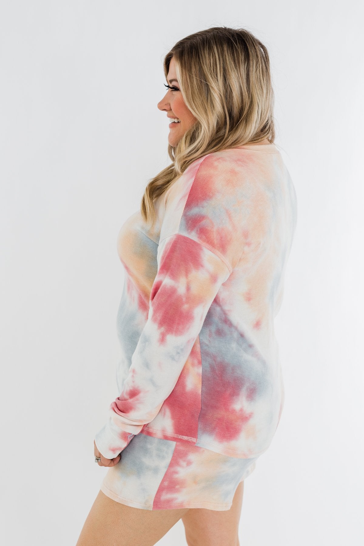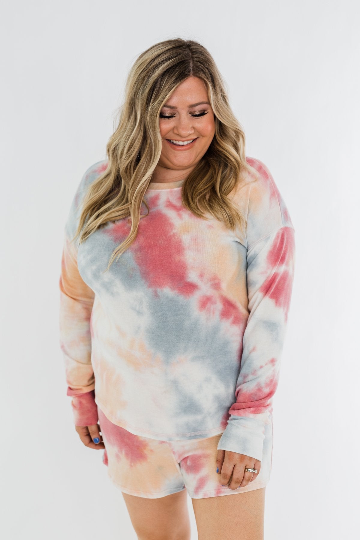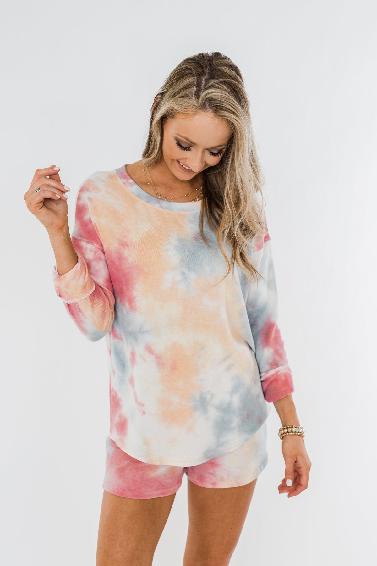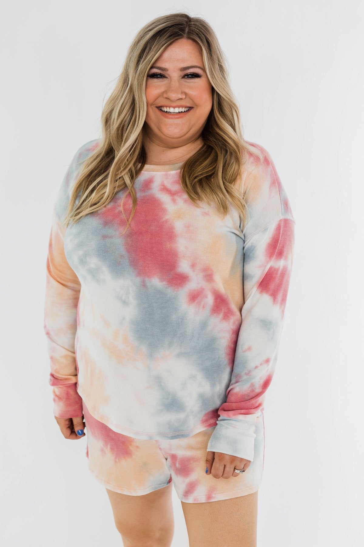 Tie Dye Lounge Pullover Top- Cherry, Light Orange, & Blue