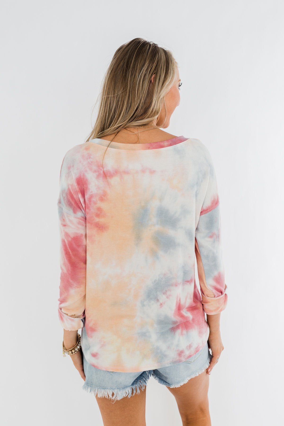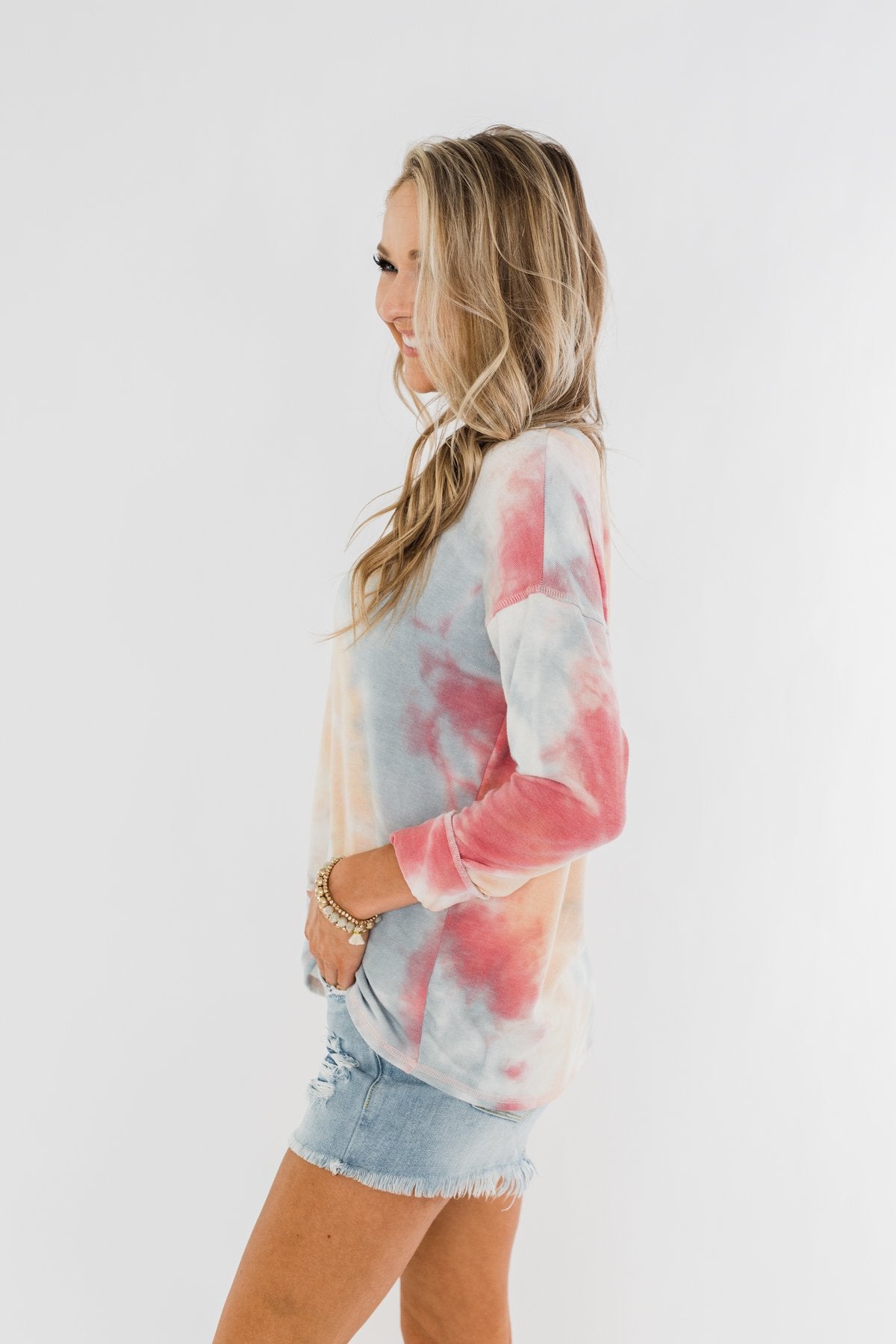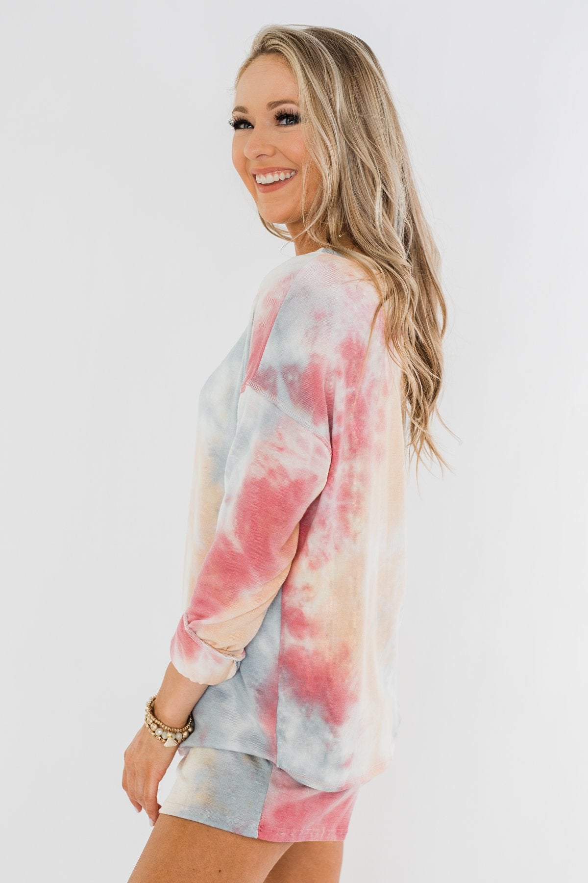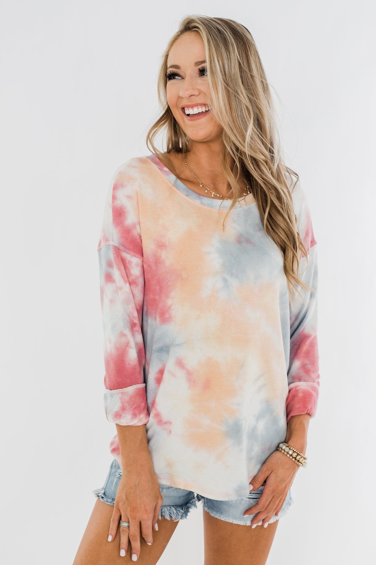 Tie Dye Lounge Pullover Top- Cherry, Light Orange, & Blue