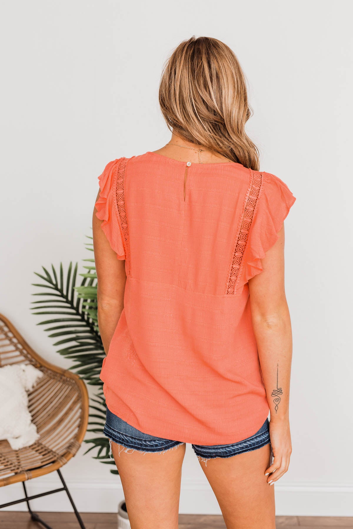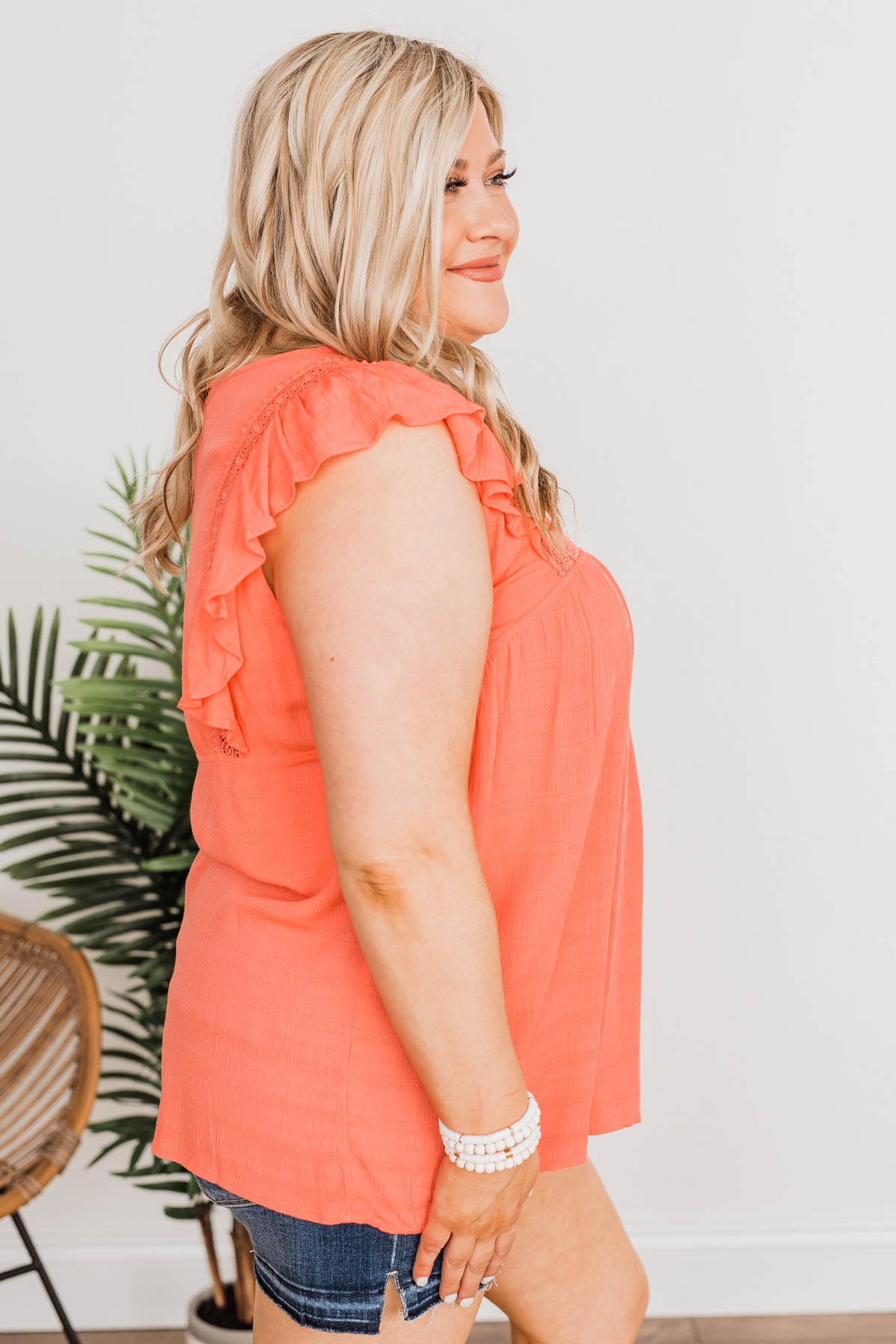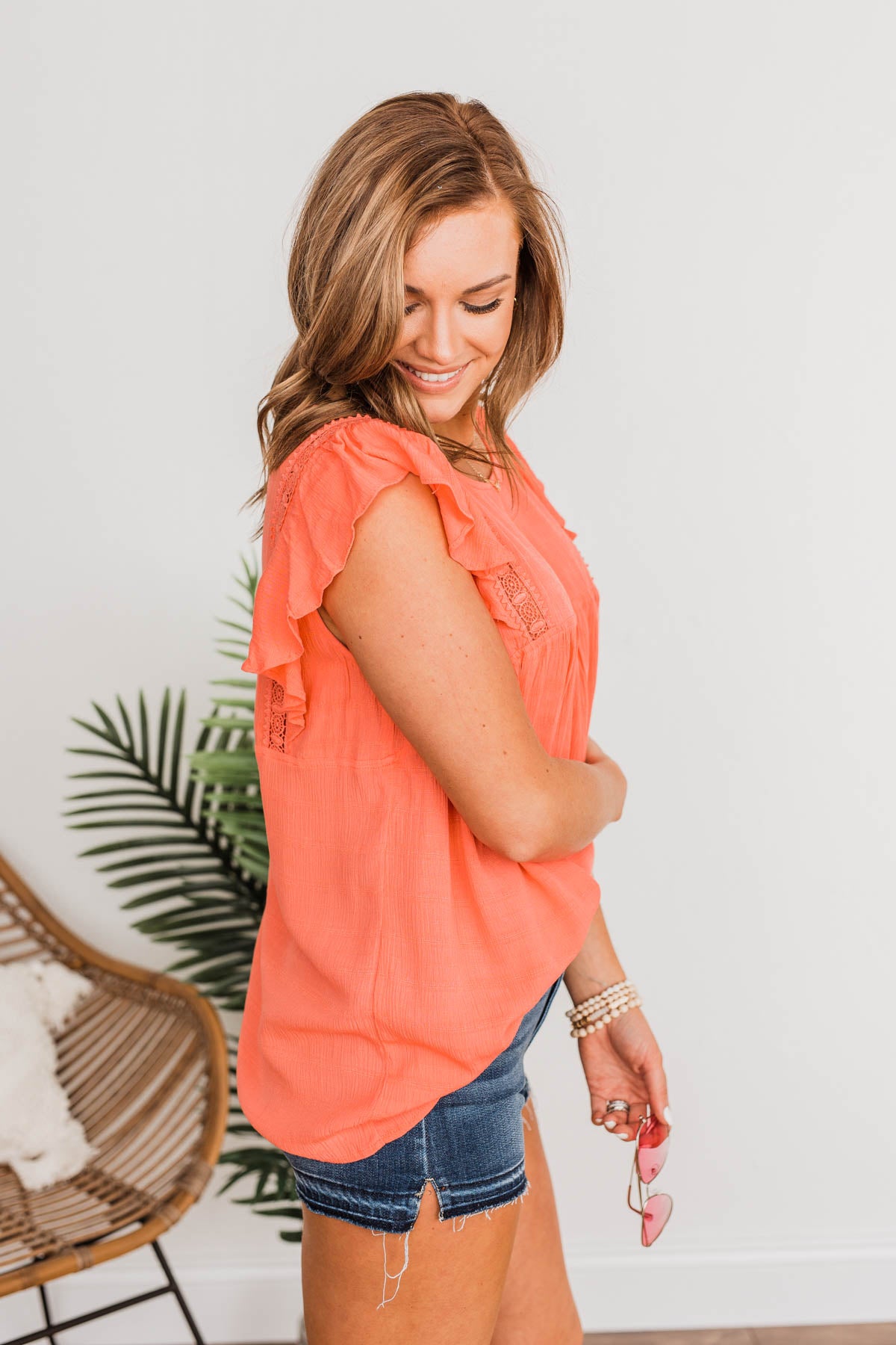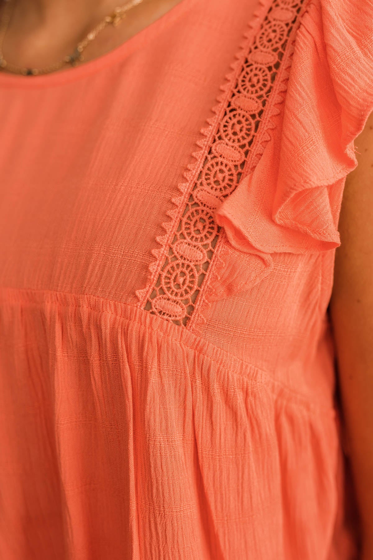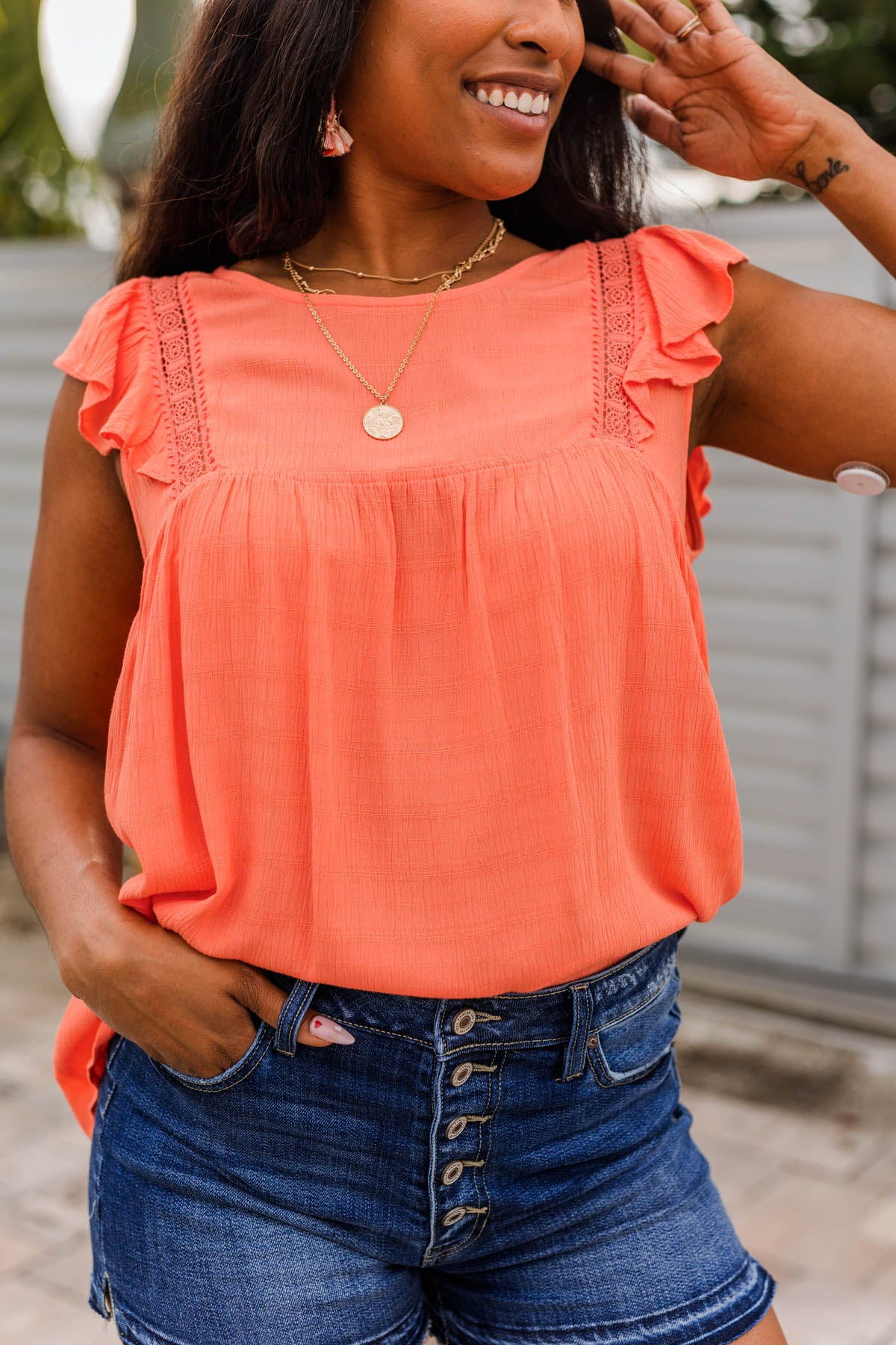 Escape the ordinary, everyday outfits with this colorful sleeveless blouse! You’ll feel cute from head to toe with features like the crochet details, ruffle trim along the sleeve seams, and relaxed body style that looks great paired with any denim you desire!