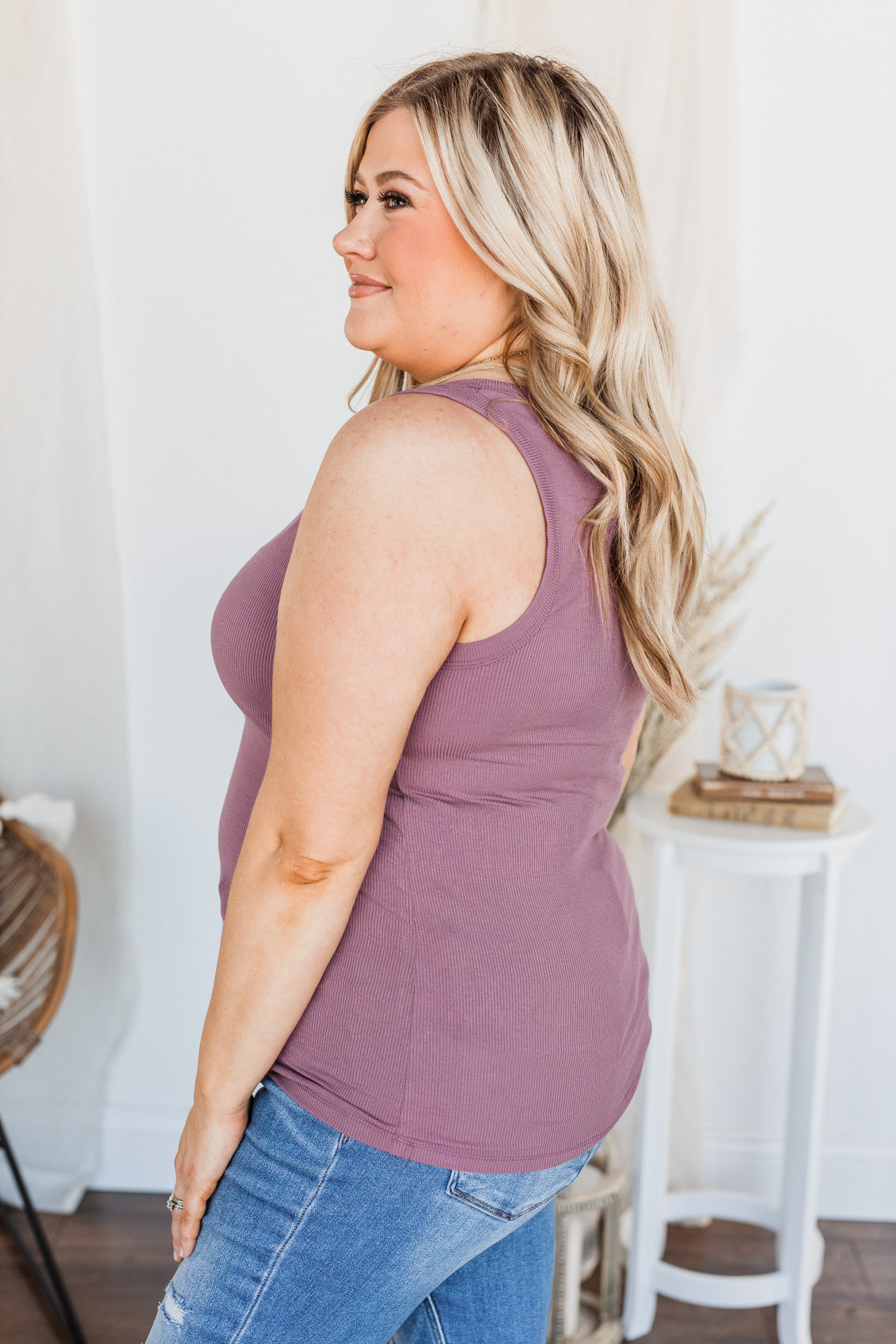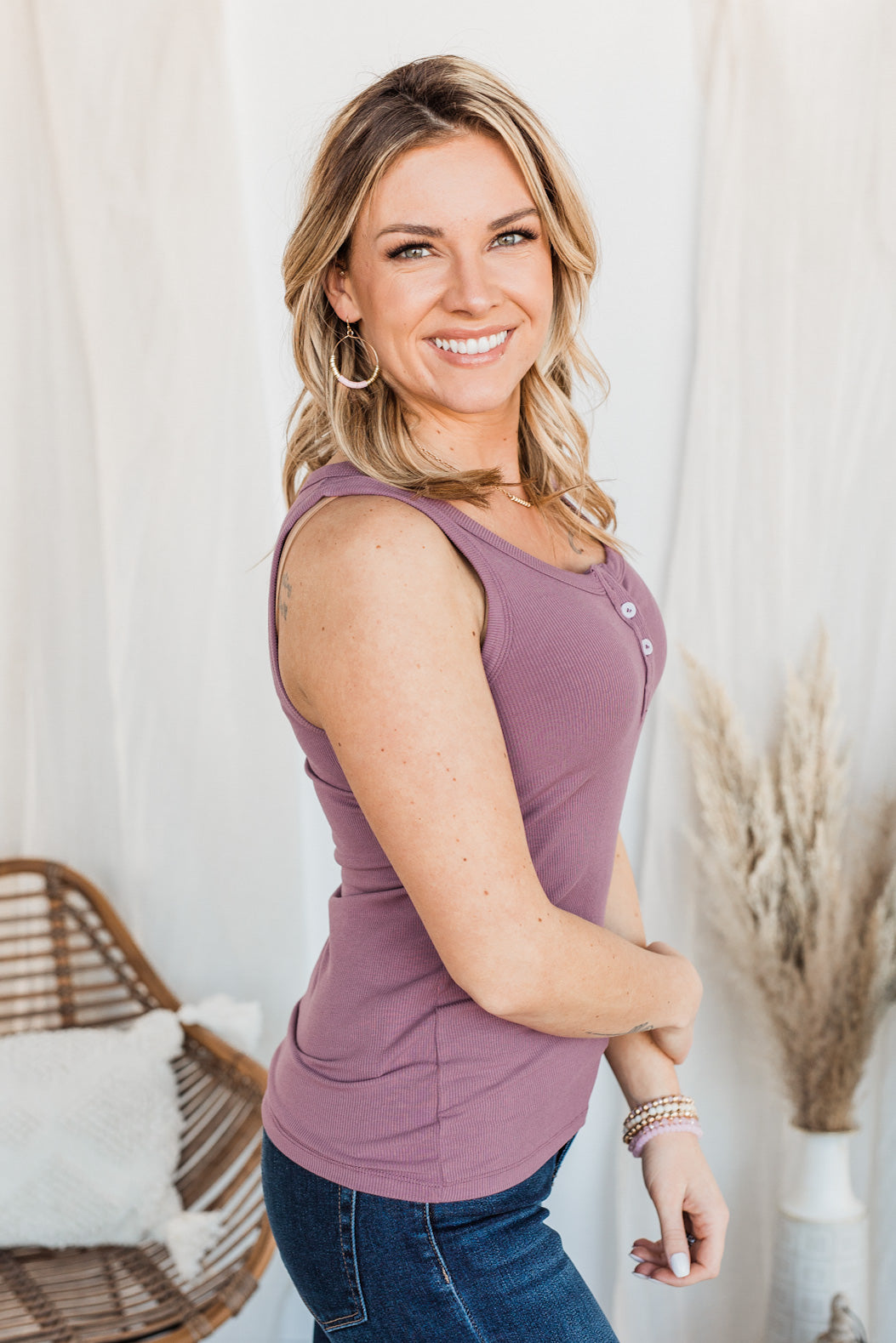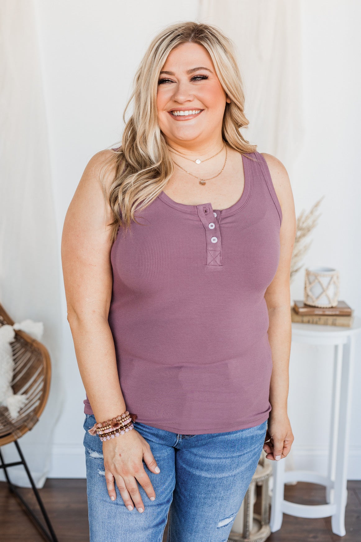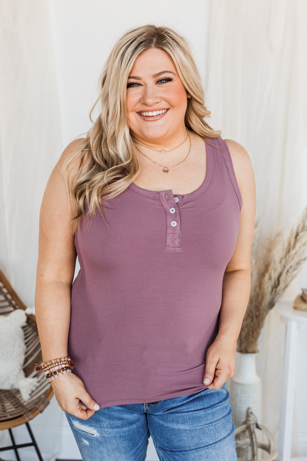 Uplifting Spirits Button Henley Tank Top- Grape