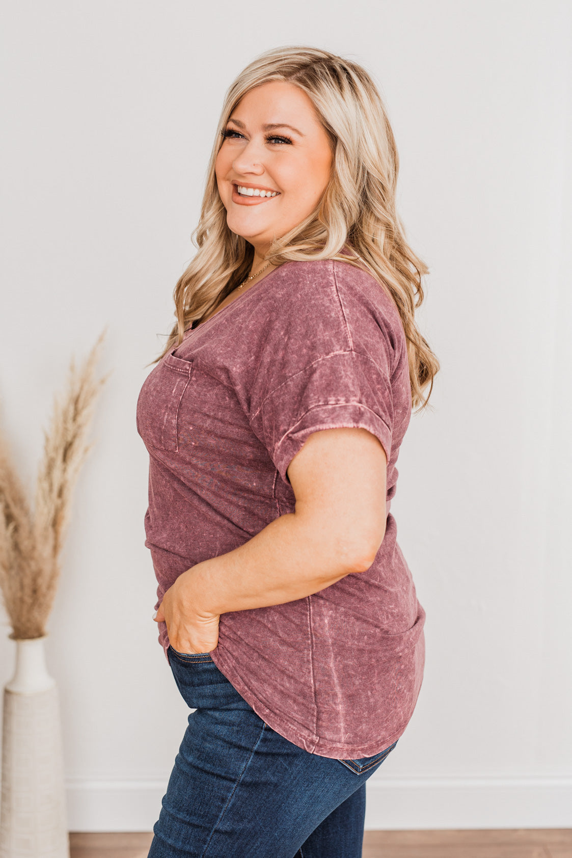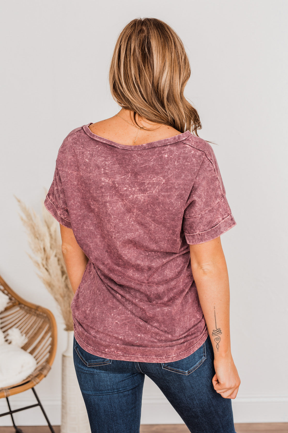 Get ready to rock your day with this gorgeous short sleeve top! You’ll find everything you’re looking for in a top with features like the vintage wash, v-neckline, and cuffed short sleeves! Wear this under a denim jacket for an outfit that will impress everyone around!