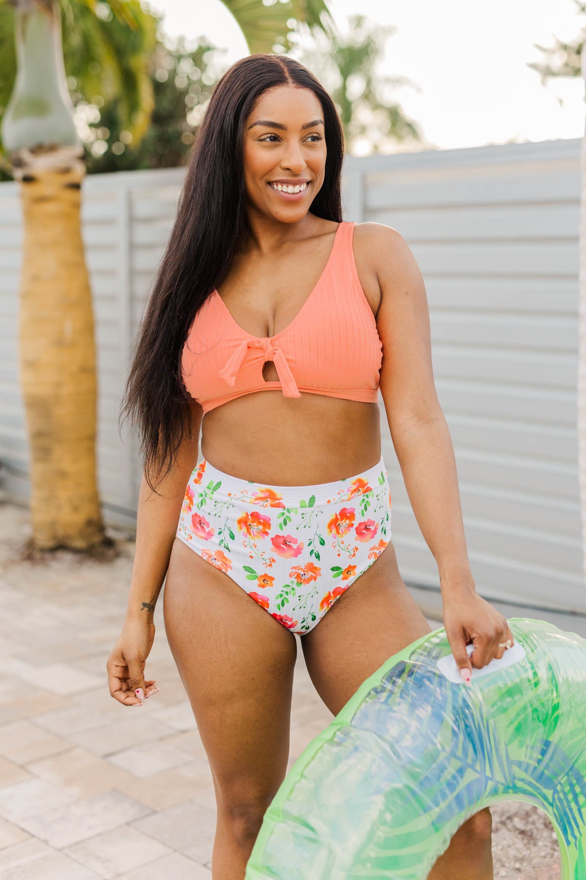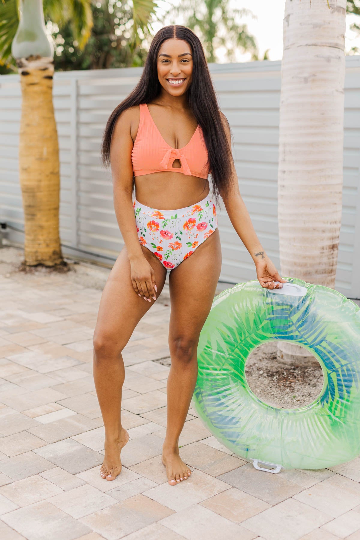 Achieve the perfect pool look every time with this captivating swim top! You’ll always be in the Summer state of mind with features like the keyhole detail with a removable tie and the adjustable bottom band that helps you get the perfect fit every time! Grab the matching swim bottoms and catch some rays in a cute way!