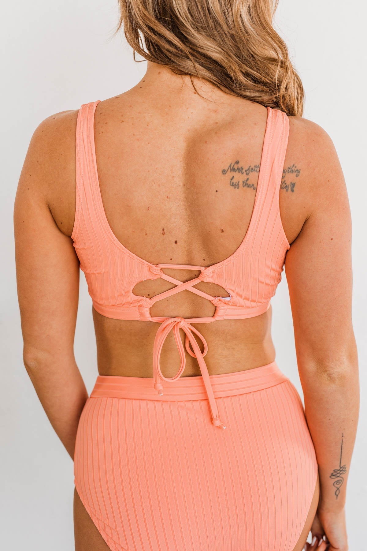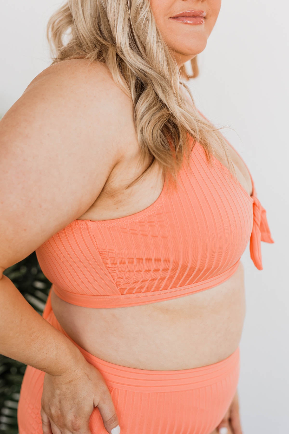 Walk Along The Beach Ribbed Swim Top- Sherbert