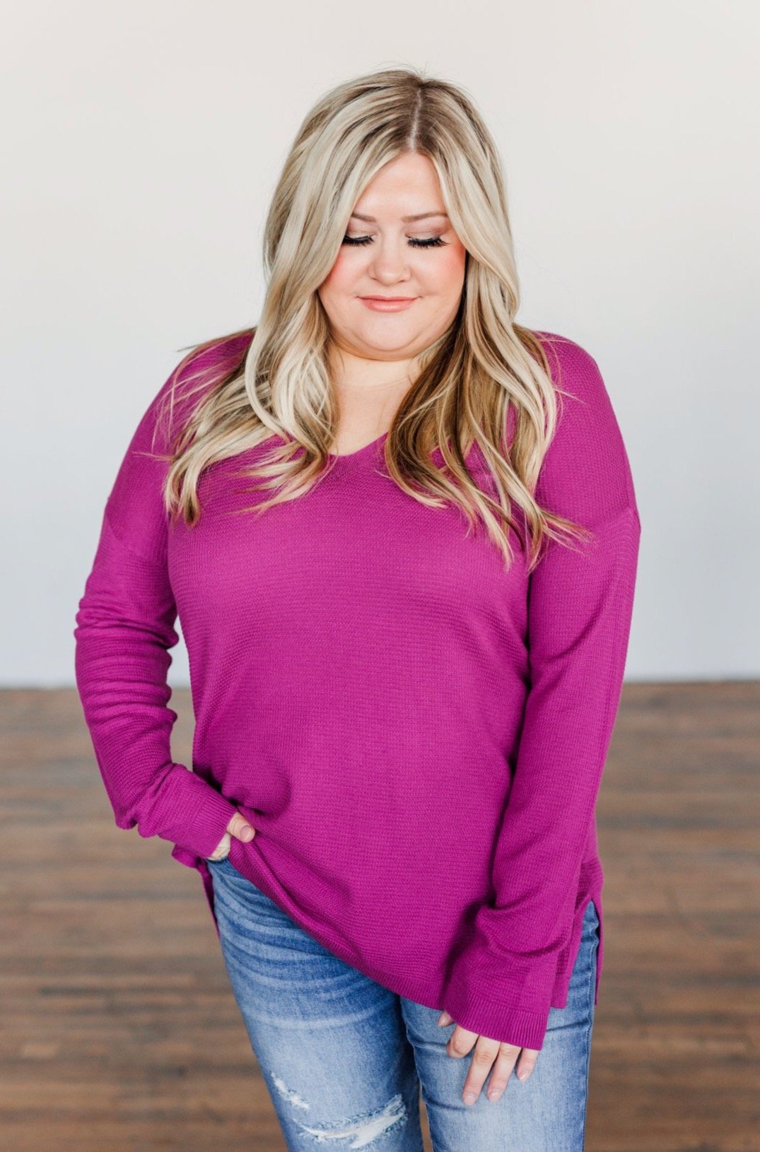 Life In Full Bloom V-Neck Knit Top- Magenta