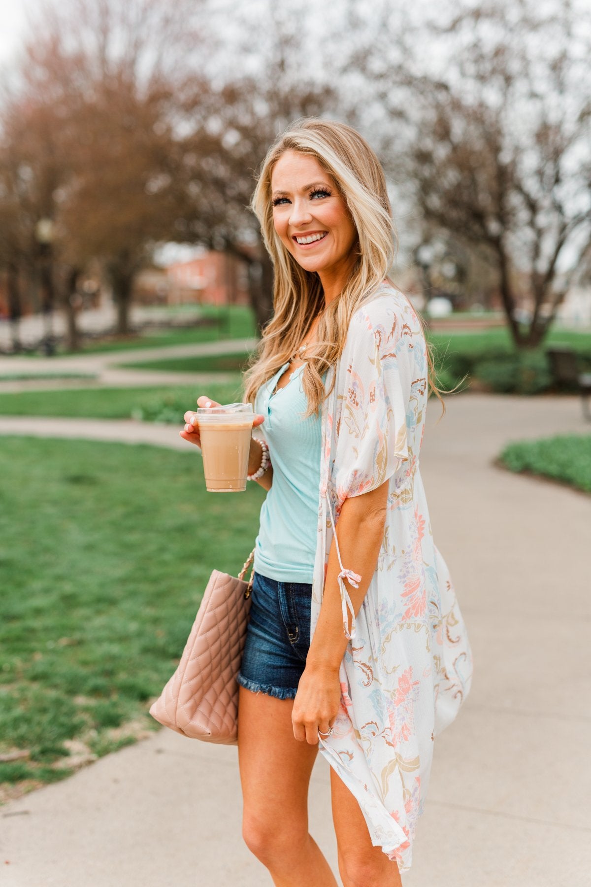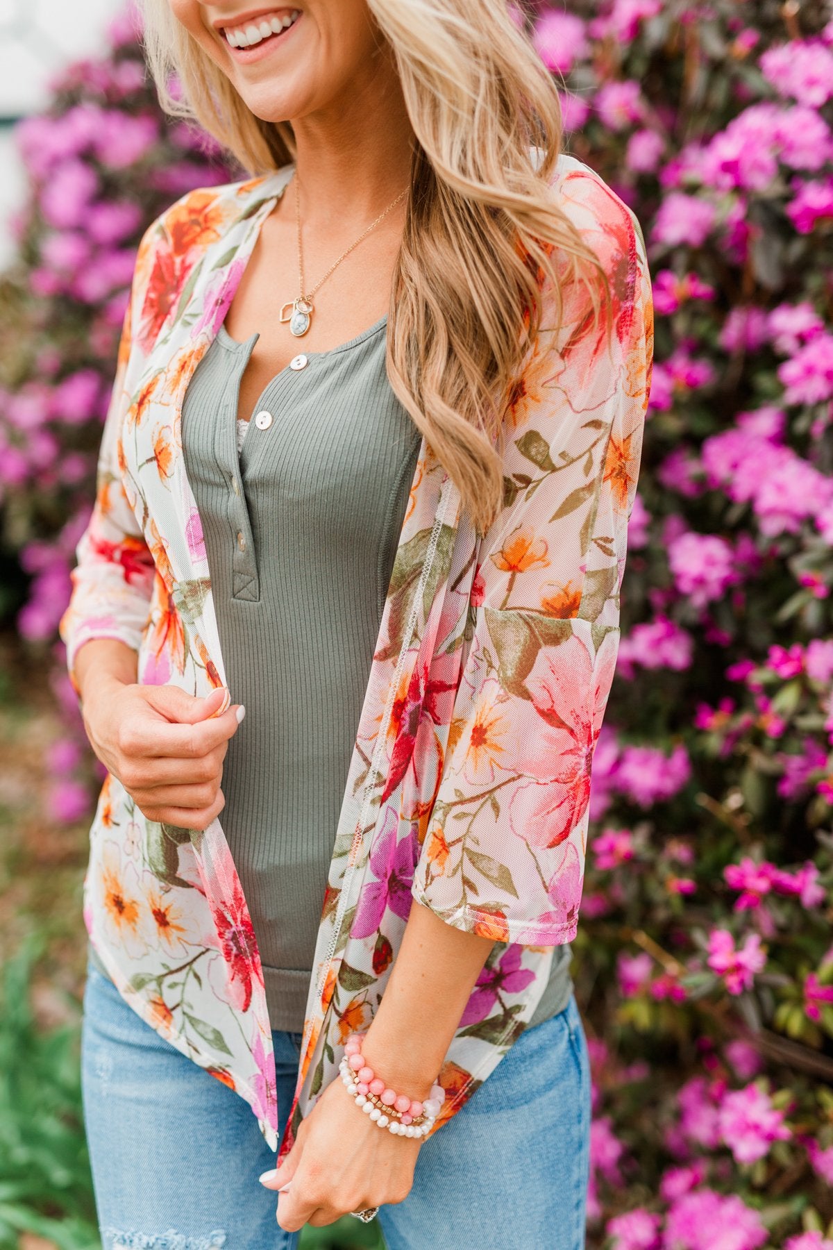 Fragrant Flowers Lightweight Kimono- Pink, Orange & Ivory