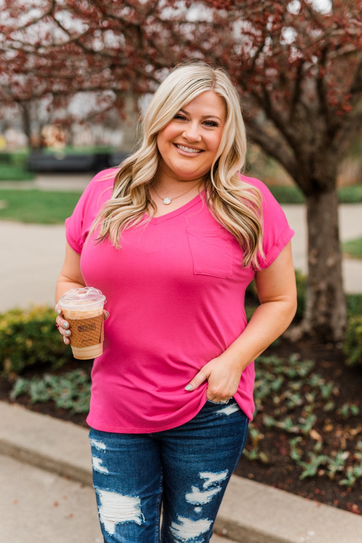 Life In Full Bloom V-Neck Knit Top- Bubblegum Pink
