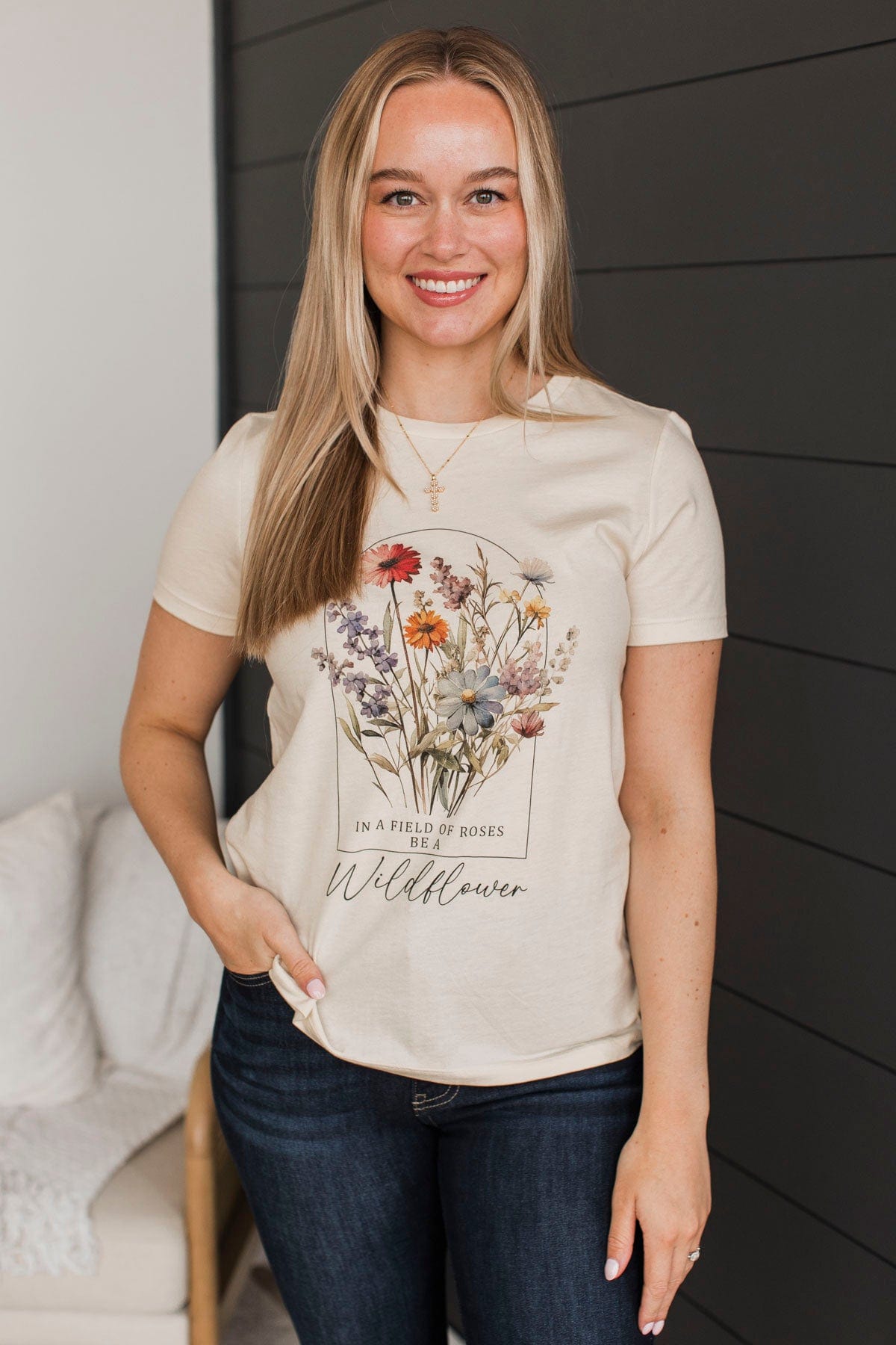 "In A Field Of Roses, Be A Wildflower" Graphic Tee- Natural