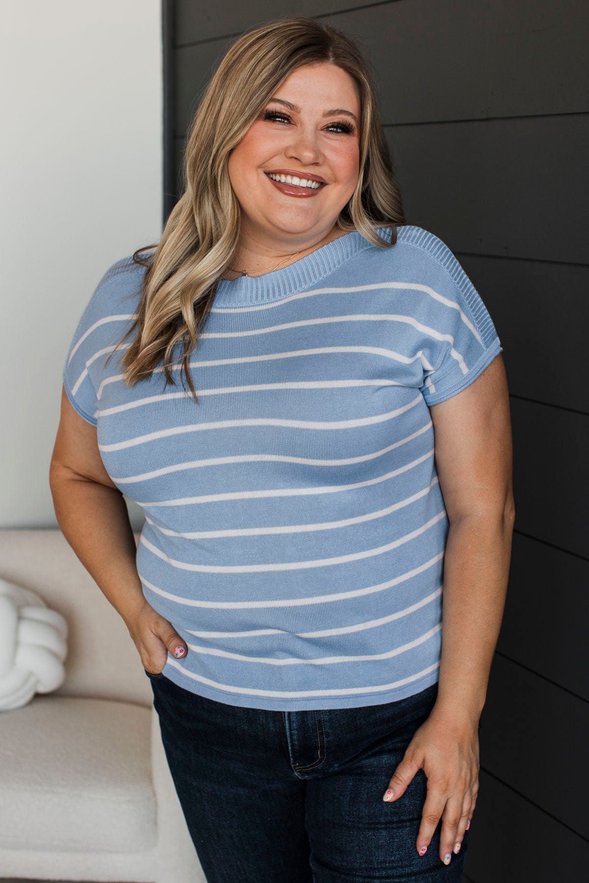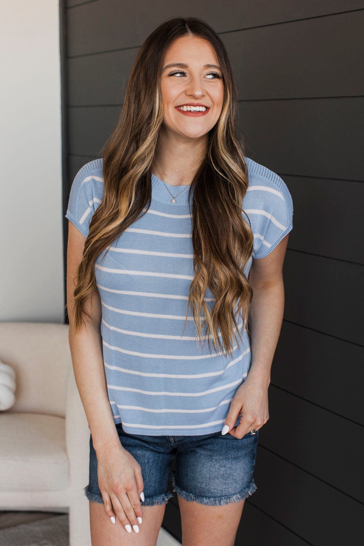 Rewrite The Ending Striped Top- Blue